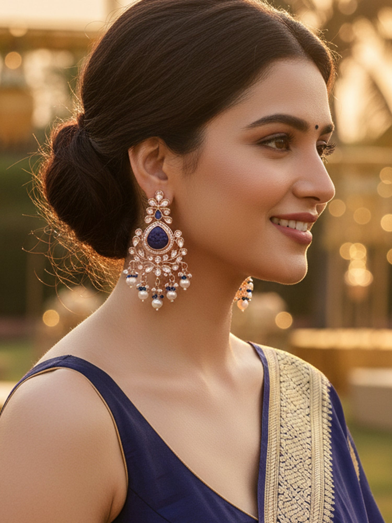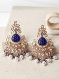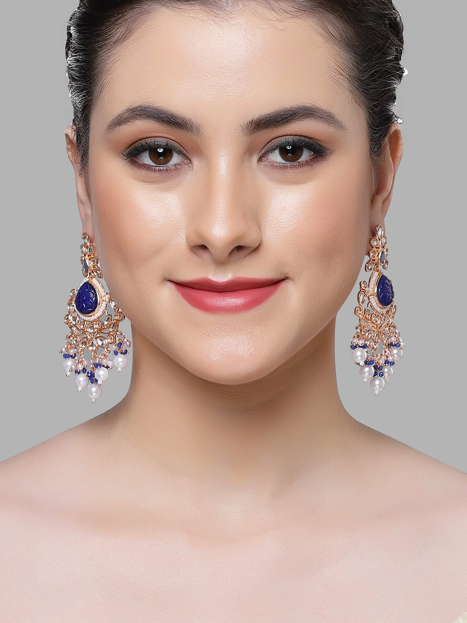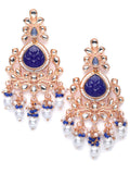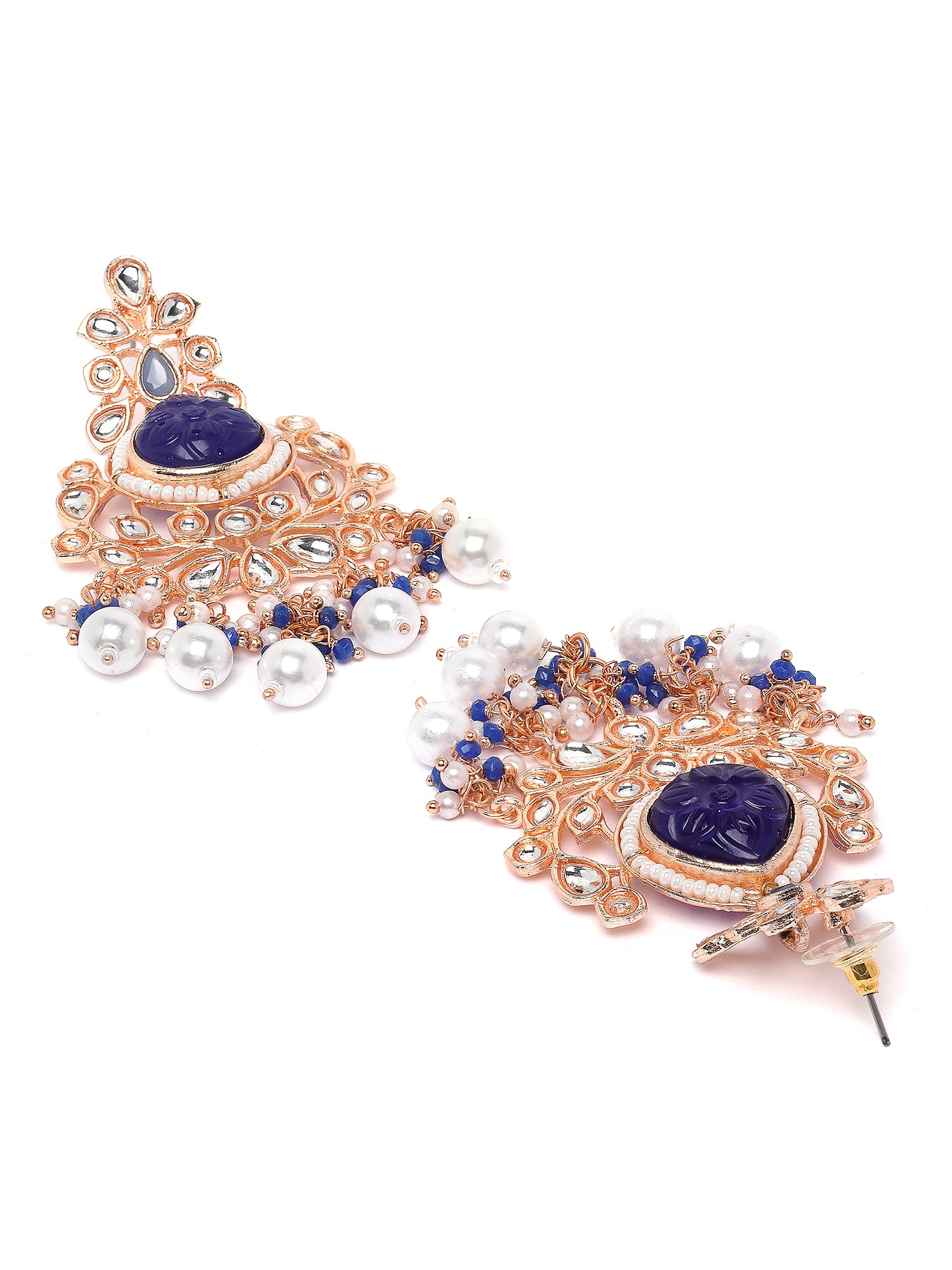 Karatcart Rose Gold Plated Blue Carved Stone Kundan Drop Earrings for Women