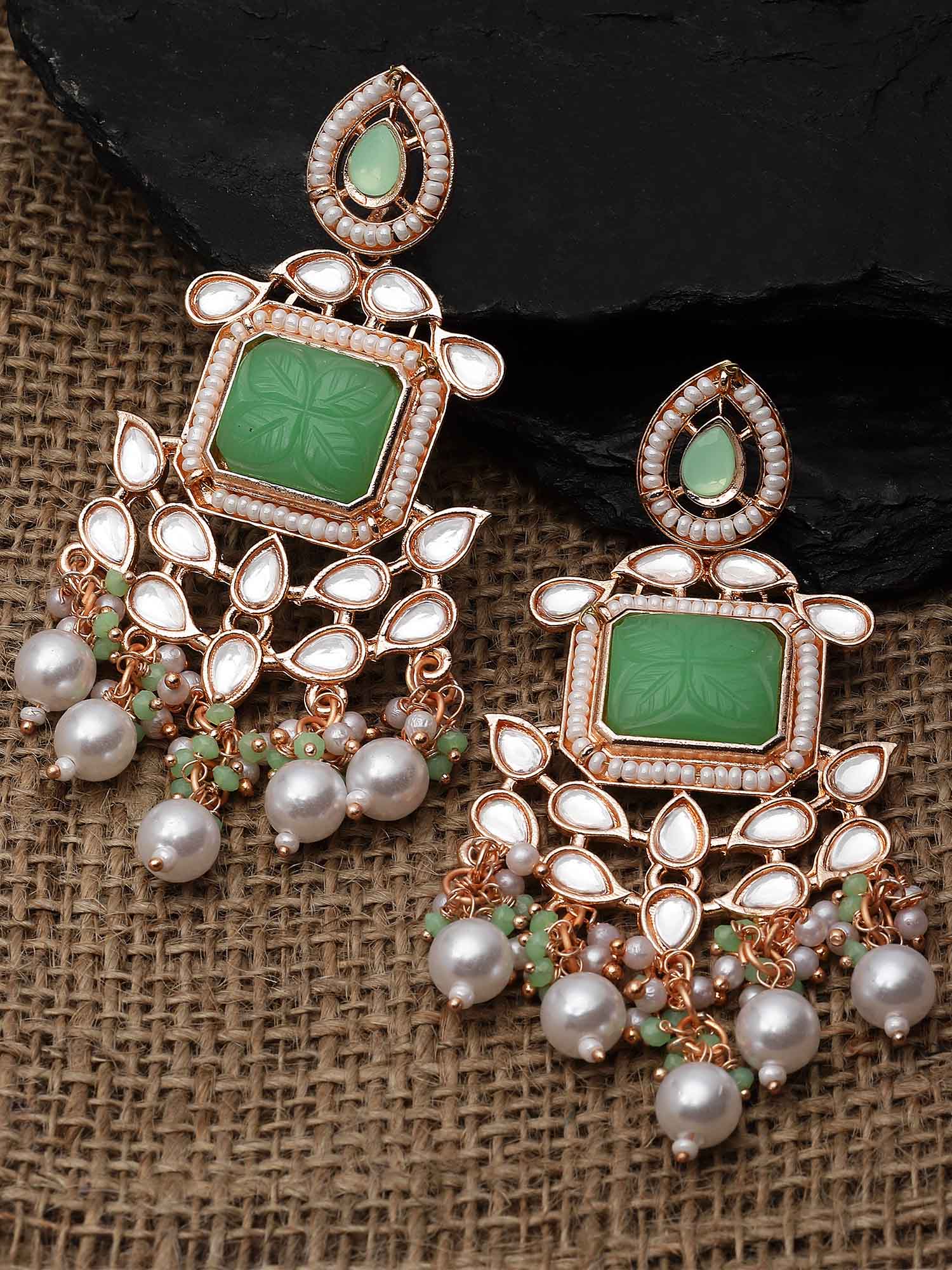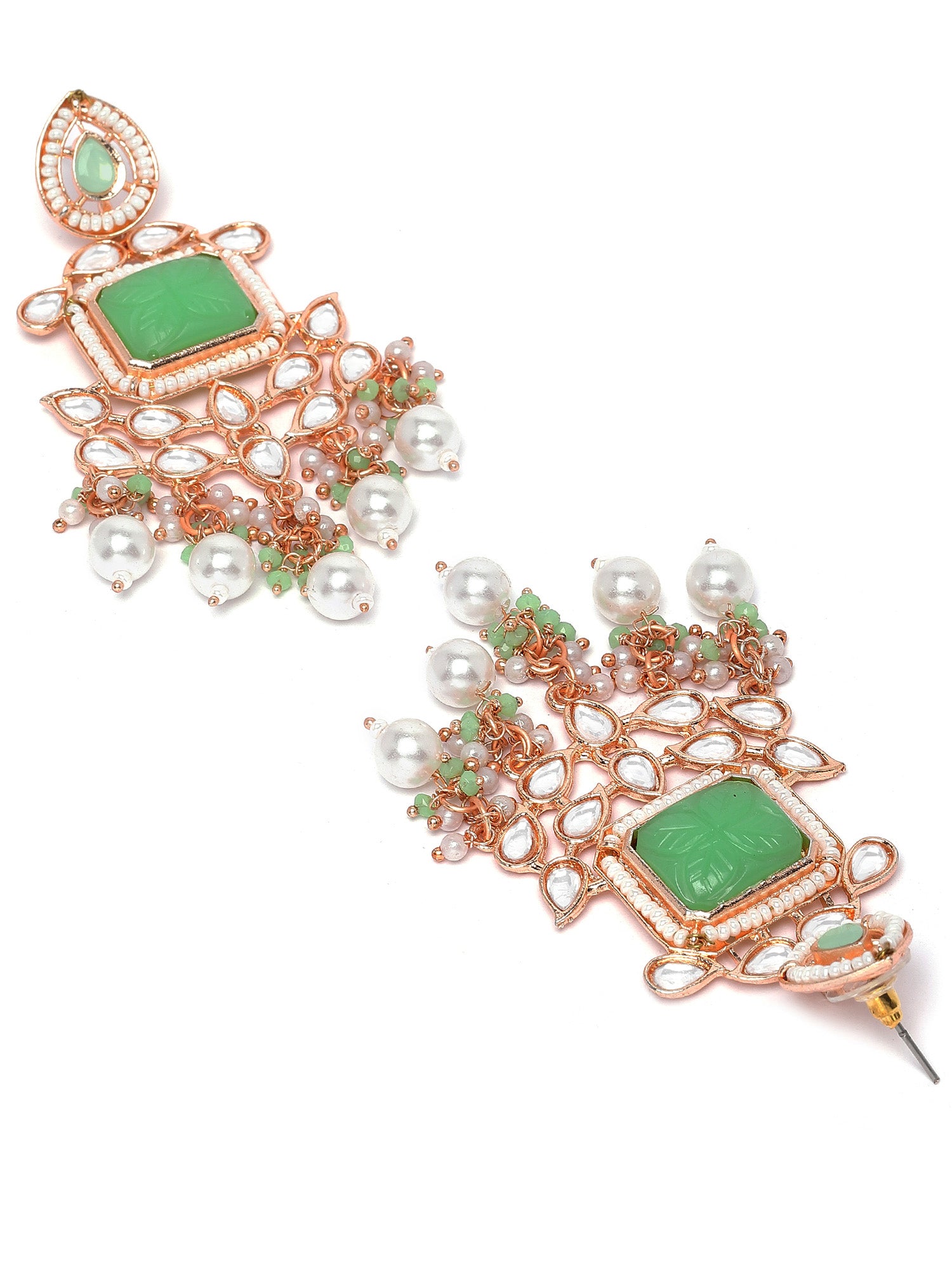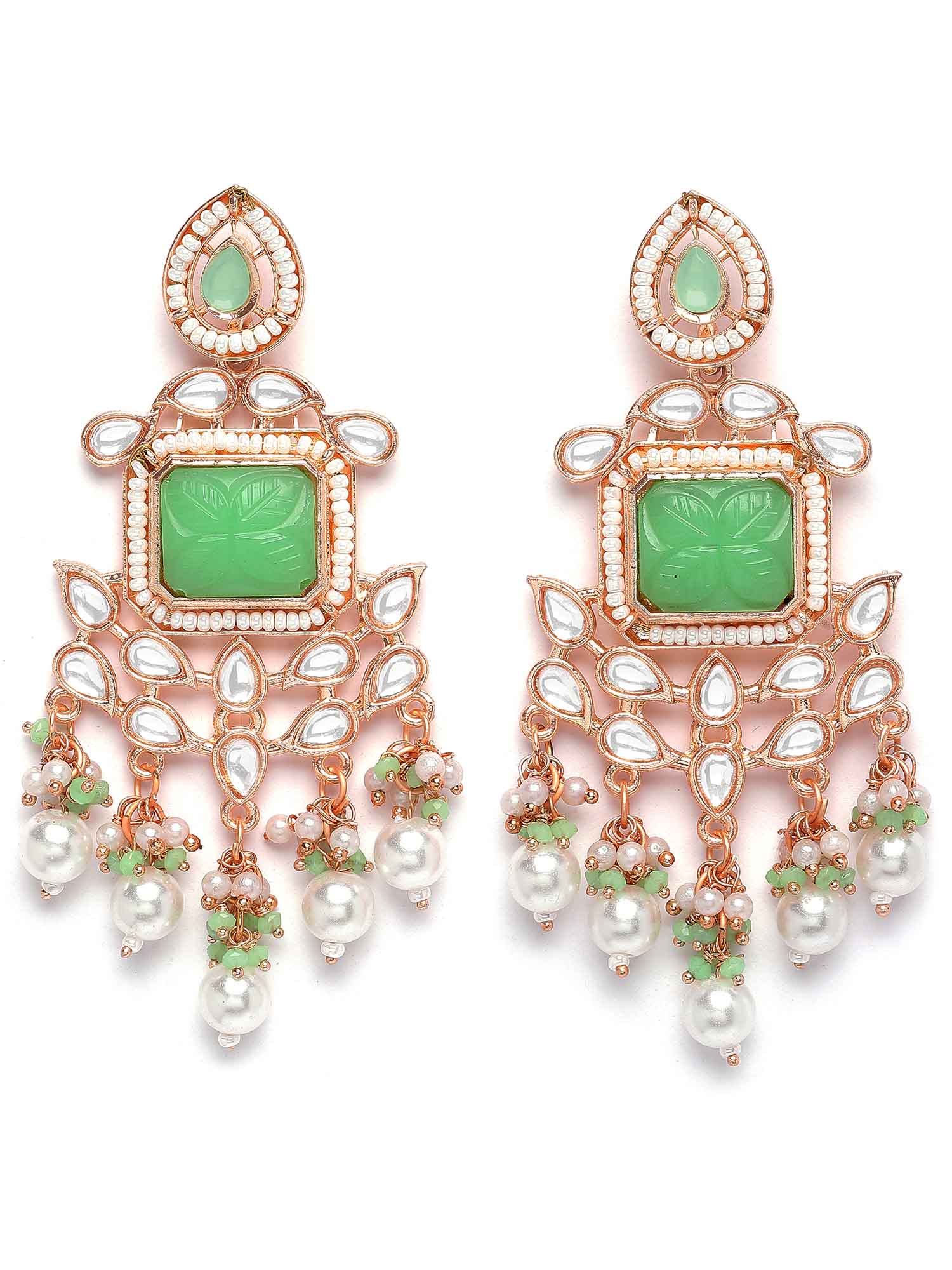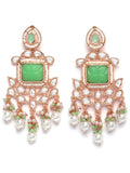 Karatcart Rose Gold Plated Lime Green Carved Stone Kundan Drop Earrings for Women