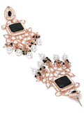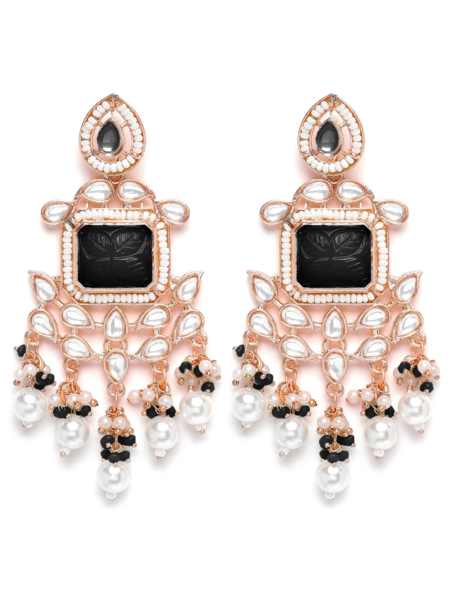 Karatcart Rose Gold Plated Black Carved Stone Kundan Drop Earrings for Women