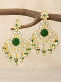 Karatcart Gold Plated Green Carved Stone Kundan Dangler Earrings for Women