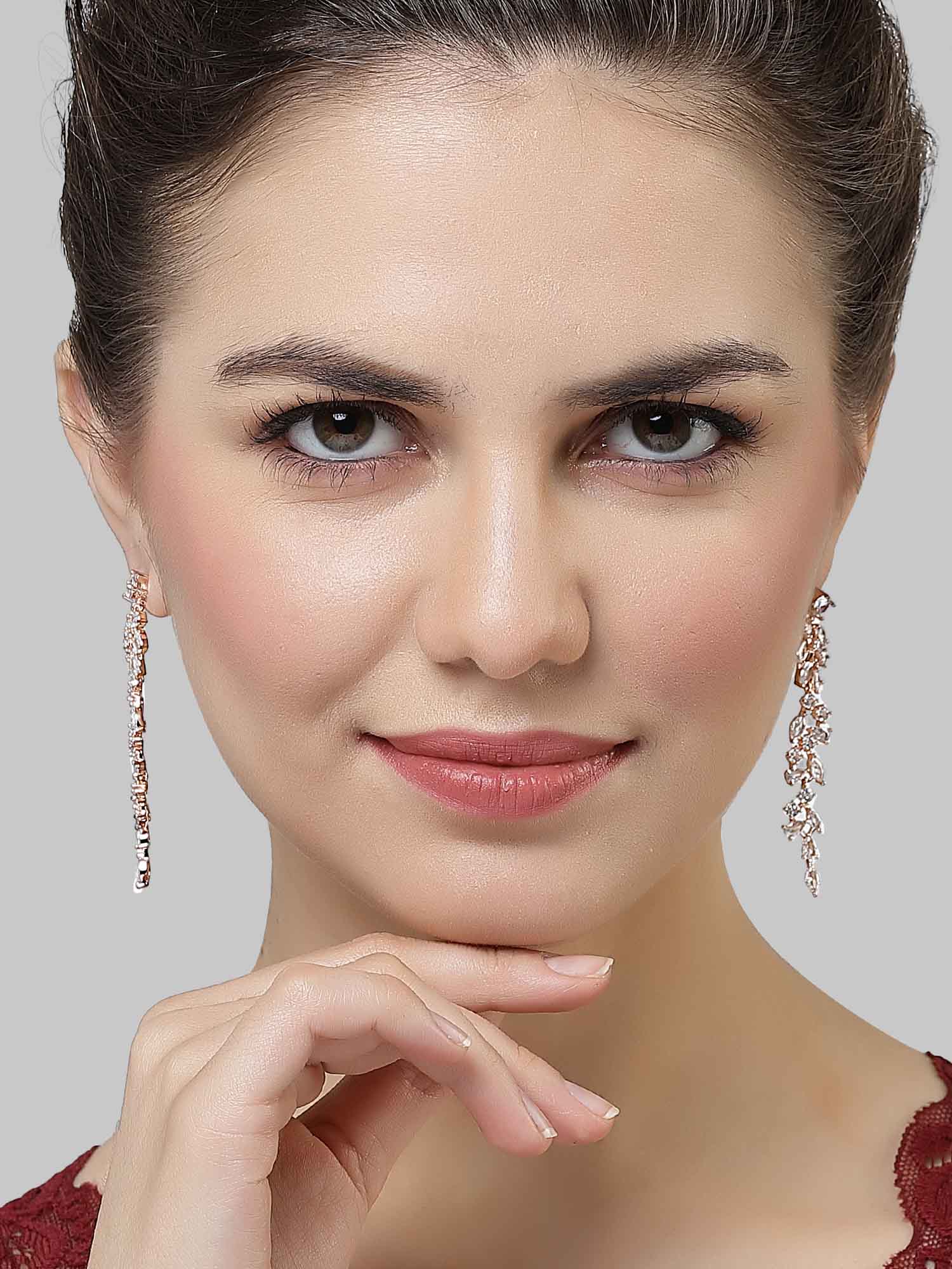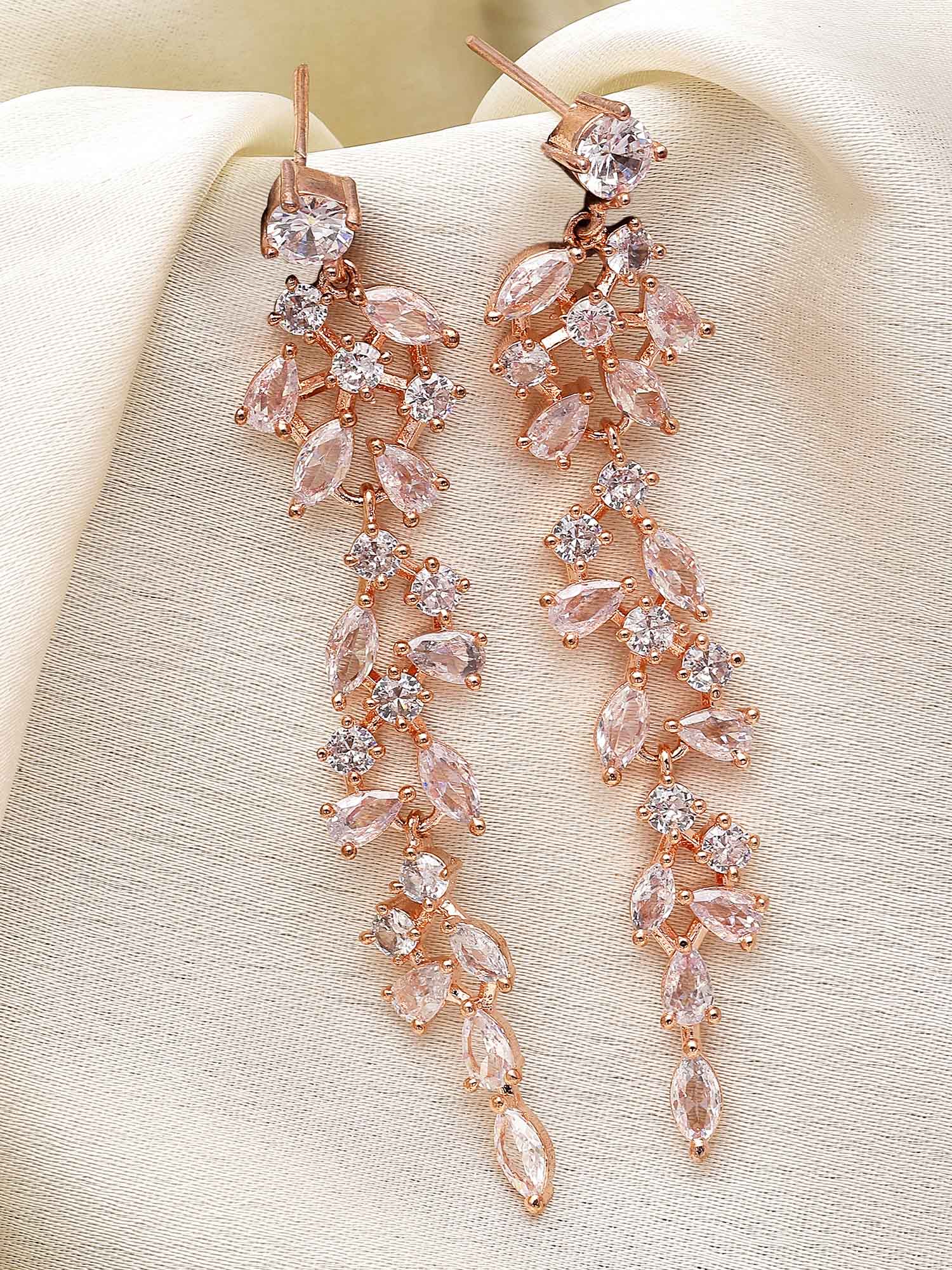 - This is a Rose Gold Earrings by Brand Karatcart which has American Diamond stones.This is Rose Gold Plated. We at KARATCART understand your desire to look the best on any day & we thrive in making any day an occasion. Every individual at Karatcart carries a passion for jewellery and it reflects in our beautiful designs as well as in our breathtaking craftsmanship. We create unique jewellery so you can make heads turn..