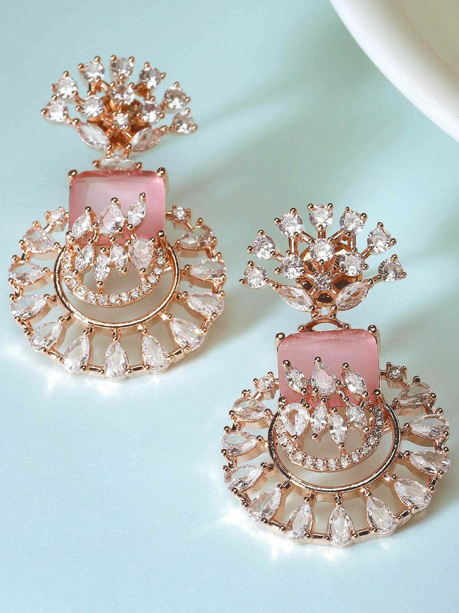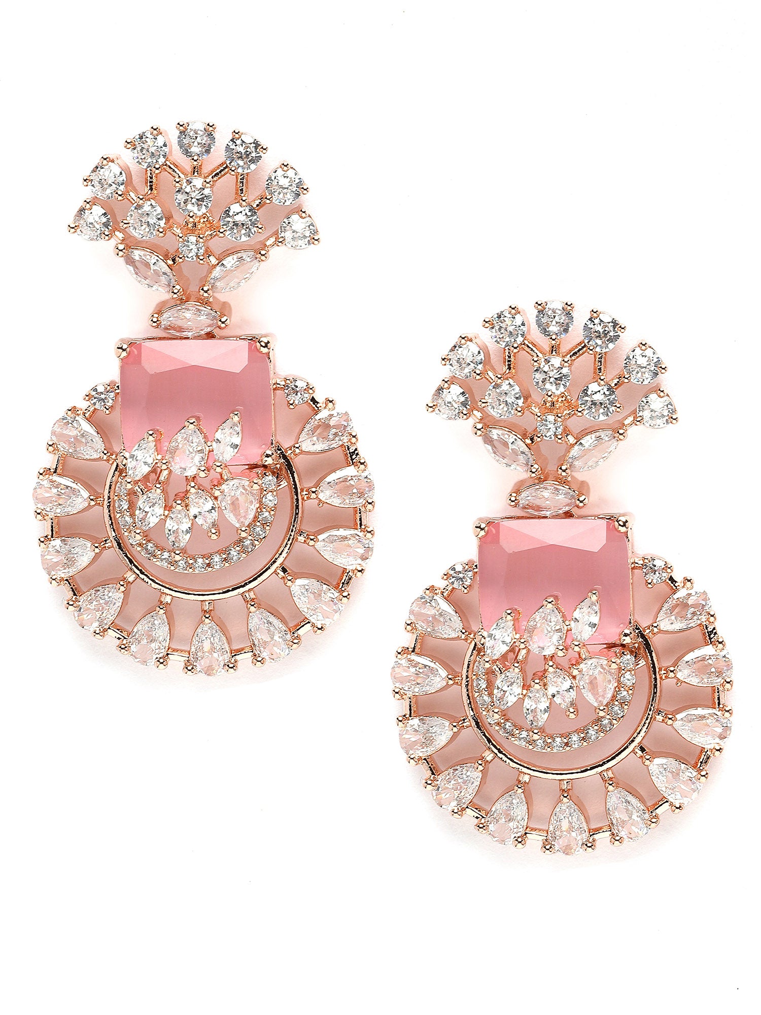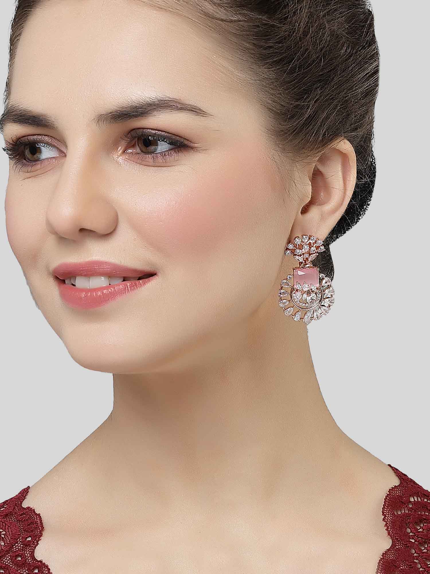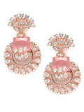 Karatcart Rose-Gold Plated Pink Cubic Zirconia Studded Drop Earrings for Women