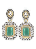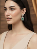 Karatcart Black Silver Plated Lime Green Cubic Zirconia Studded Drop Earrings for Women