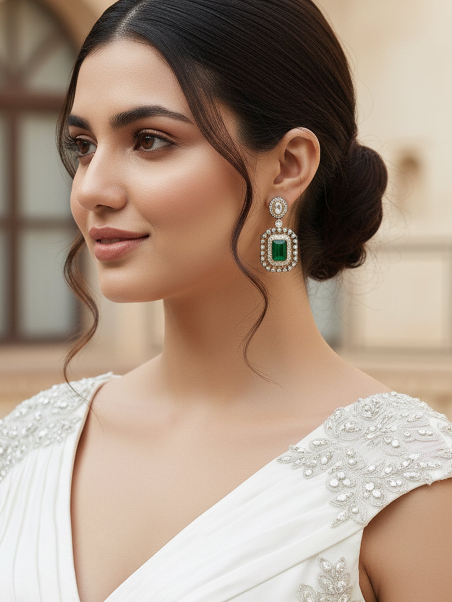 - This is a Green Earrings by Brand Karatcart which has American Diamond stones.This is Black Silver Plated. We at KARATCART understand your desire to look the best on any day & we thrive in making any day an occasion. Every individual at Karatcart carries a passion for jewellery and it reflects in our beautiful designs as well as in our breathtaking craftsmanship. We create unique jewellery so you can make heads turn..