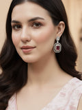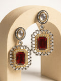 Karatcart Black Silver Plated Red Cubic Zirconia Studded Drop Earrings for Women