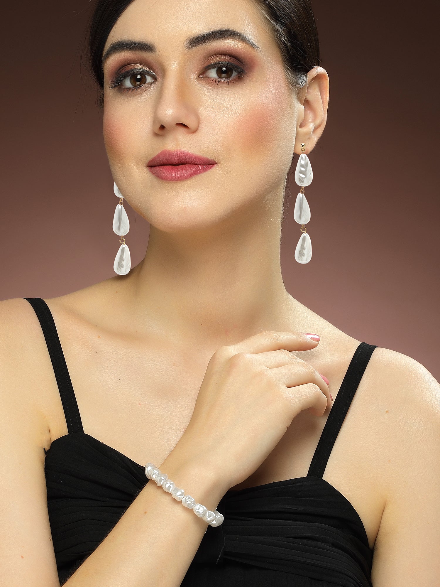 Bohey by KARATCART Drop Pearl Earring and Pearl Bracelet Combo for Women