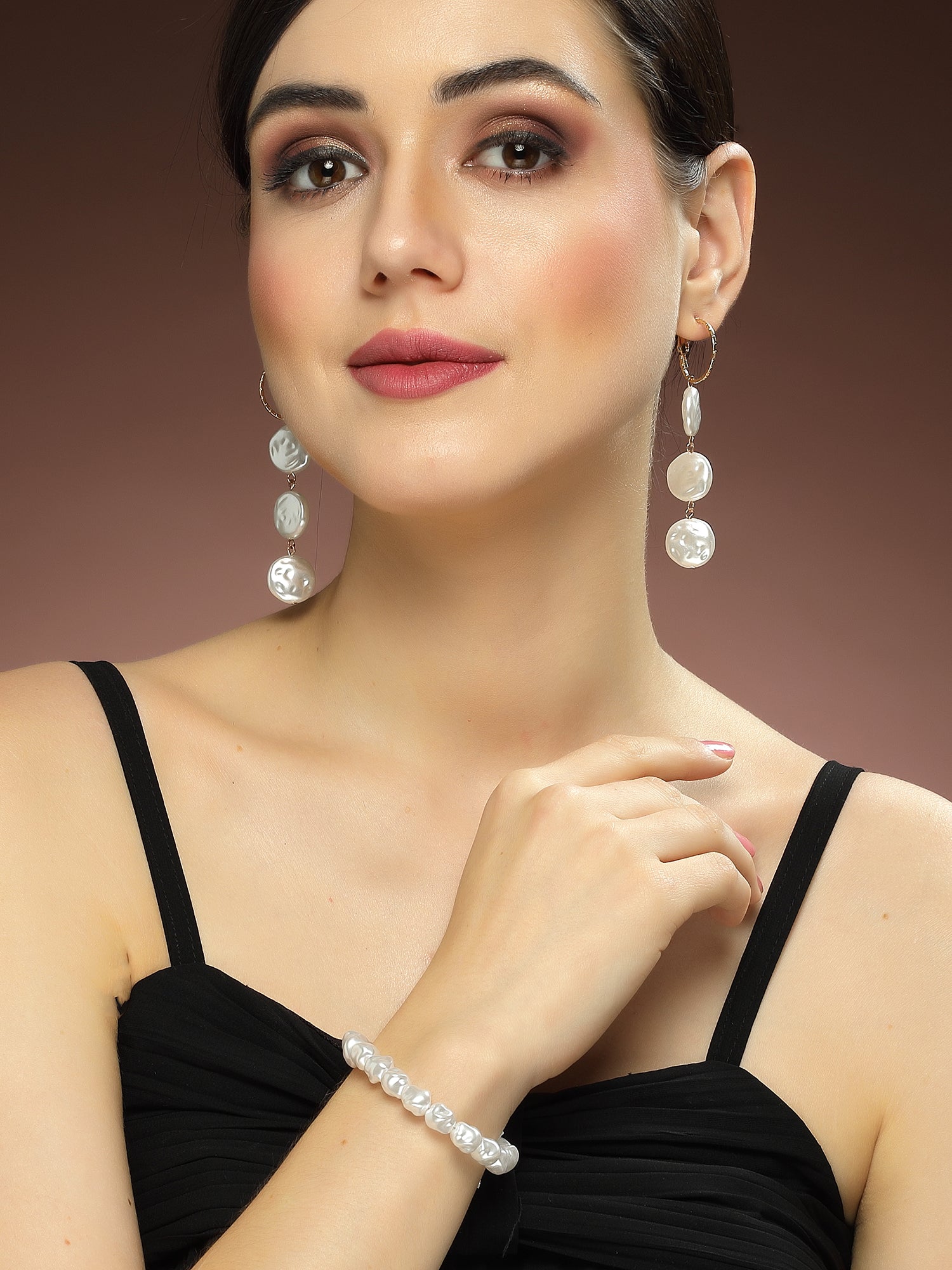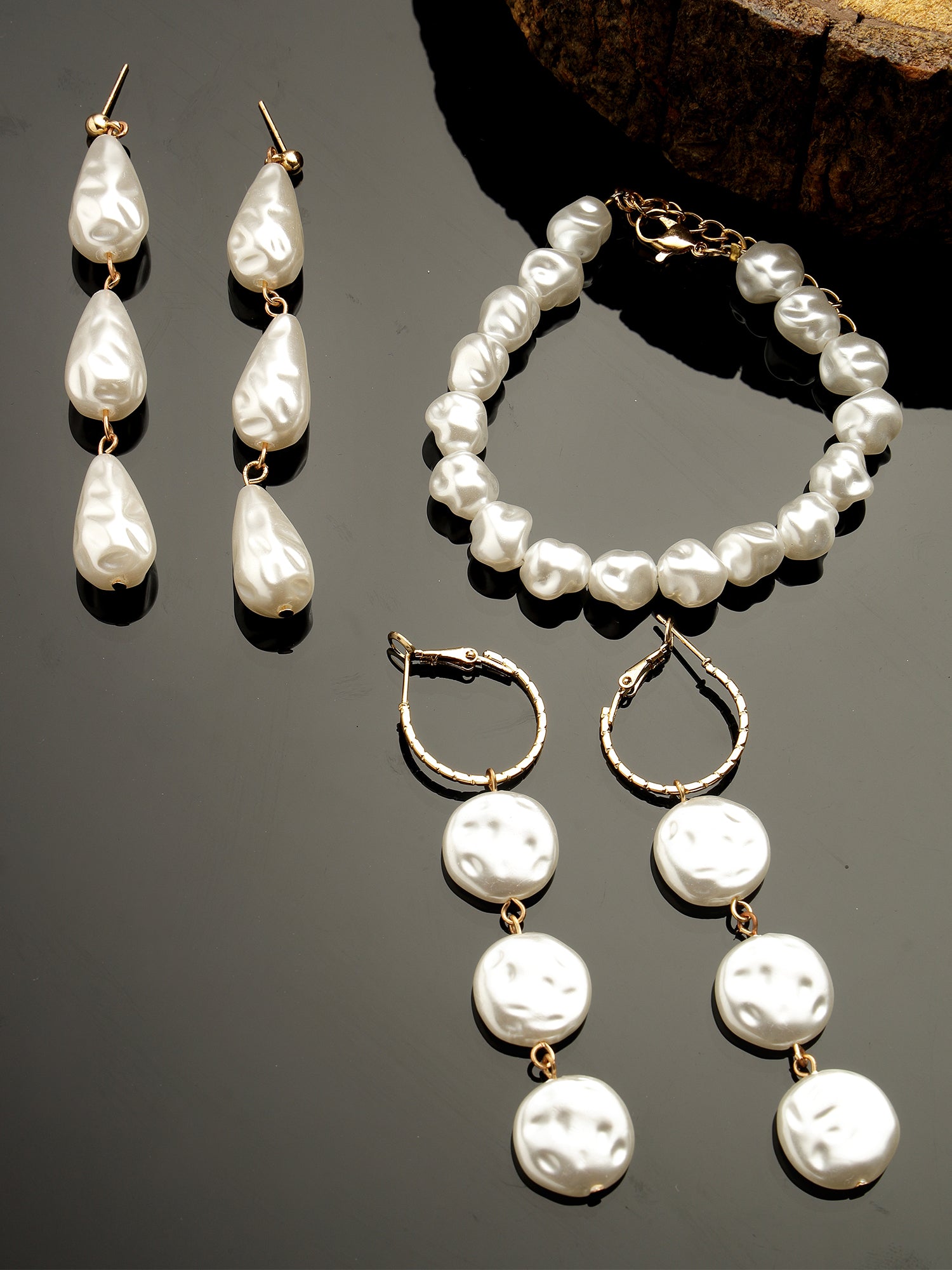 Bohey by KARATCART Coin and Drop Pearl Earring with Pearl Bracelet Combo for Women