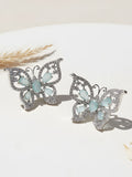 Karatcart Silver Tone Lime Green Butterfly Design Cubic Zirconia Earrings for Women