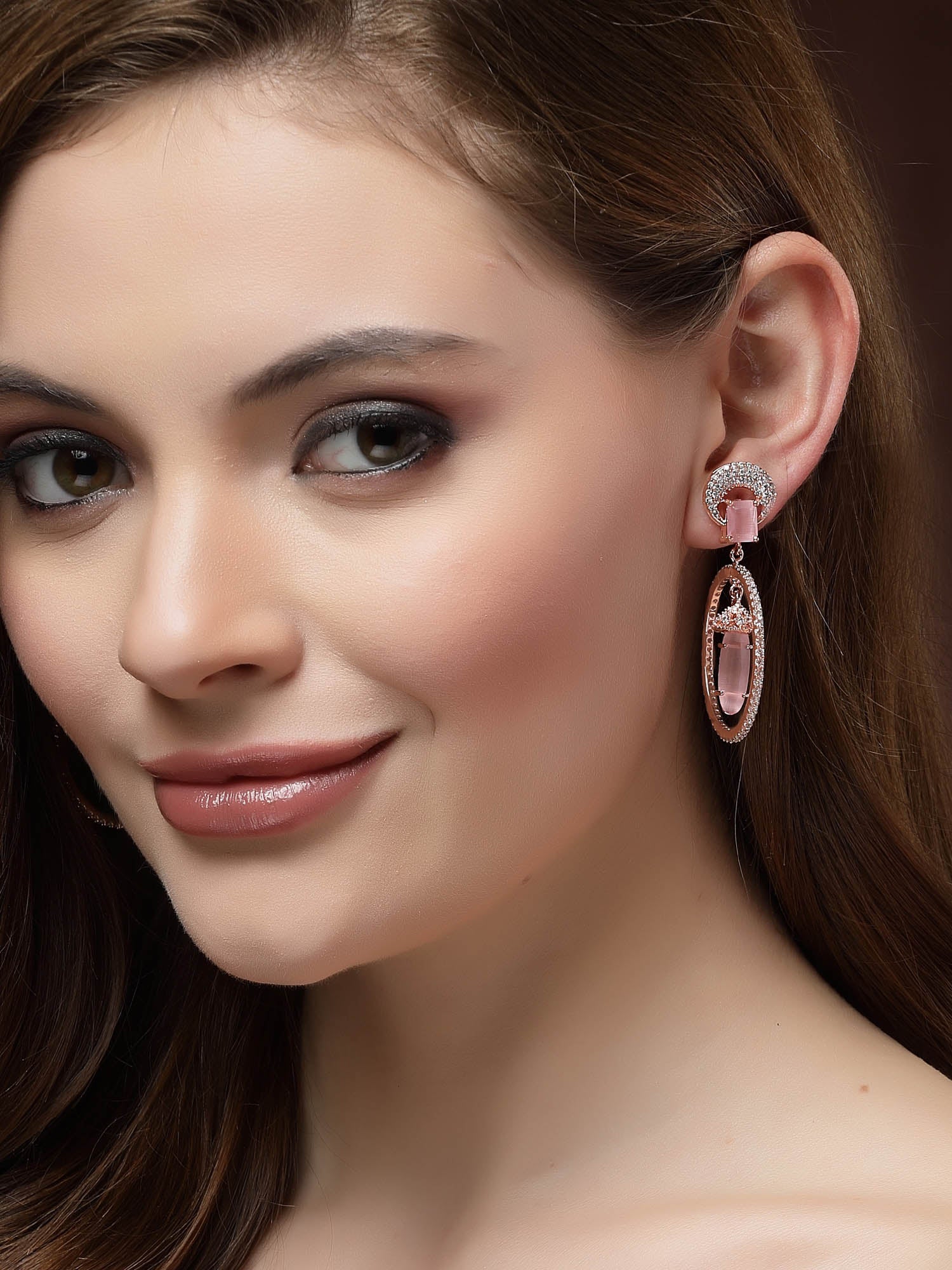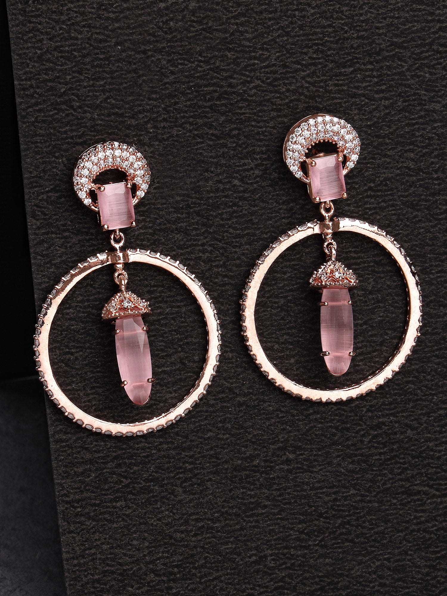 - This is a Rose Gold Earrings by Brand Karatcart which has Pink American Diamond stones.This is Rose Gold Plated. We at KARATCART understand your desire to look the best on any day & we thrive in making any day an occasion. Every individual at Karatcart carries a passion for jewellery and it reflects in our beautiful designs as well as in our breathtaking craftsmanship. We create unique jewellery so you can make heads turn..