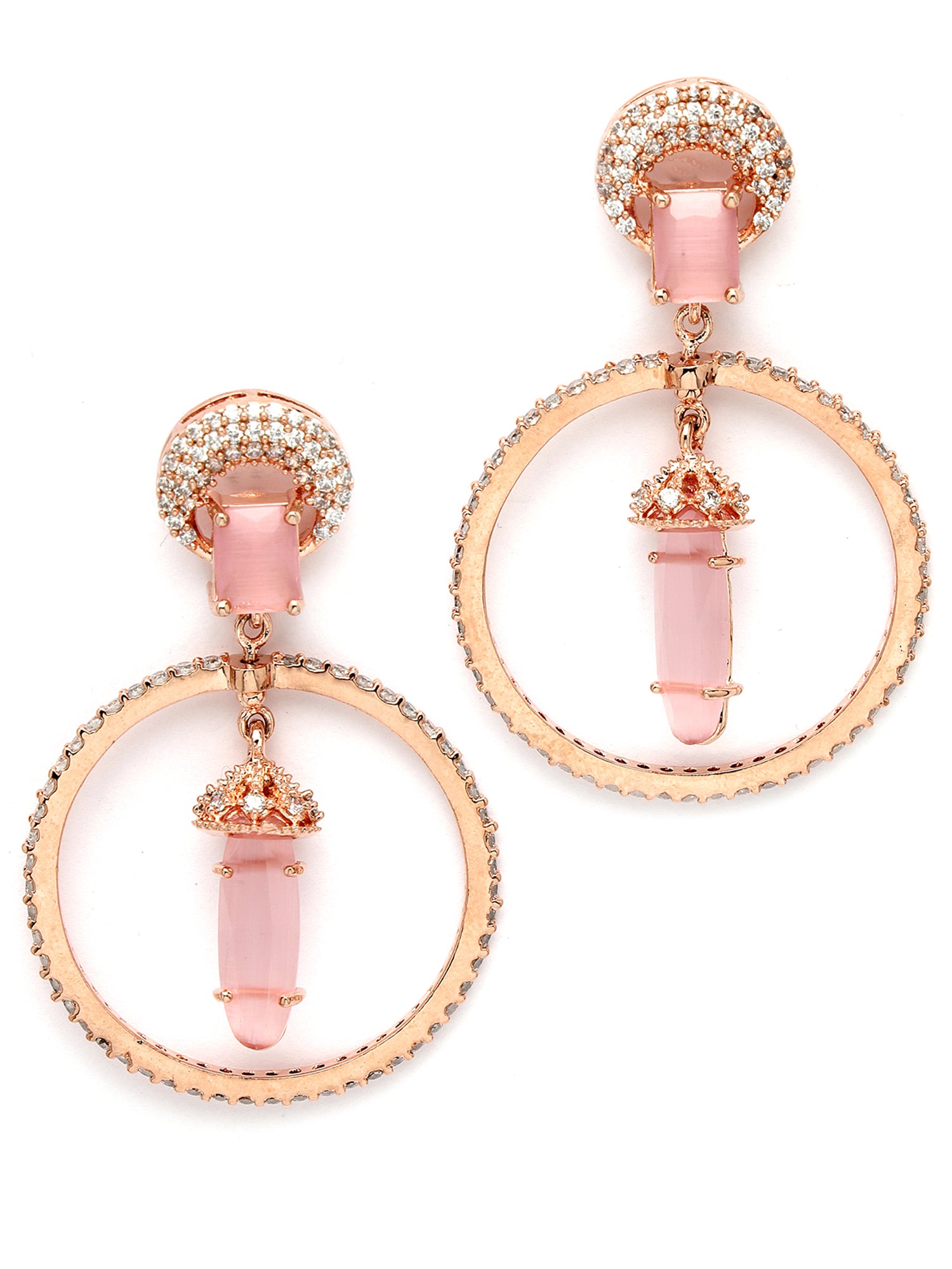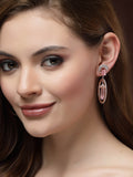 Karatcart Rose Gold Plated Pink Cubic Zirconia Studded Dangler Hoop Earrings for Women