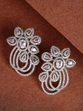 Karatcart Silver Plated Cubic Zirconia Studded Floral Stud Earrings for Women