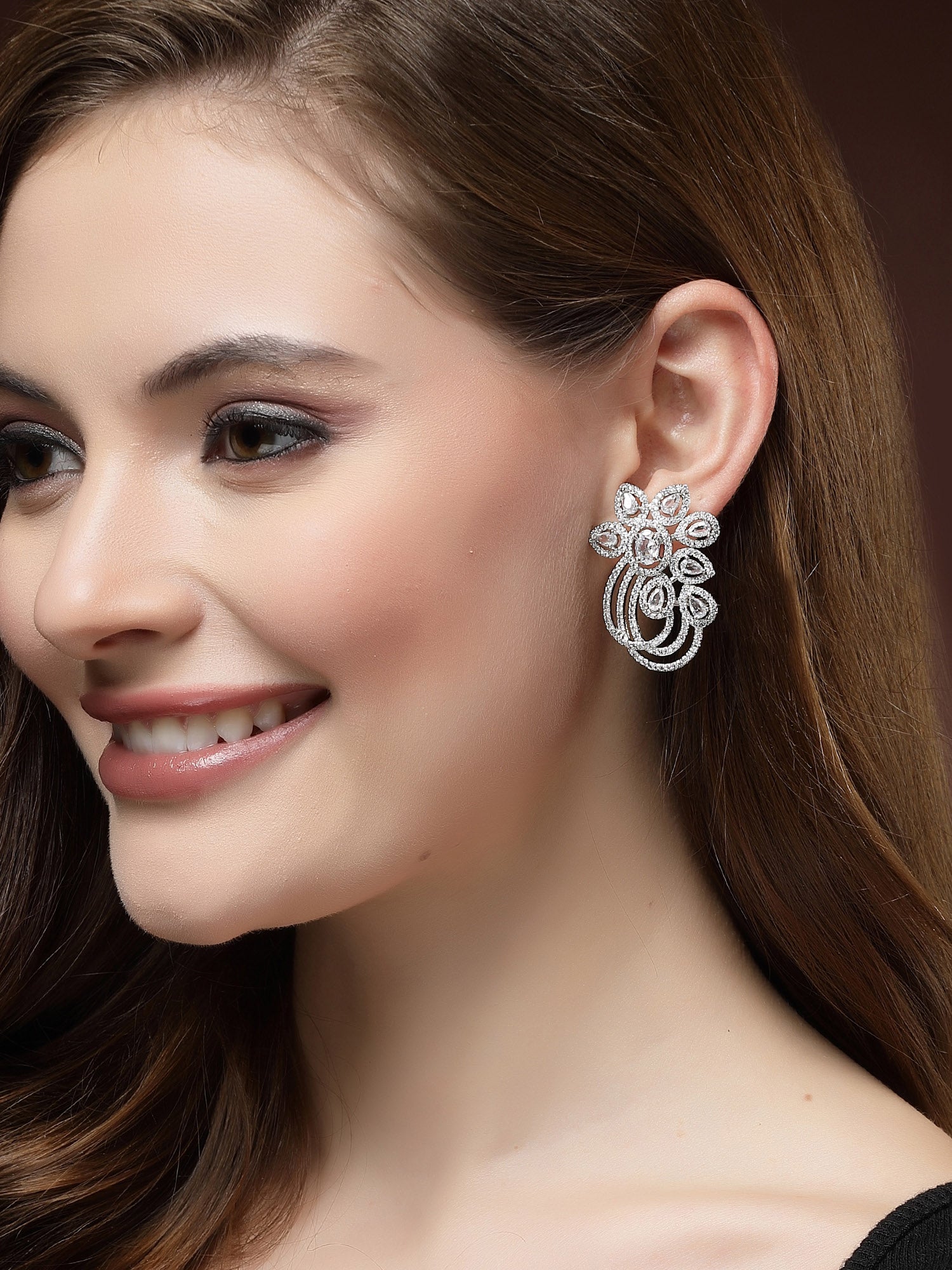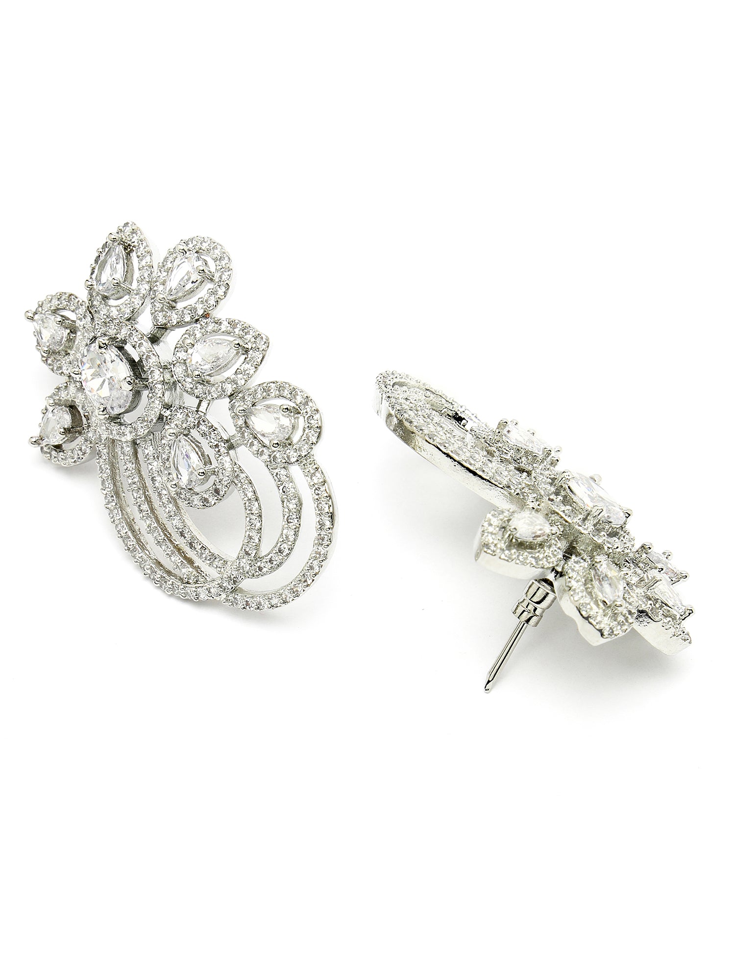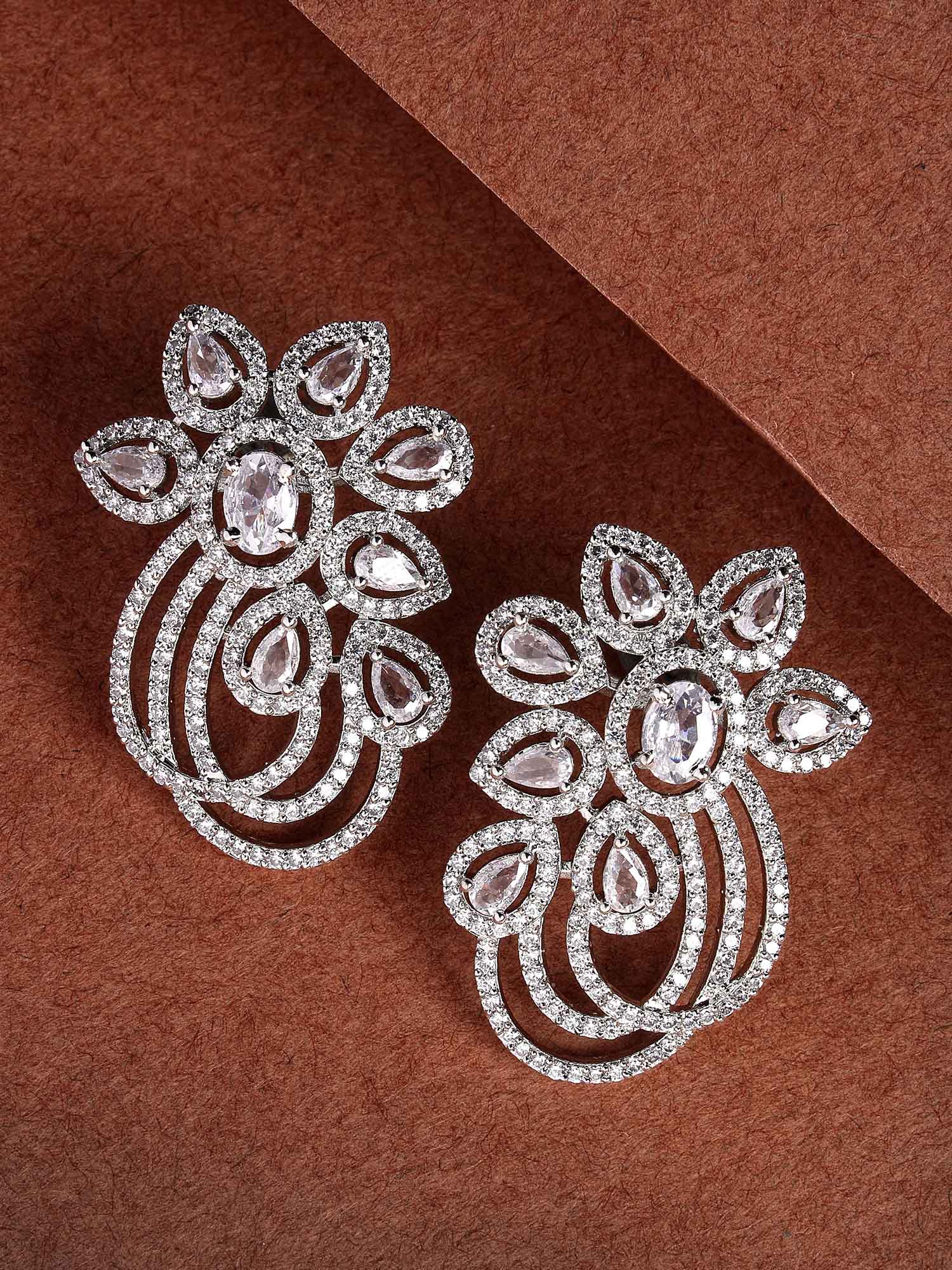 - This is a Silver Earrings by Brand Karatcart which has American Diamond stones.This is Silver Plated. We at KARATCART understand your desire to look the best on any day & we thrive in making any day an occasion. Every individual at Karatcart carries a passion for jewellery and it reflects in our beautiful designs as well as in our breathtaking craftsmanship. We create unique jewellery so you can make heads turn..