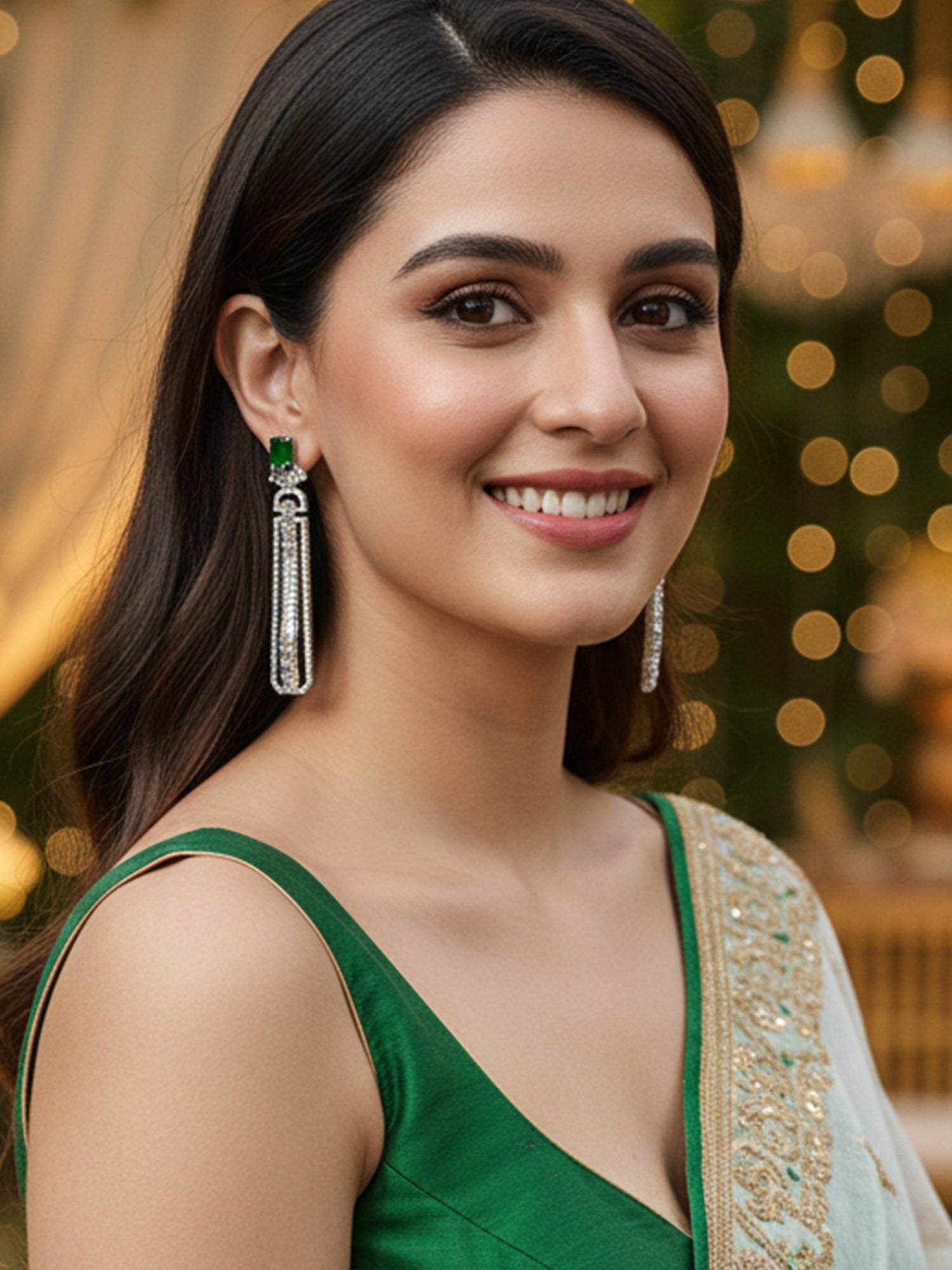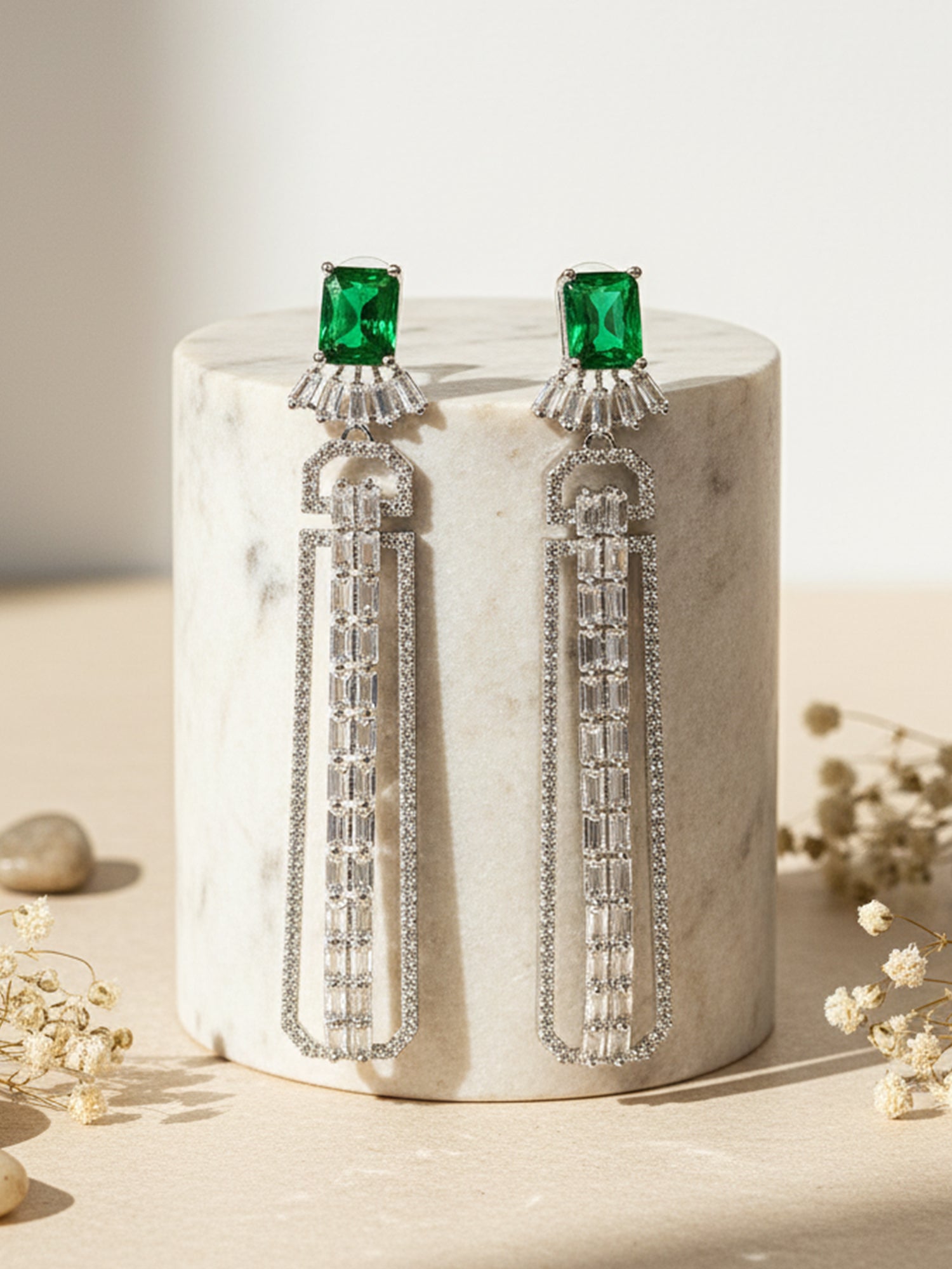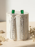 Karatcart Green Cubic Zirconia Studded Silver Plated Long Drop Earrings for Women