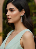 Karatcart Green Cubic Zirconia Studded Silver Plated Drop Earrings for Women