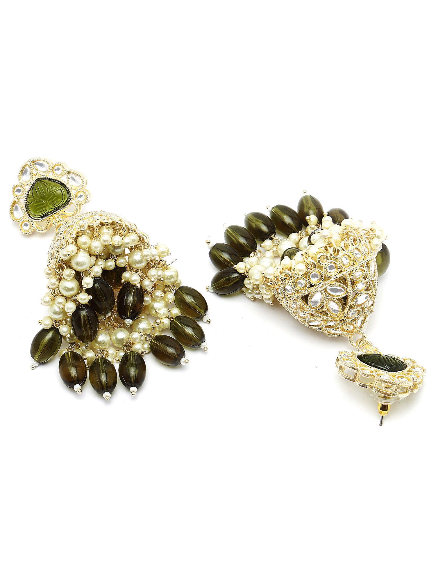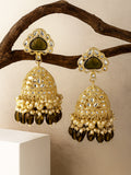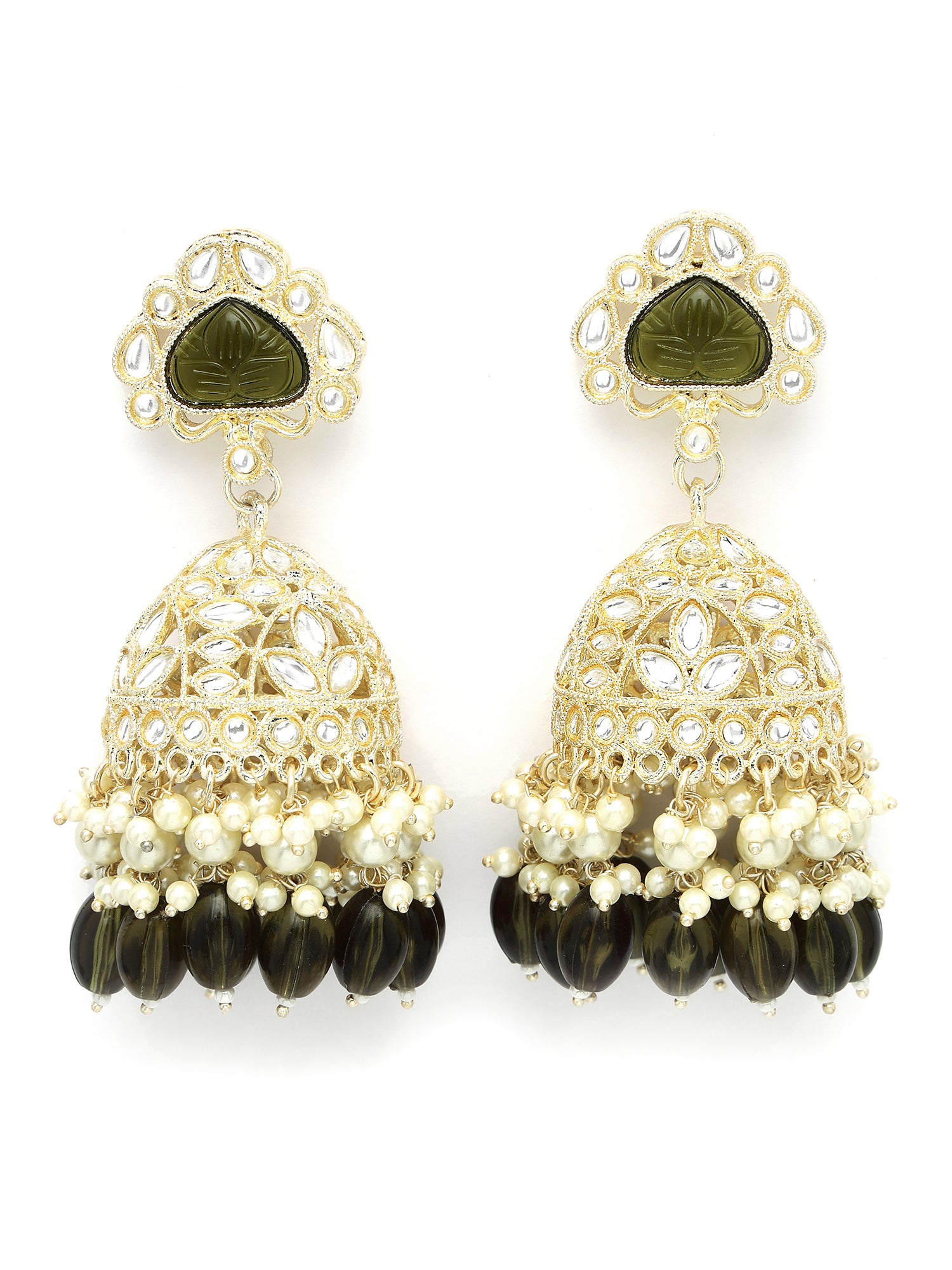 Karatcart Gold Plated Olive Green Stone Studded Kundan Jhumki Earrings for Women