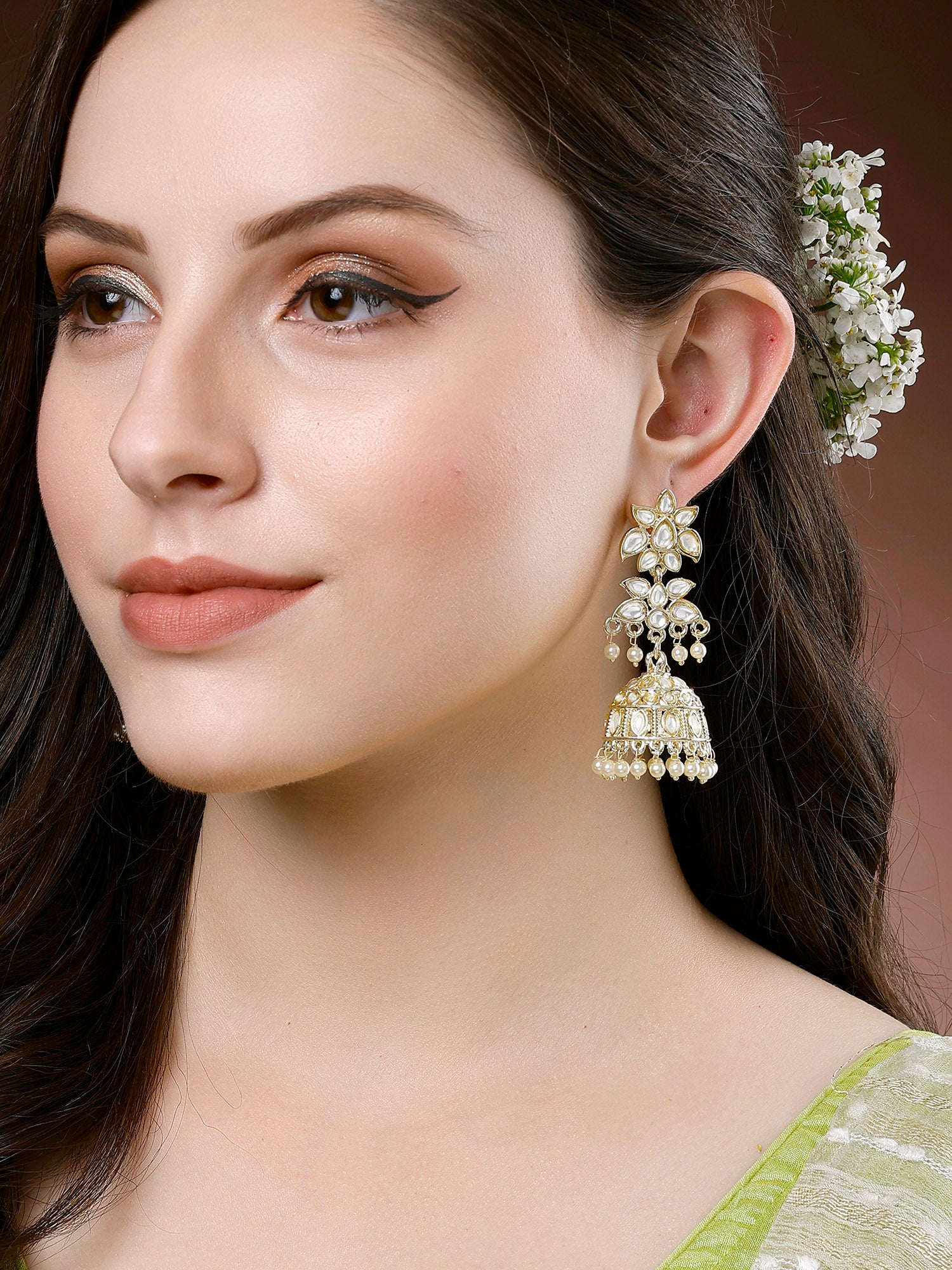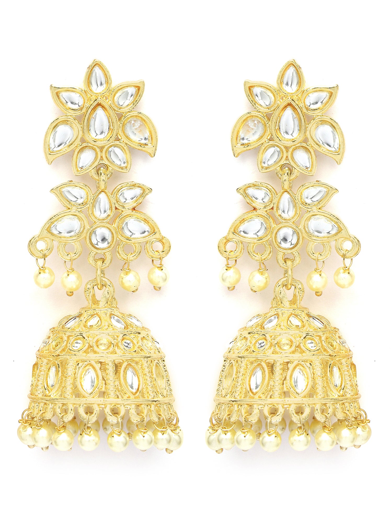 Karatcart Gold Plated Kundan Stone Studded Jhumki Drop Earrings for Women