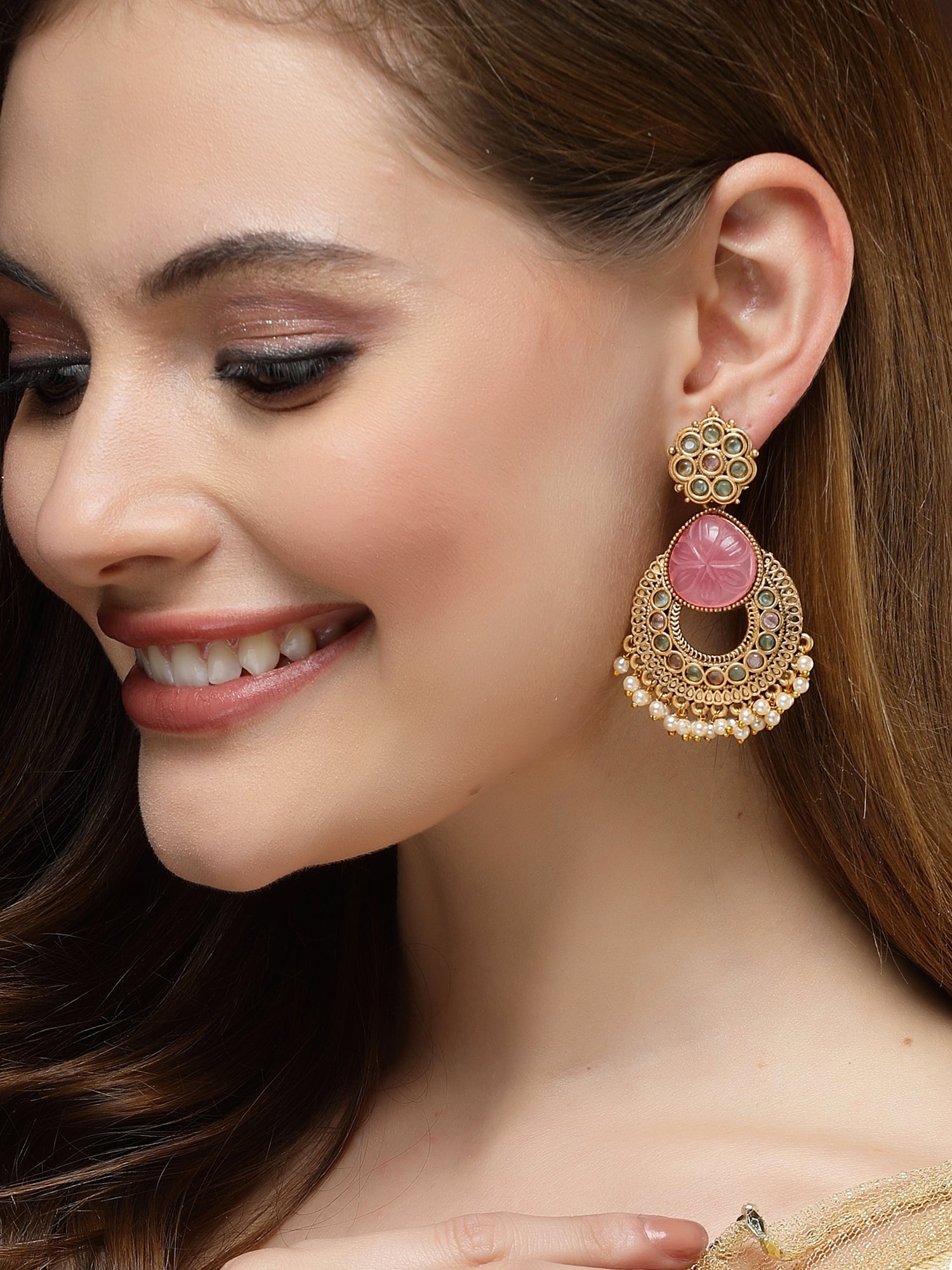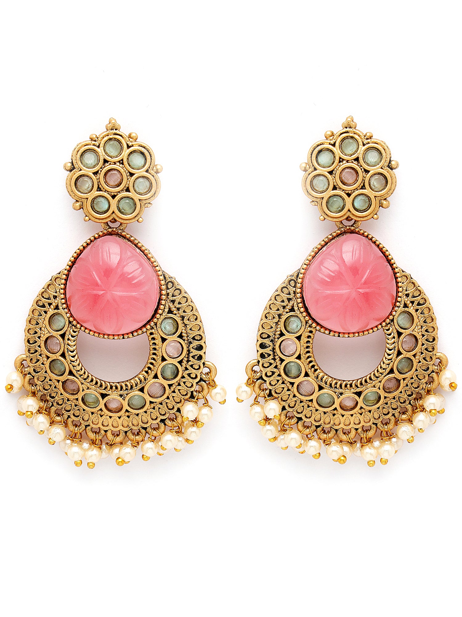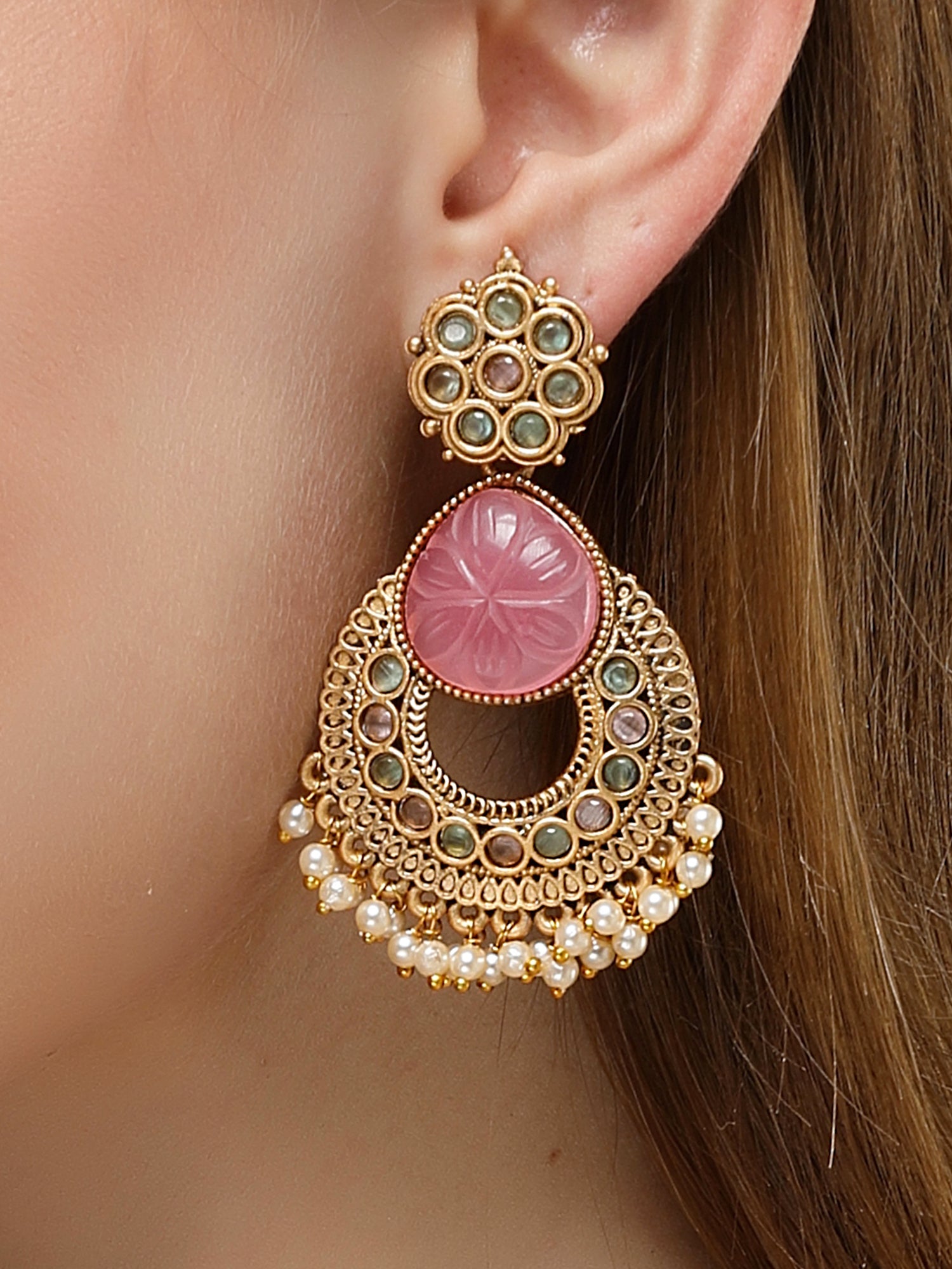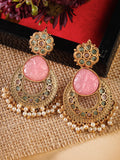 Karatcart Gold Plated Pink Carved Stone Drop Earrings for Women