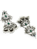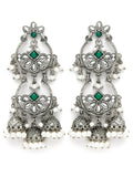 Karatcart Oxidised Silver Floral Design Green Kundan Drop Earrings for Women