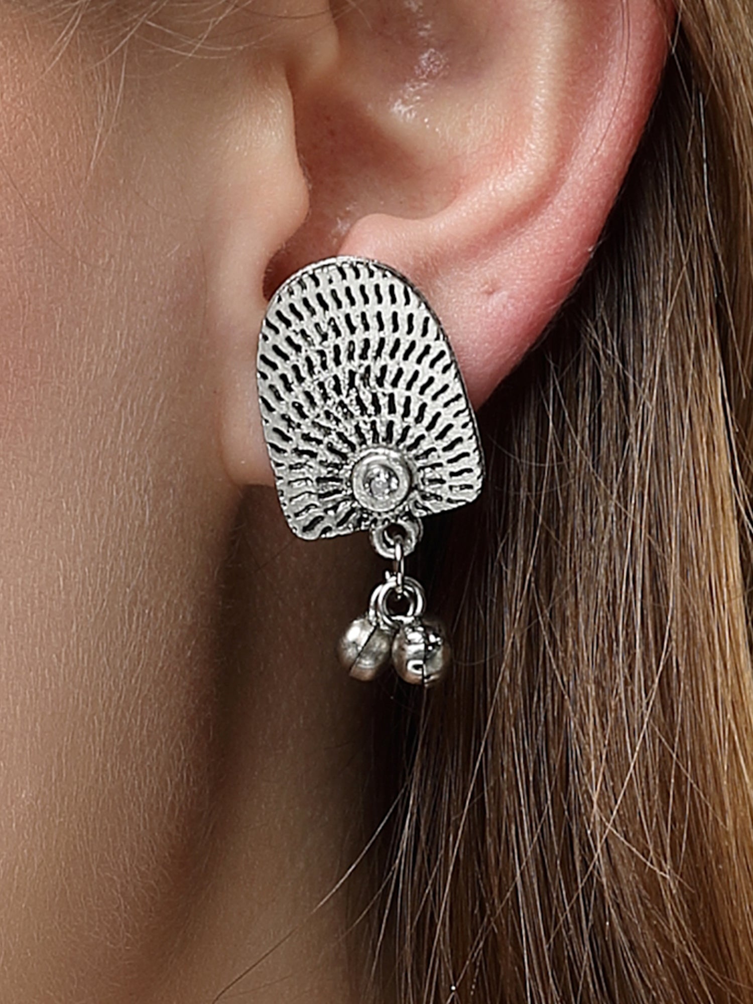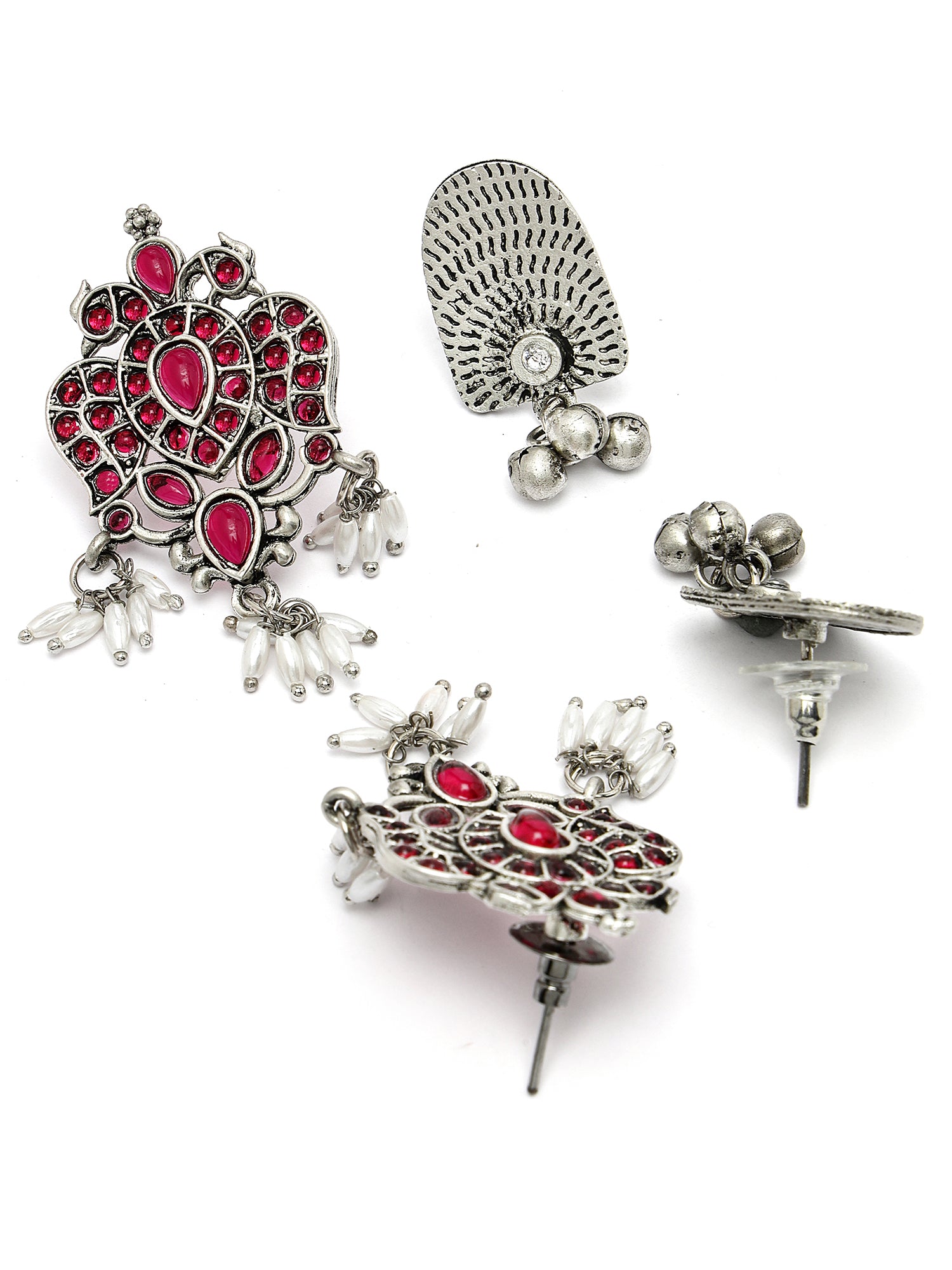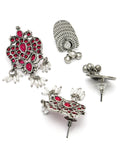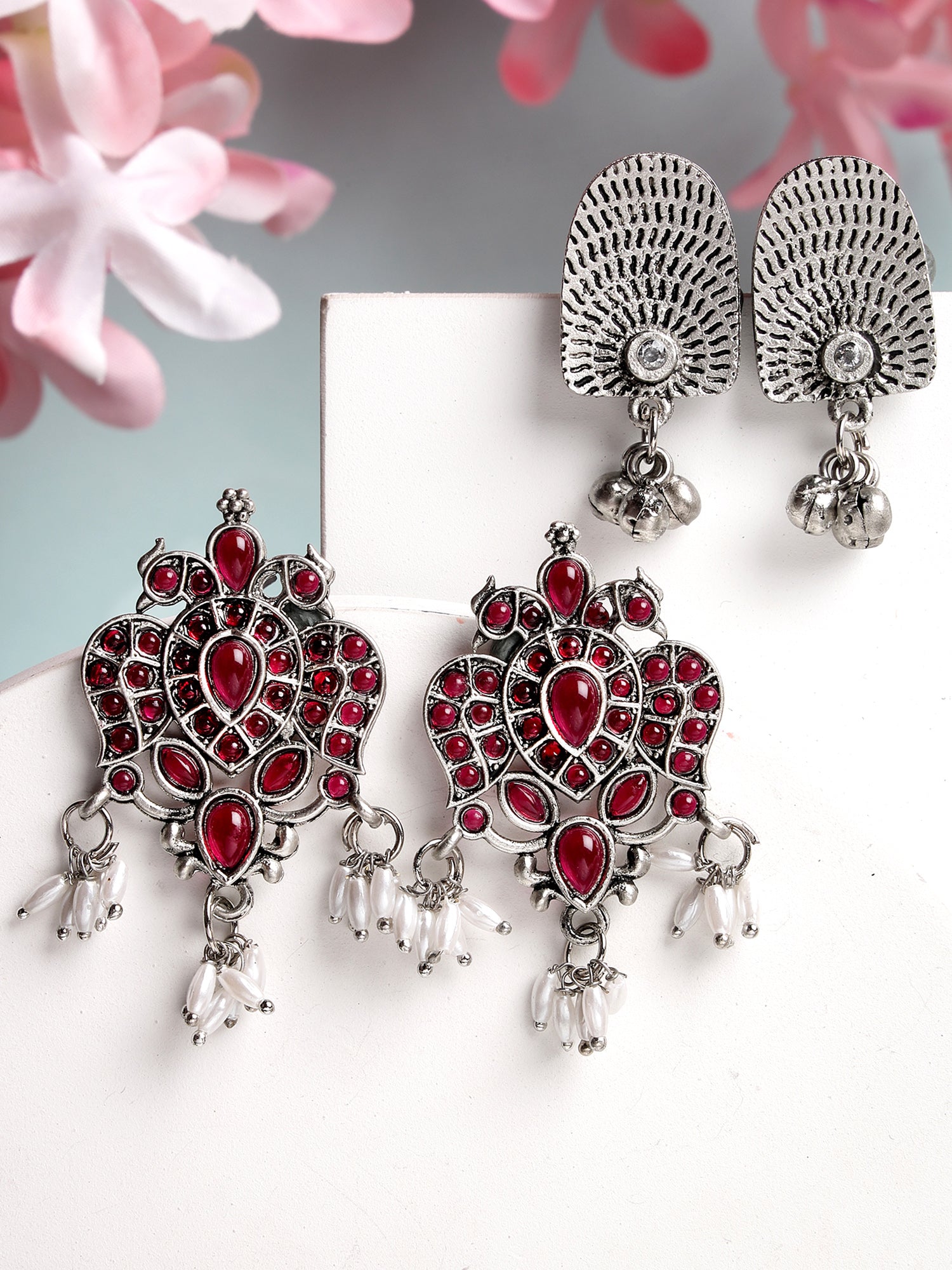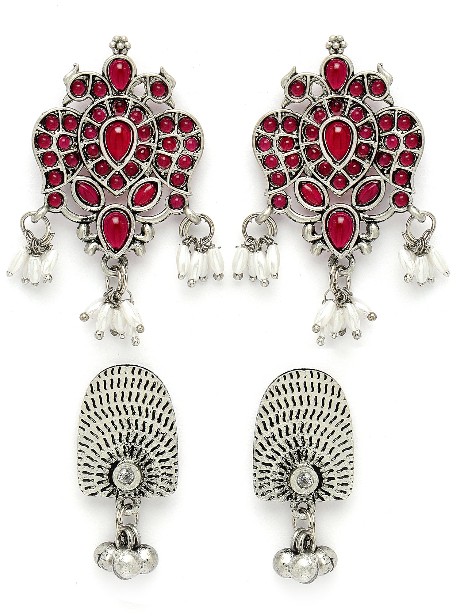 Karatcart Set of 2 Oxidised Silver Red Stone Studded Stud Earrings for Women