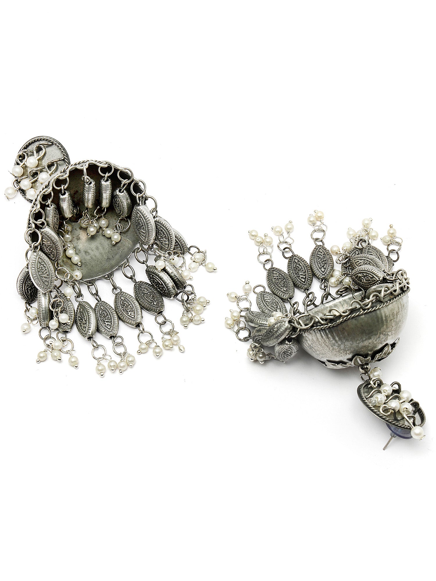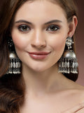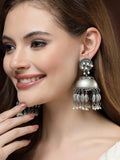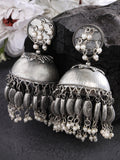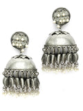 Karatcart Antique Finish Tribal Oxidised Silver Lightweight Dome Shape Jhumki Earrings for Women
