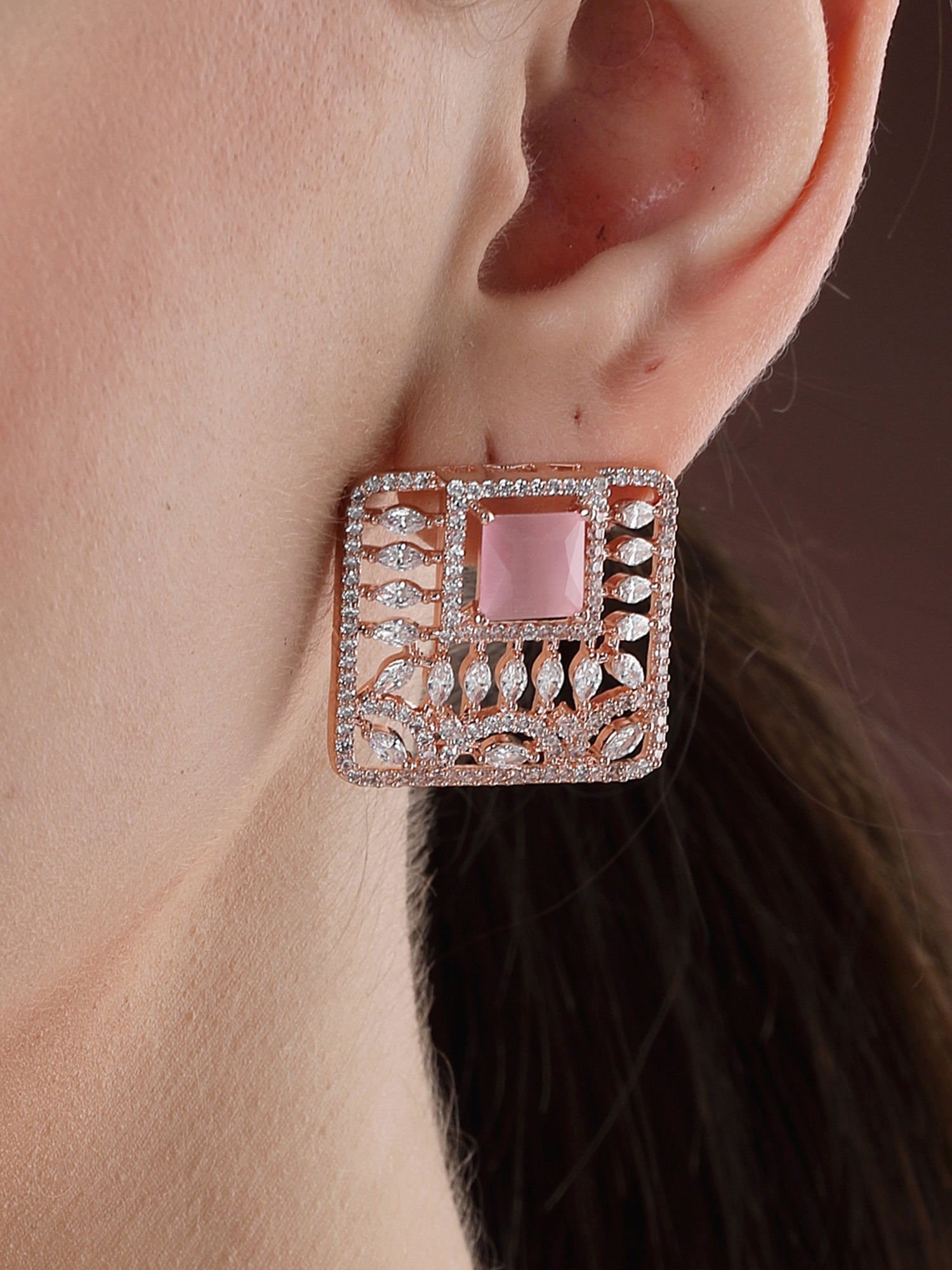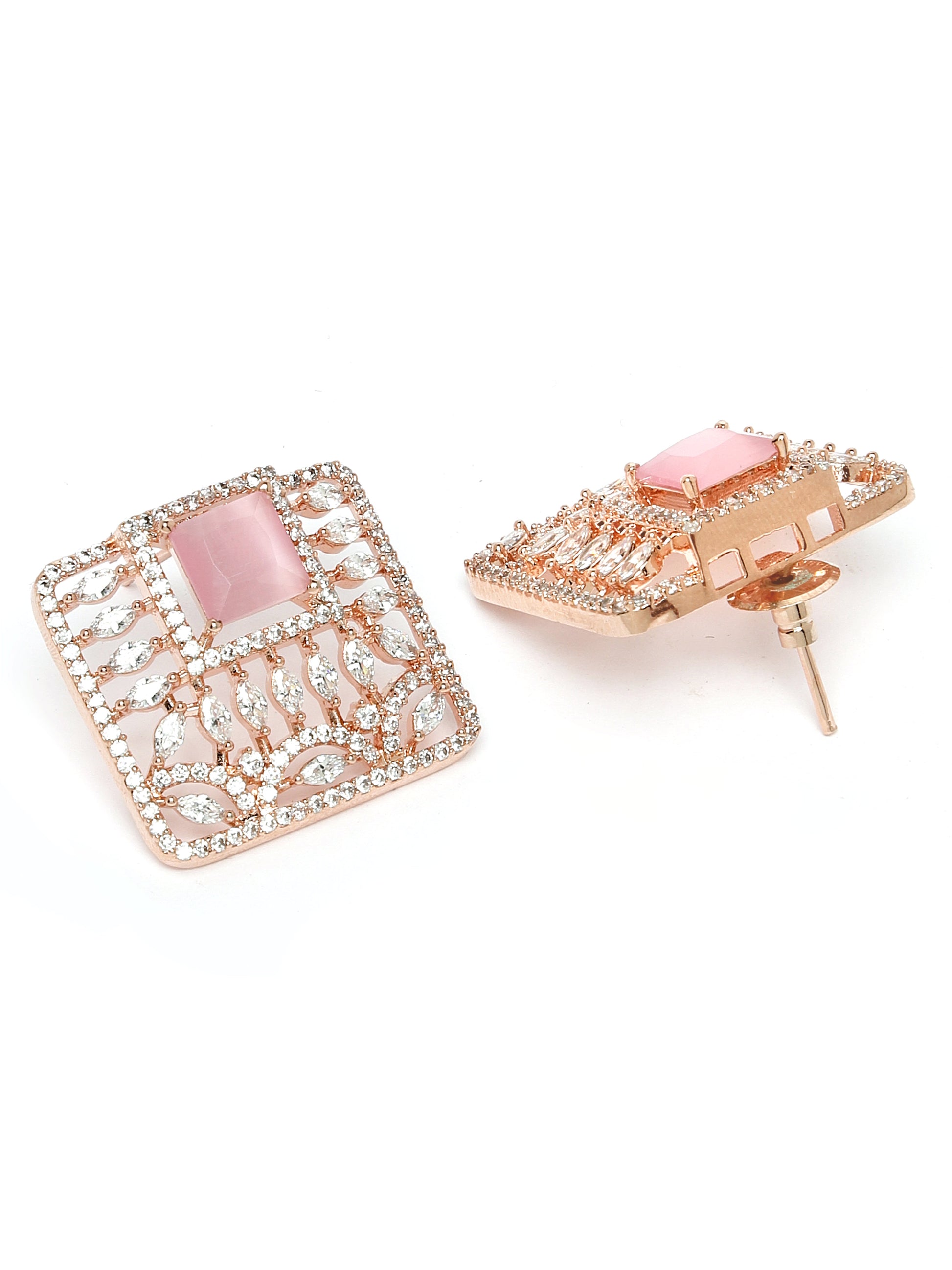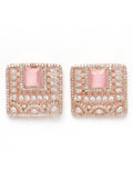 Karatcart Rose Gold Plated Pink Stones AD Stud Earrings for Women