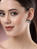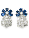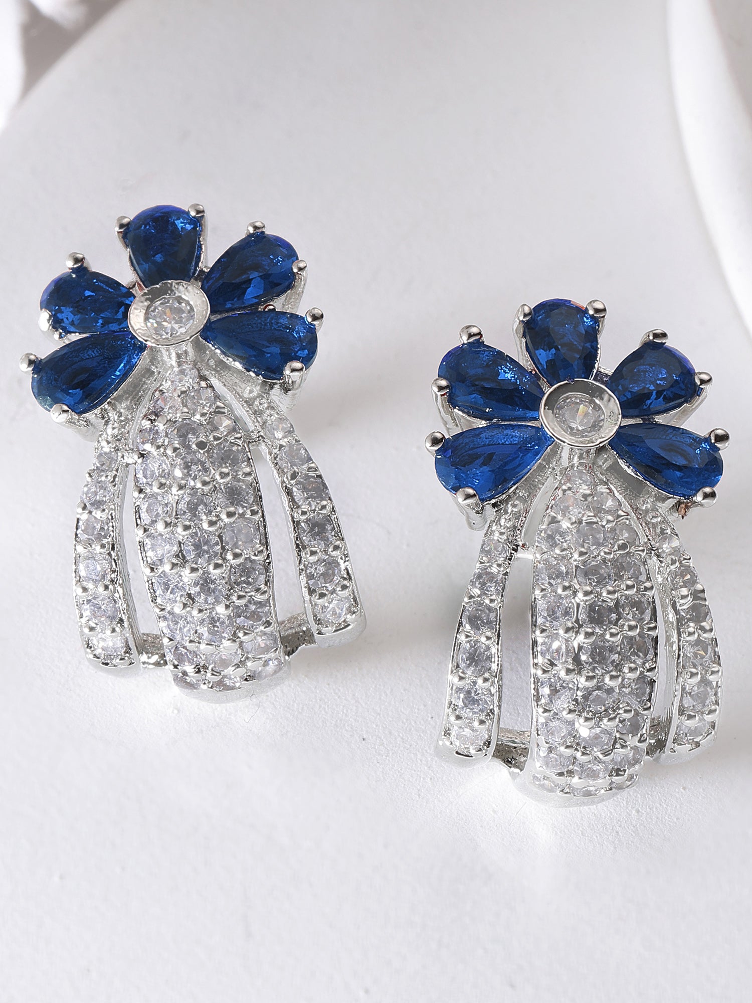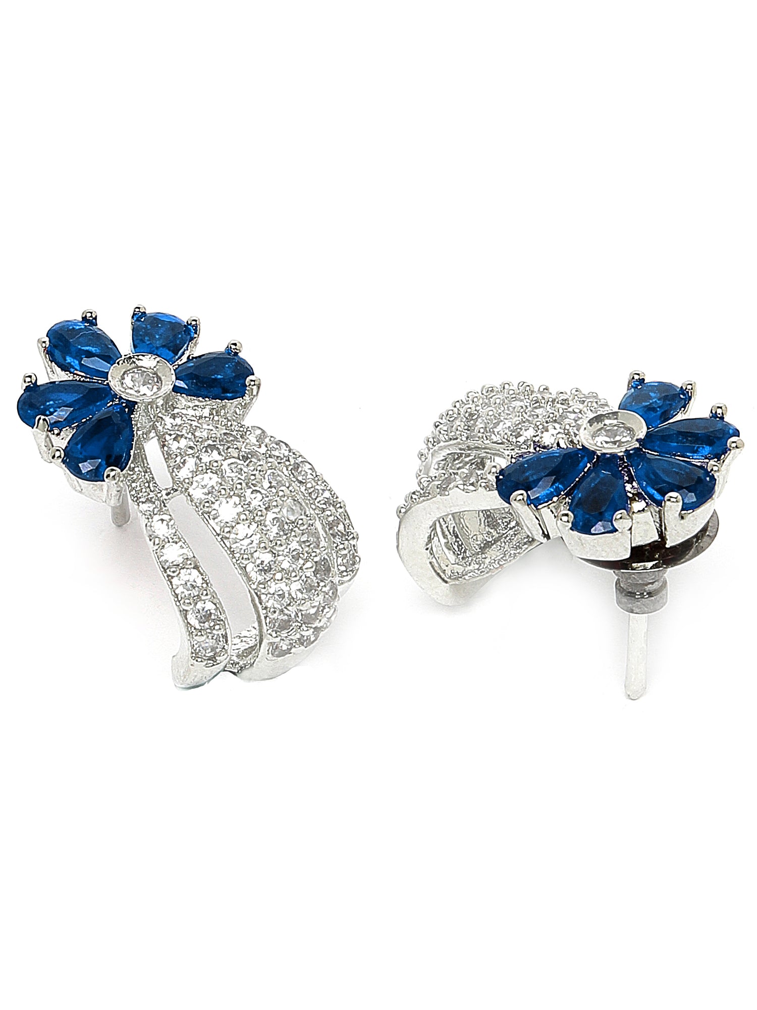 Karatcart Silver Plated Blue Stones Floral Design AD Stud Earrings for Women