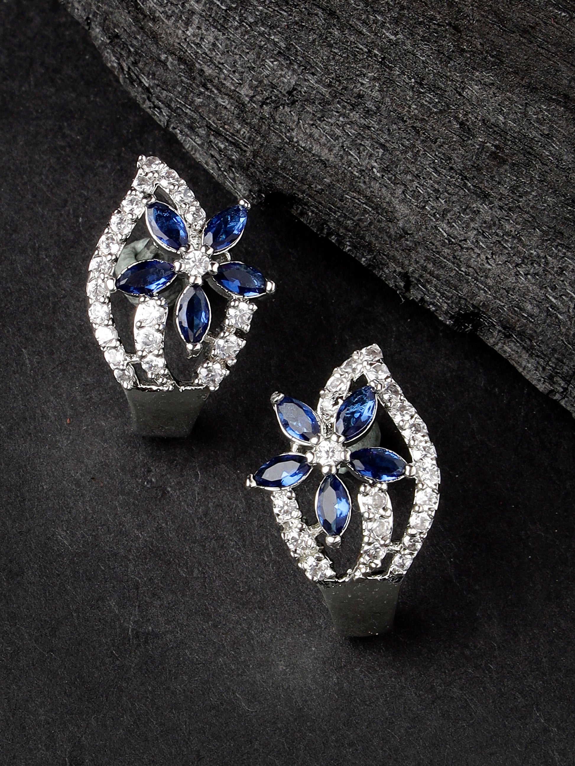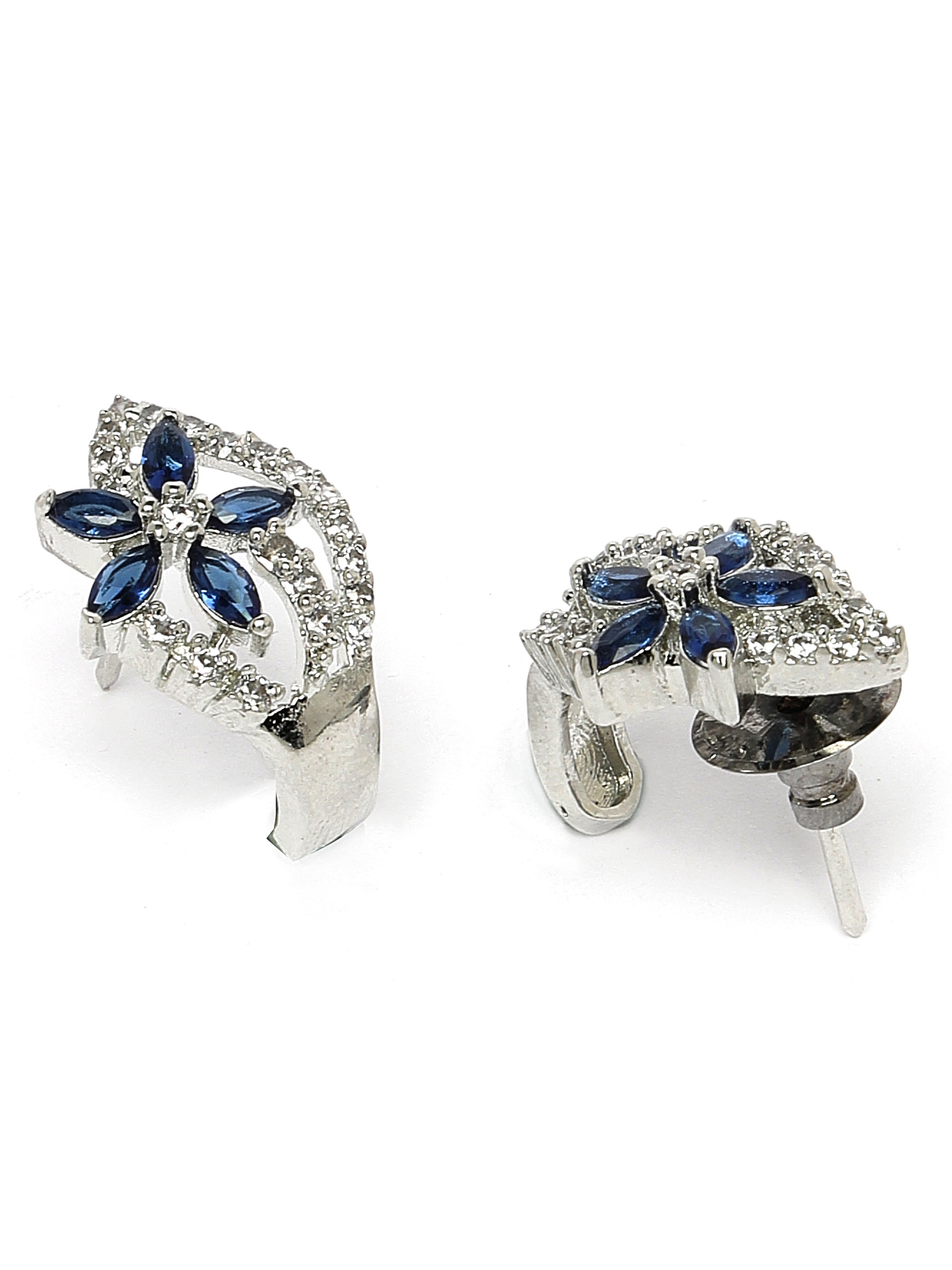 Karatcart Blue Stones Silver Plated Floral Design AD Stud Earrings for Women