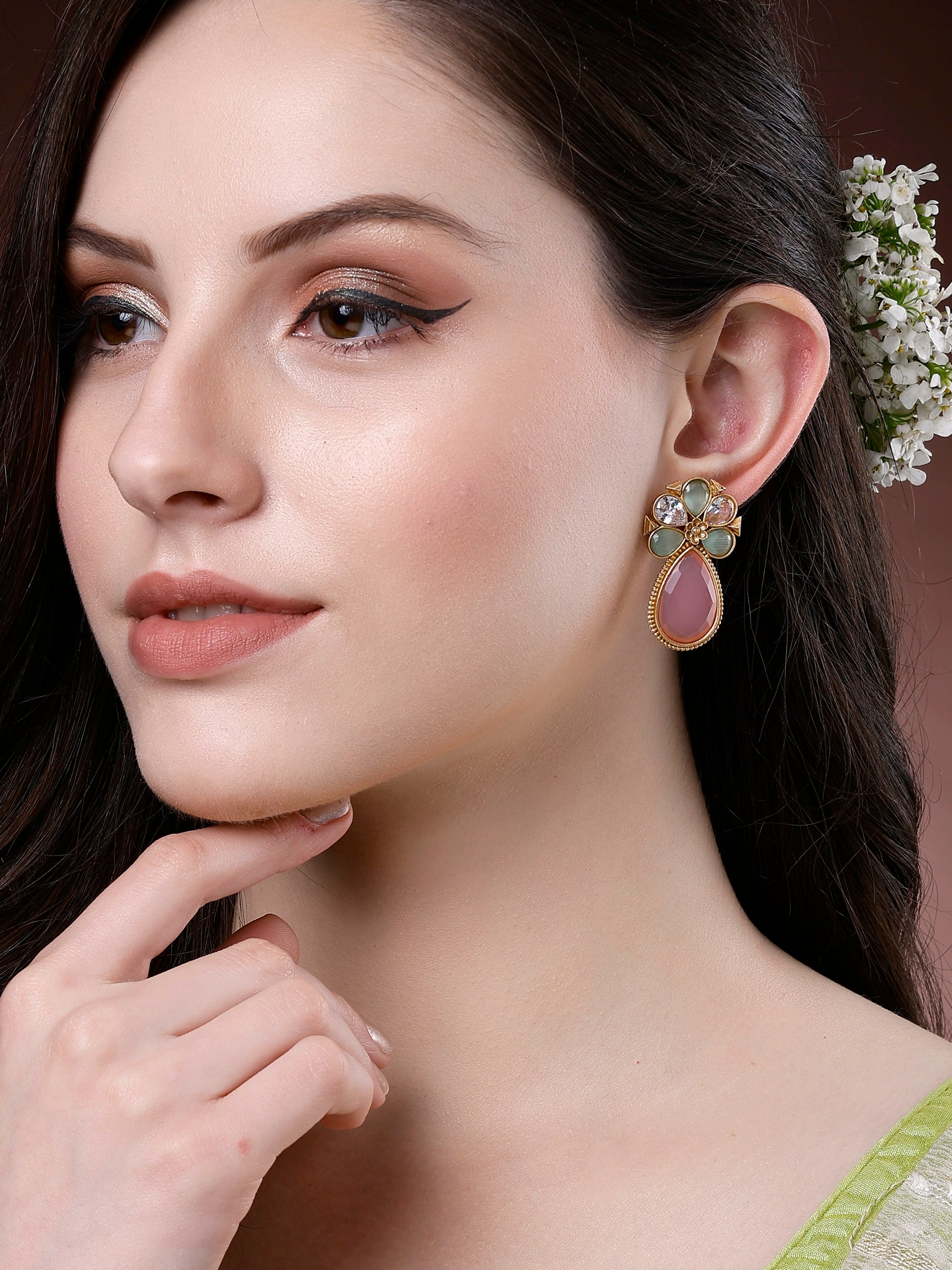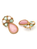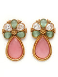 Karatcart Gold Plated Pink and Lime Green Stone Floral Design Stud Earrings for Women