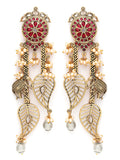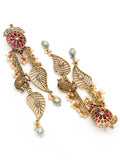 Karatcart Gold Plated Leaf Shape Red Stone Studded Drop Earrings for Women