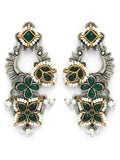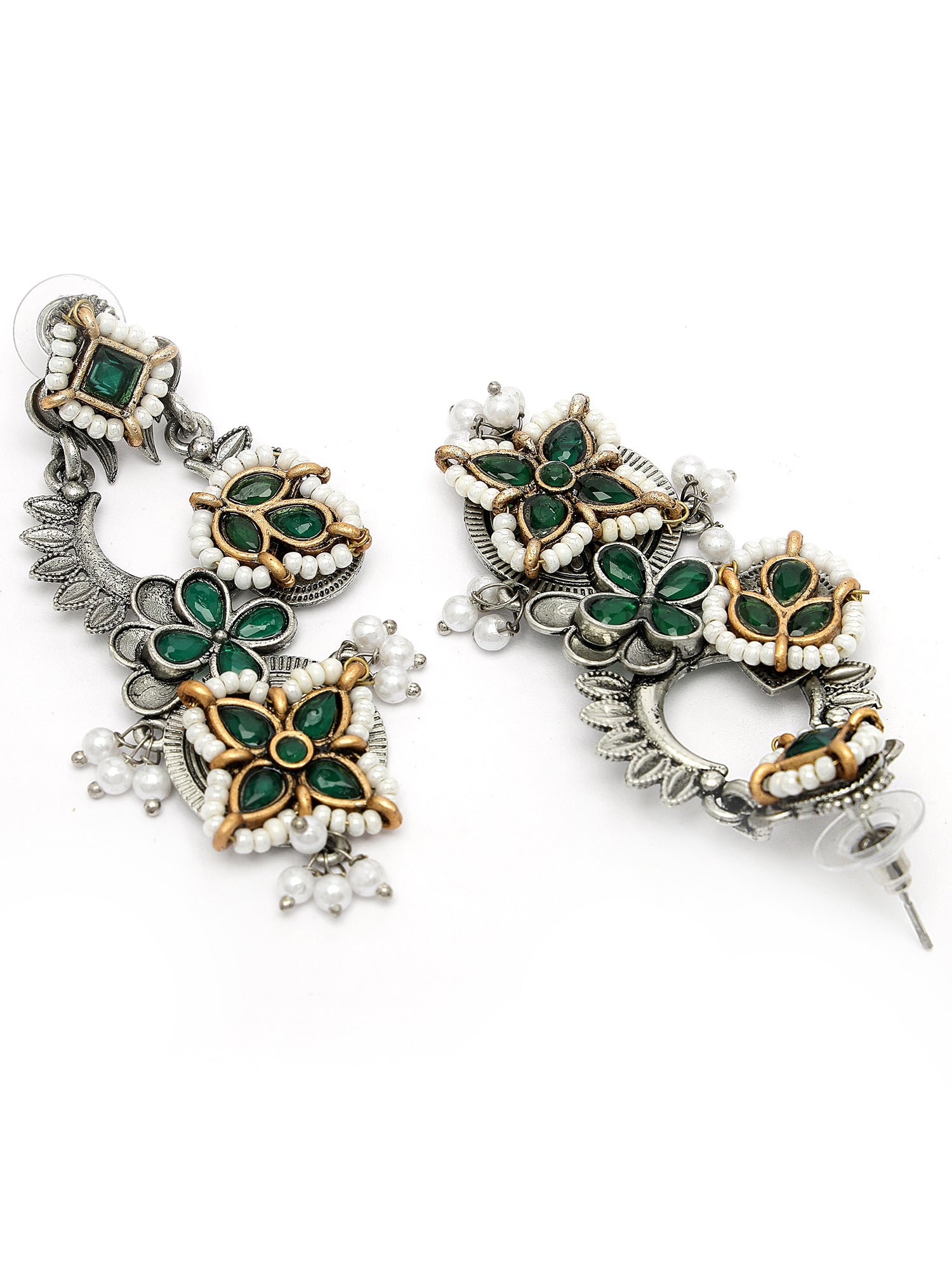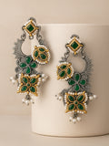 Karatcart Oxidised Silver Green Kundan Drop Earrings for Women