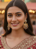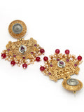 Karatcart Traditional Gold Plated Red Beads Peacock Design Kundan Dangler Earrings for Women