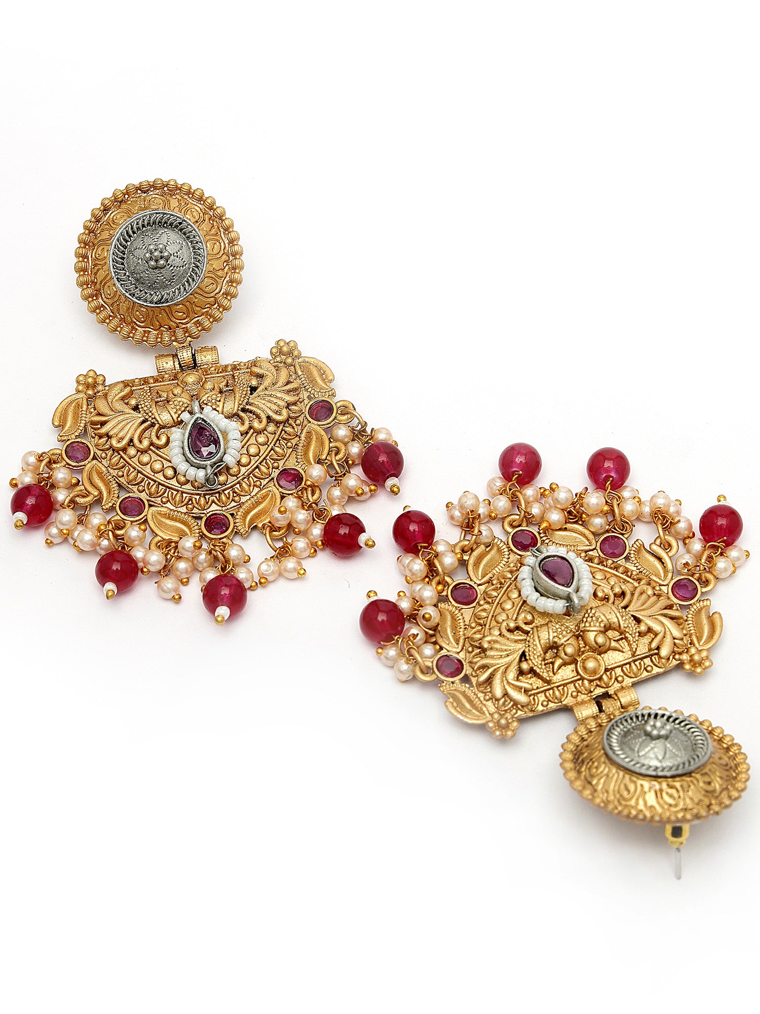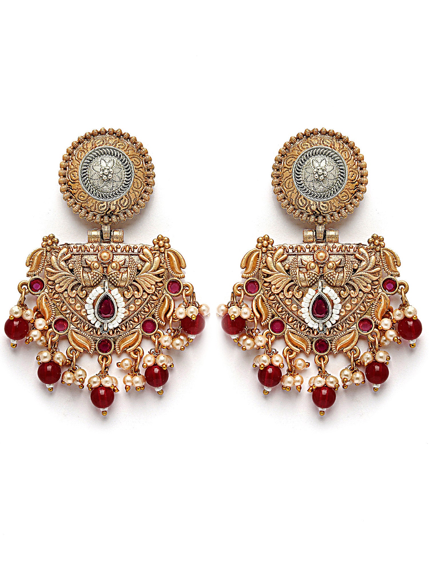- This is a Red Earrings by Brand Karatcart which has Kundan stones.This is Gold Plated. We at KARATCART understand your desire to look the best on any day & we thrive in making any day an occasion. Every individual at Karatcart carries a passion for jewellery and it reflects in our beautiful designs as well as in our breathtaking craftsmanship. We create unique jewellery so you can make heads turn..