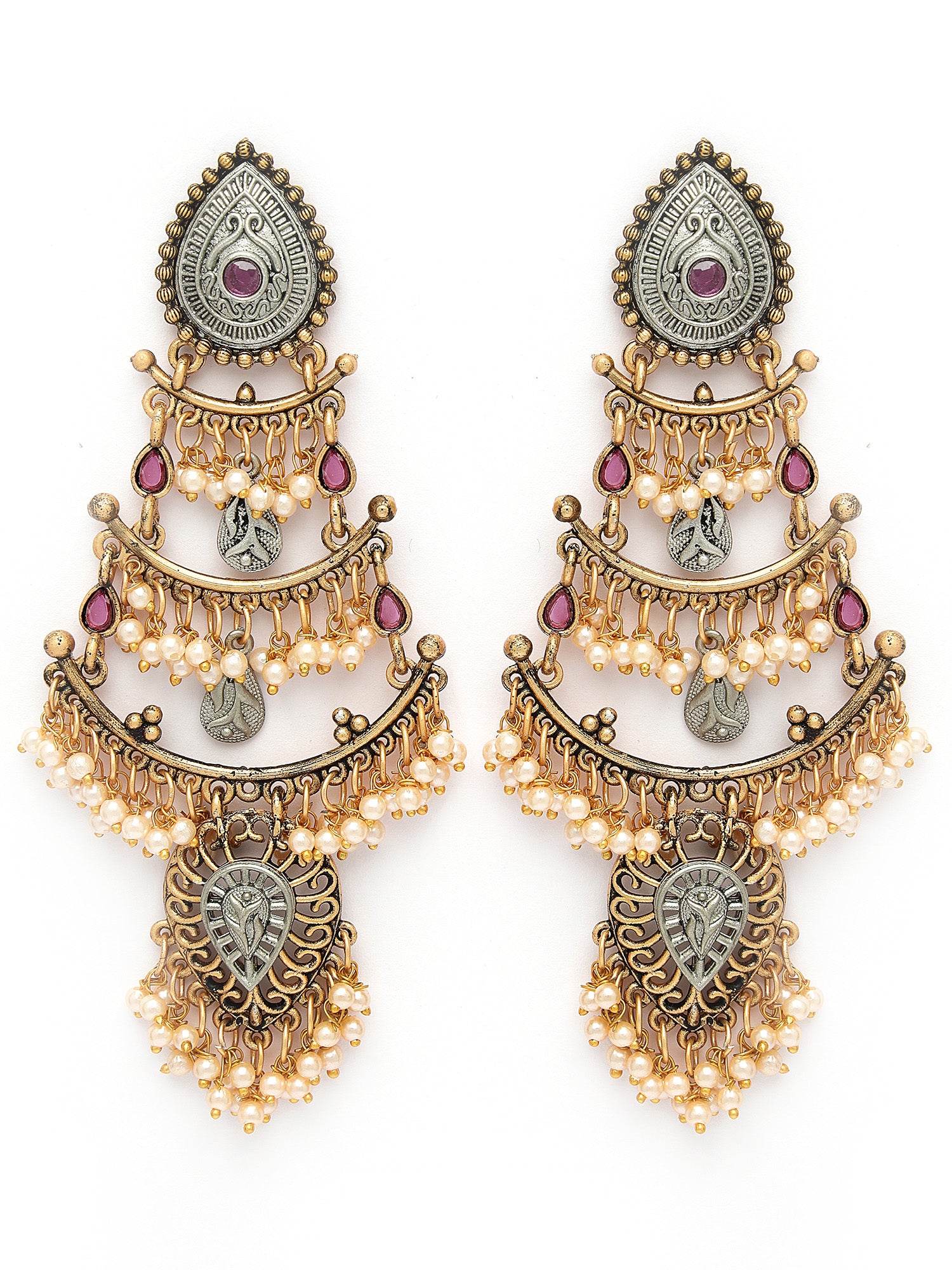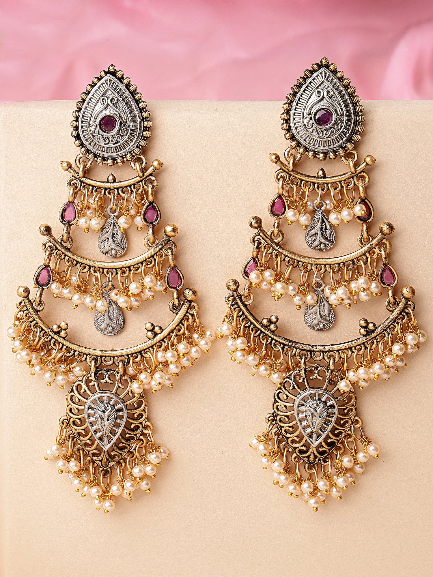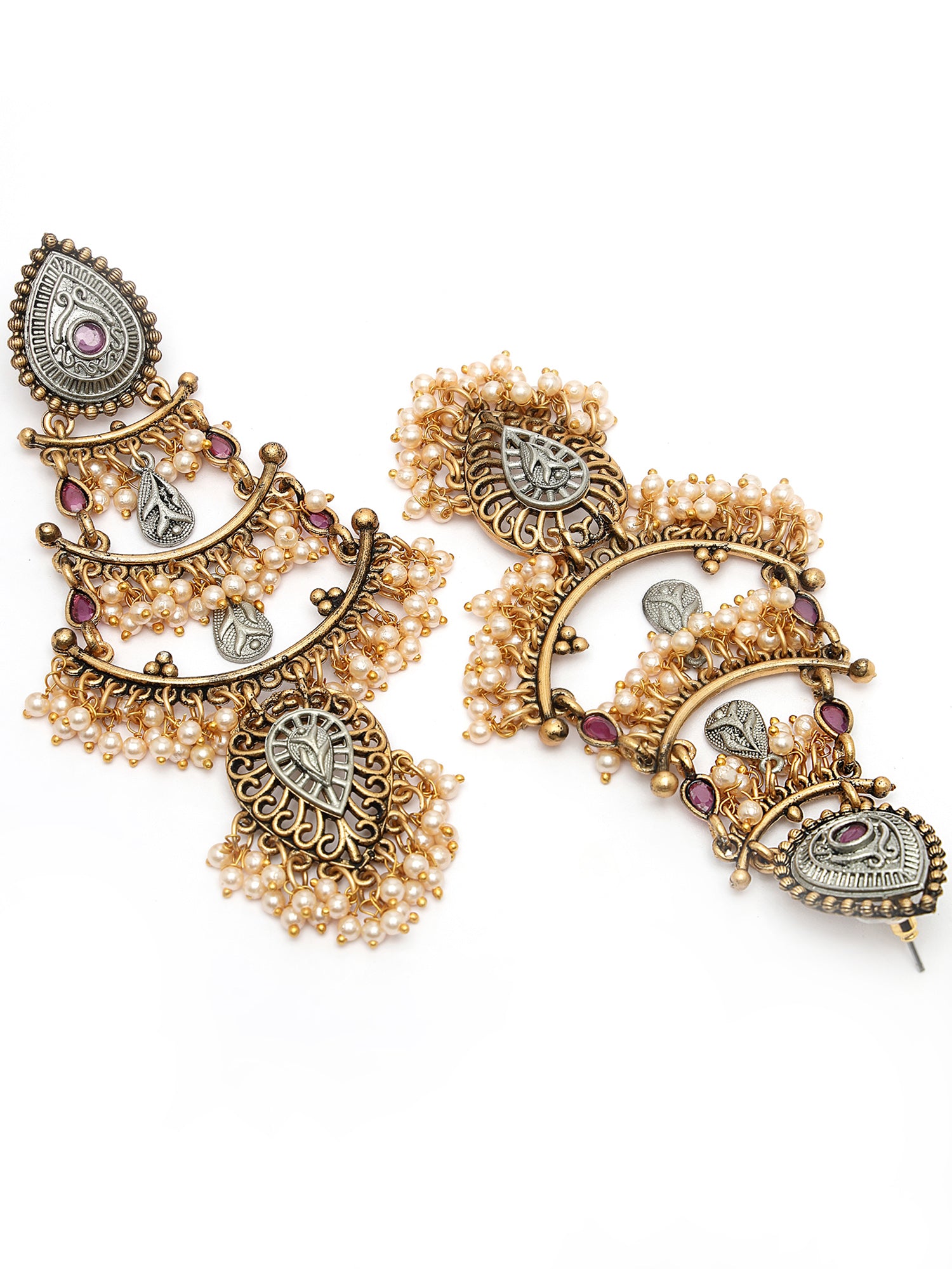 Karatcart Elegant Gold Plated Long Oxidised Dangler Earrings for Women