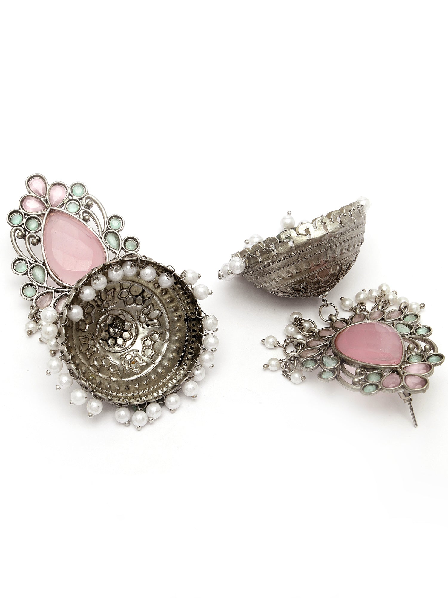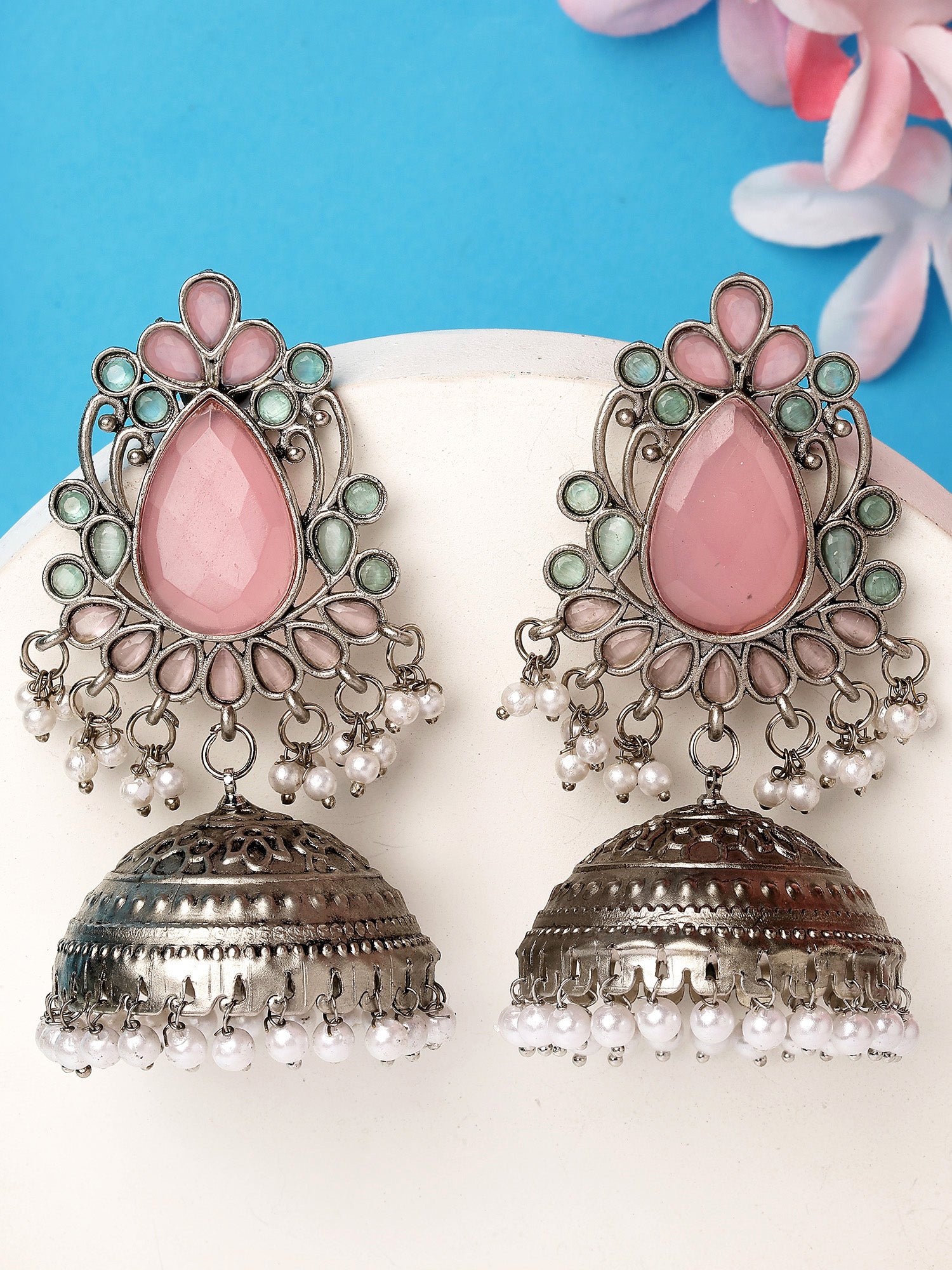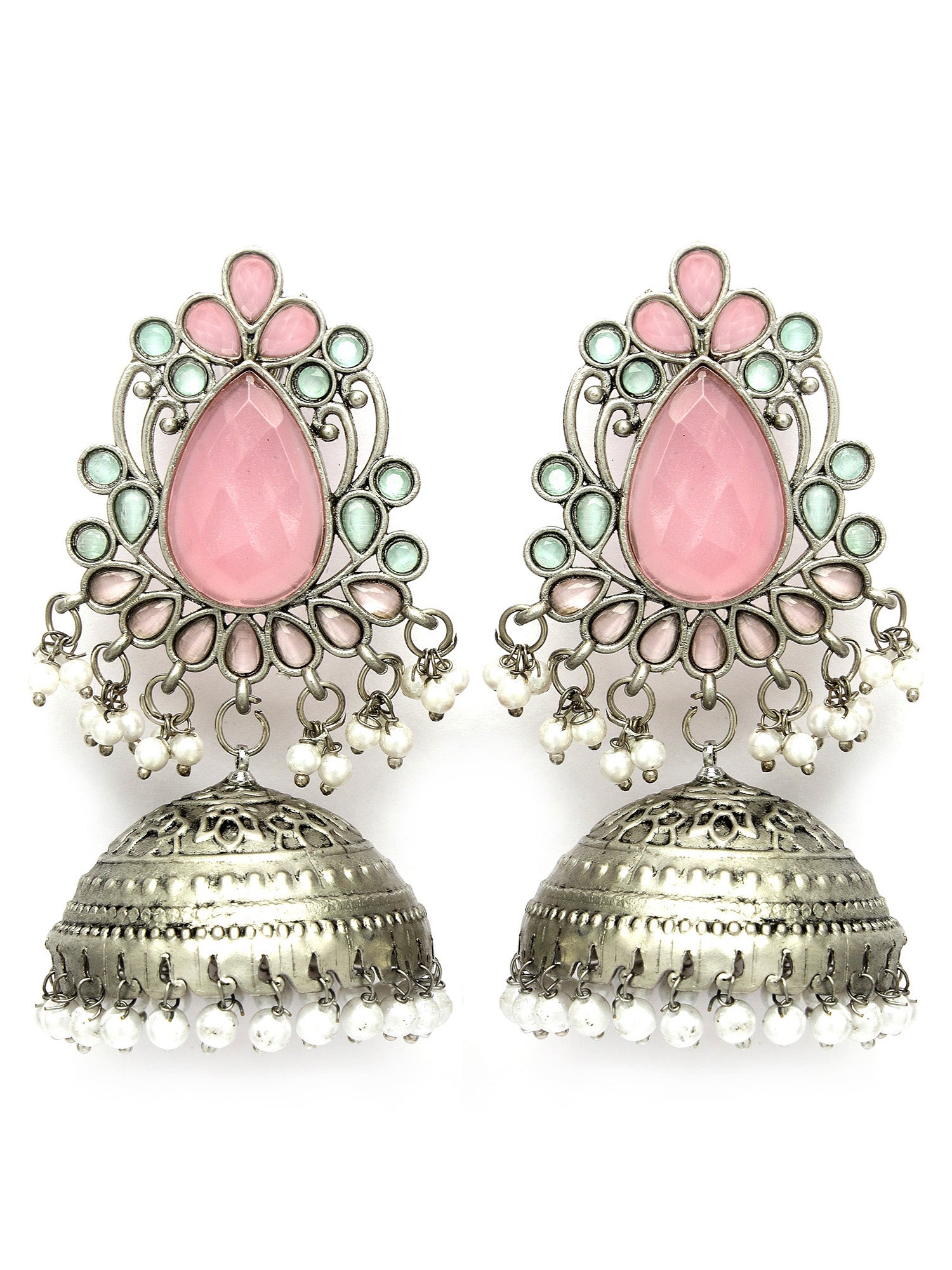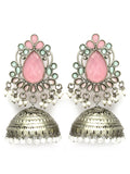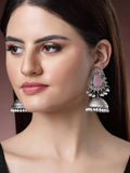 Karatcart Oxodised Silver Pink Stone Dome Jhmki Earrings for Women