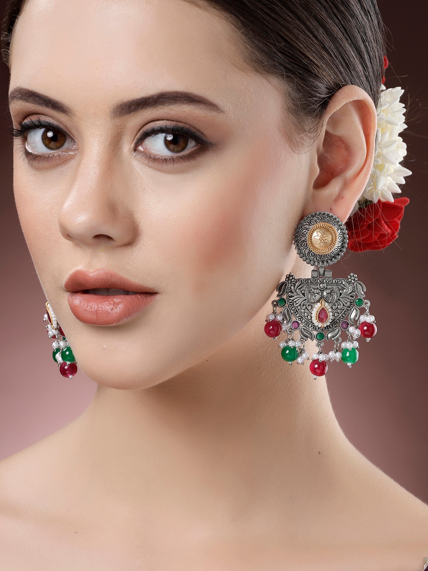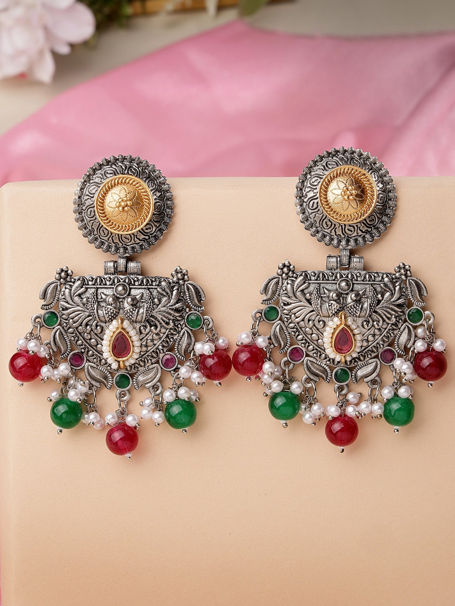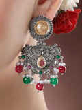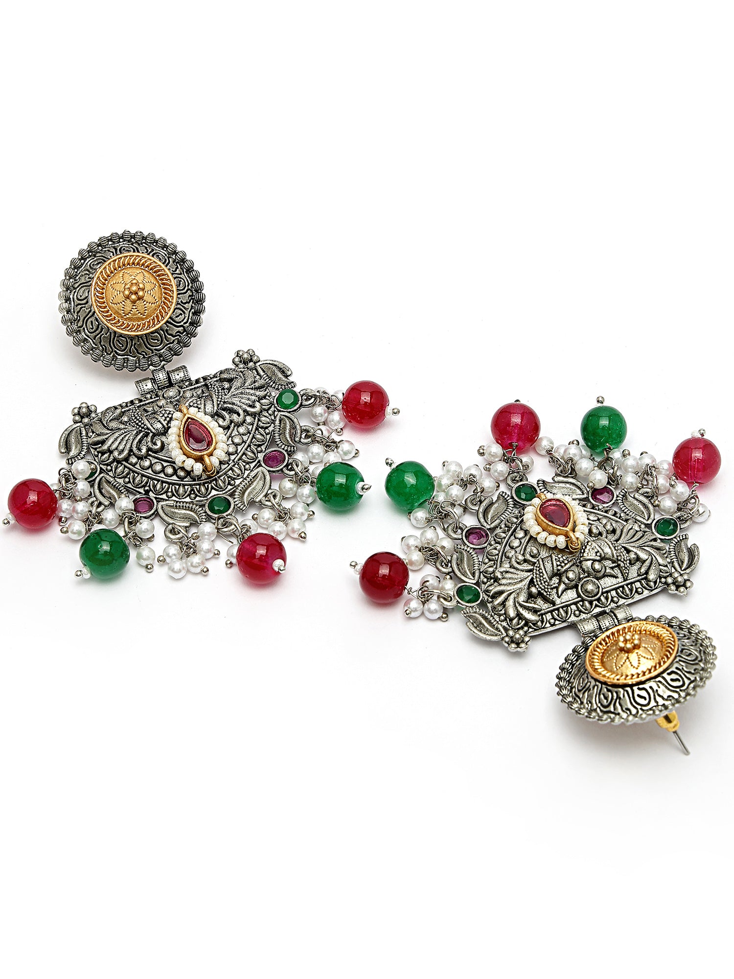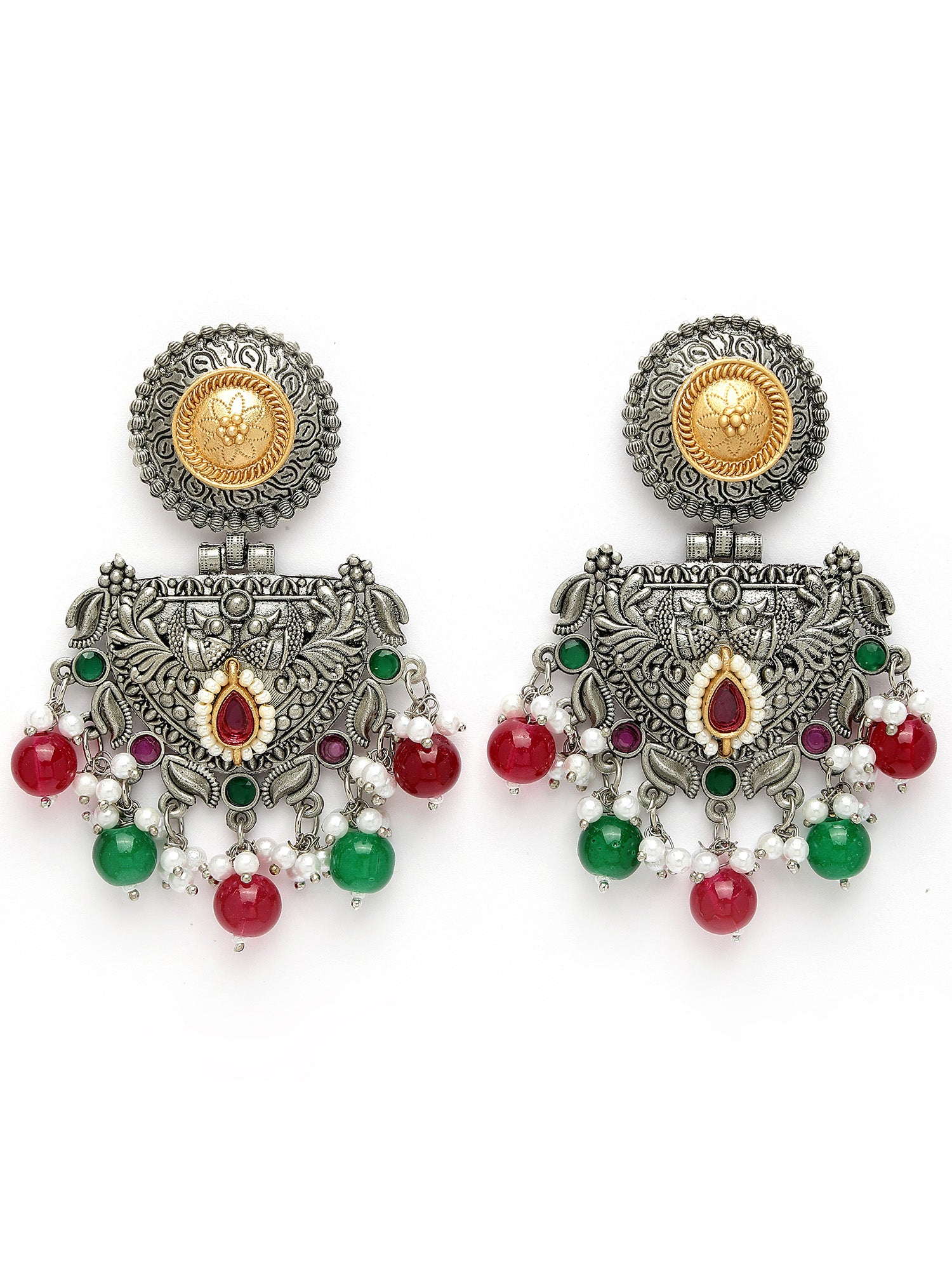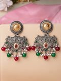 Karatcart Oxidised Silver and Gold Plated Red and Green Beads Dangler Earrings for Women