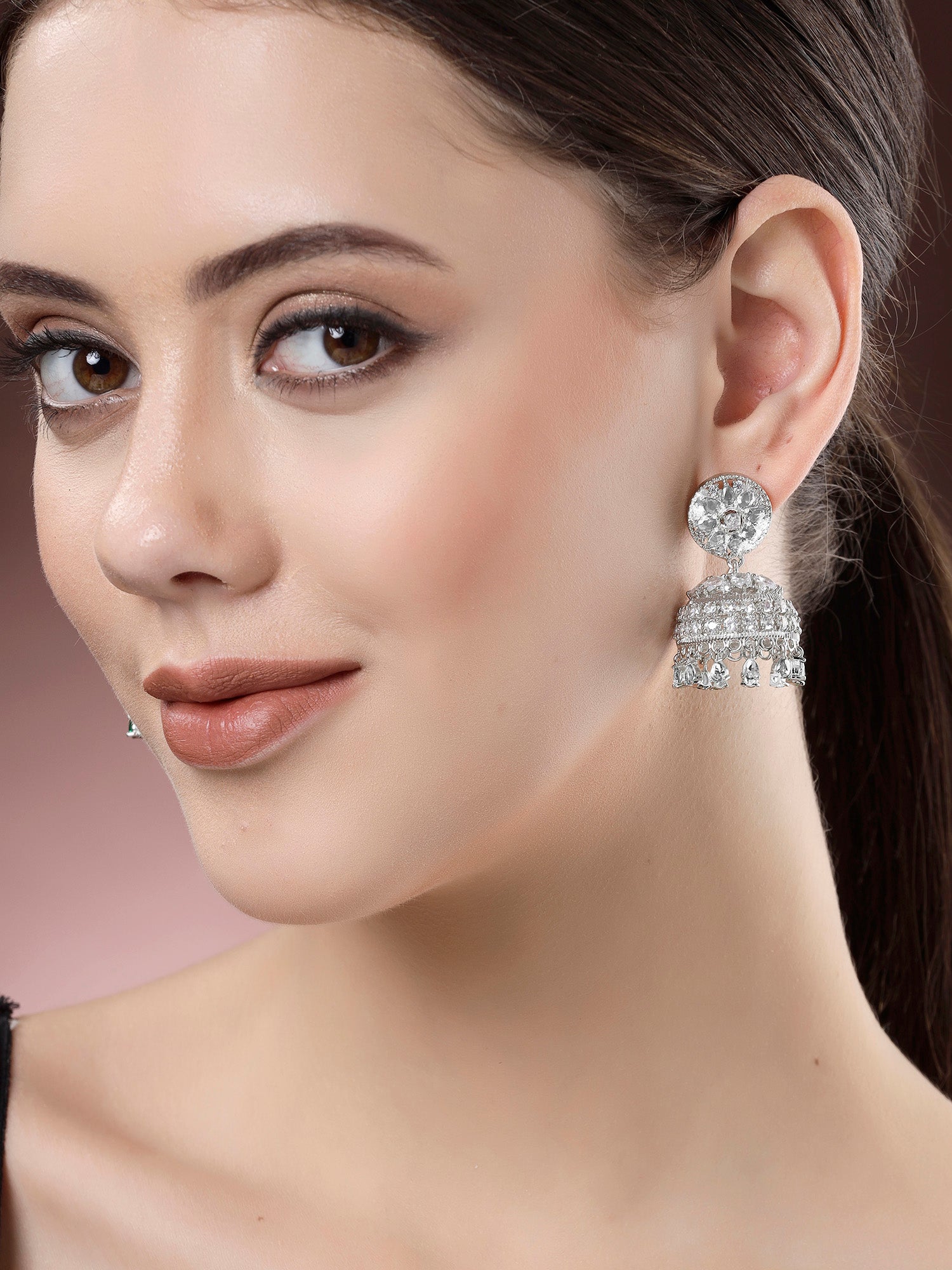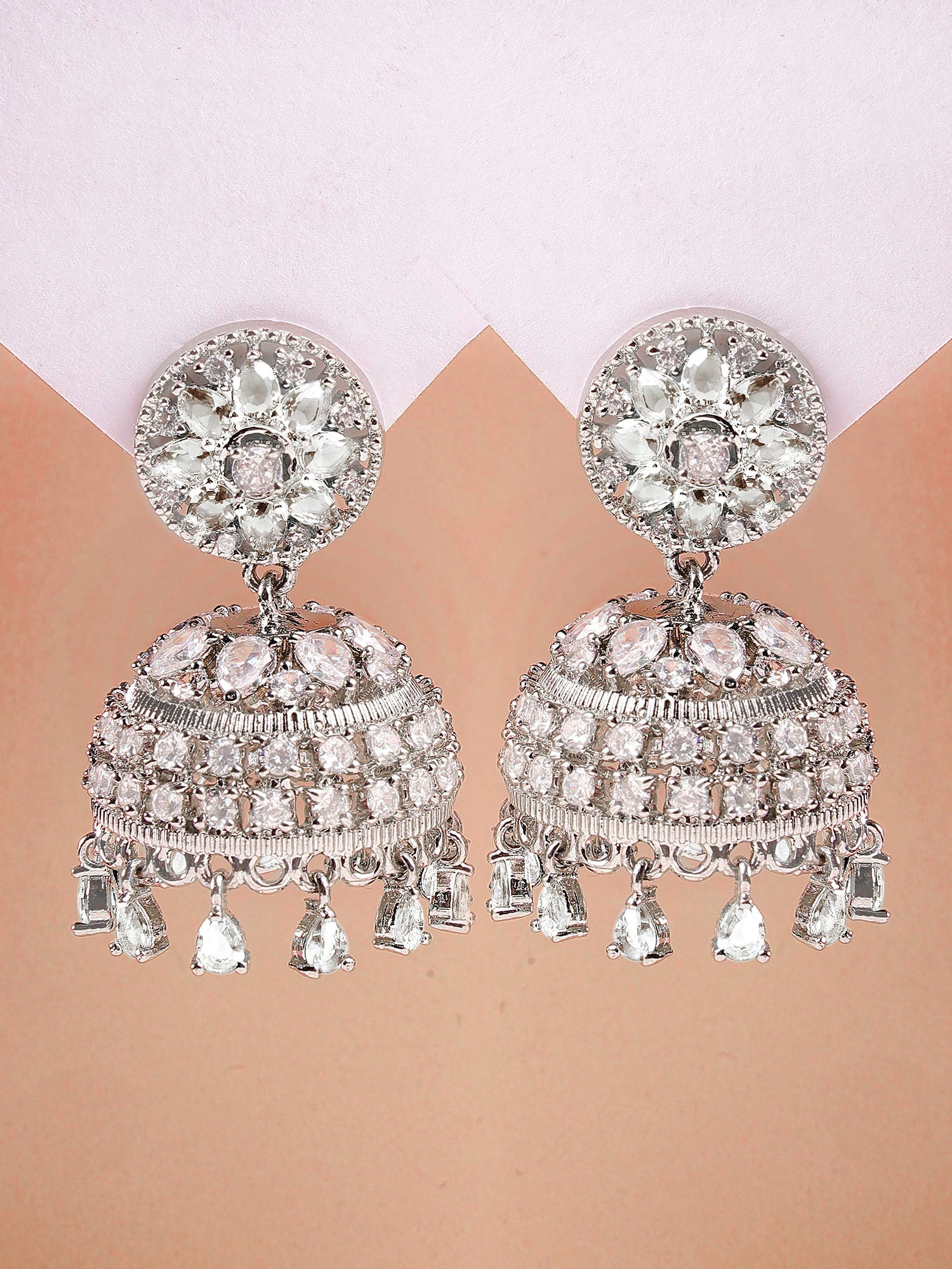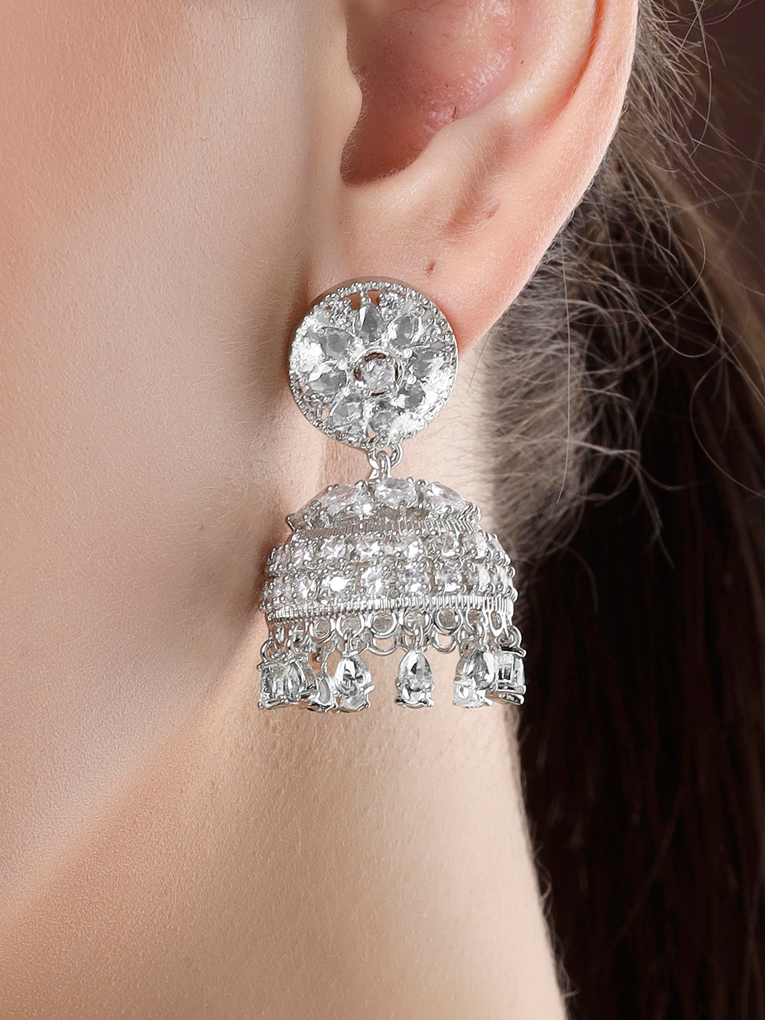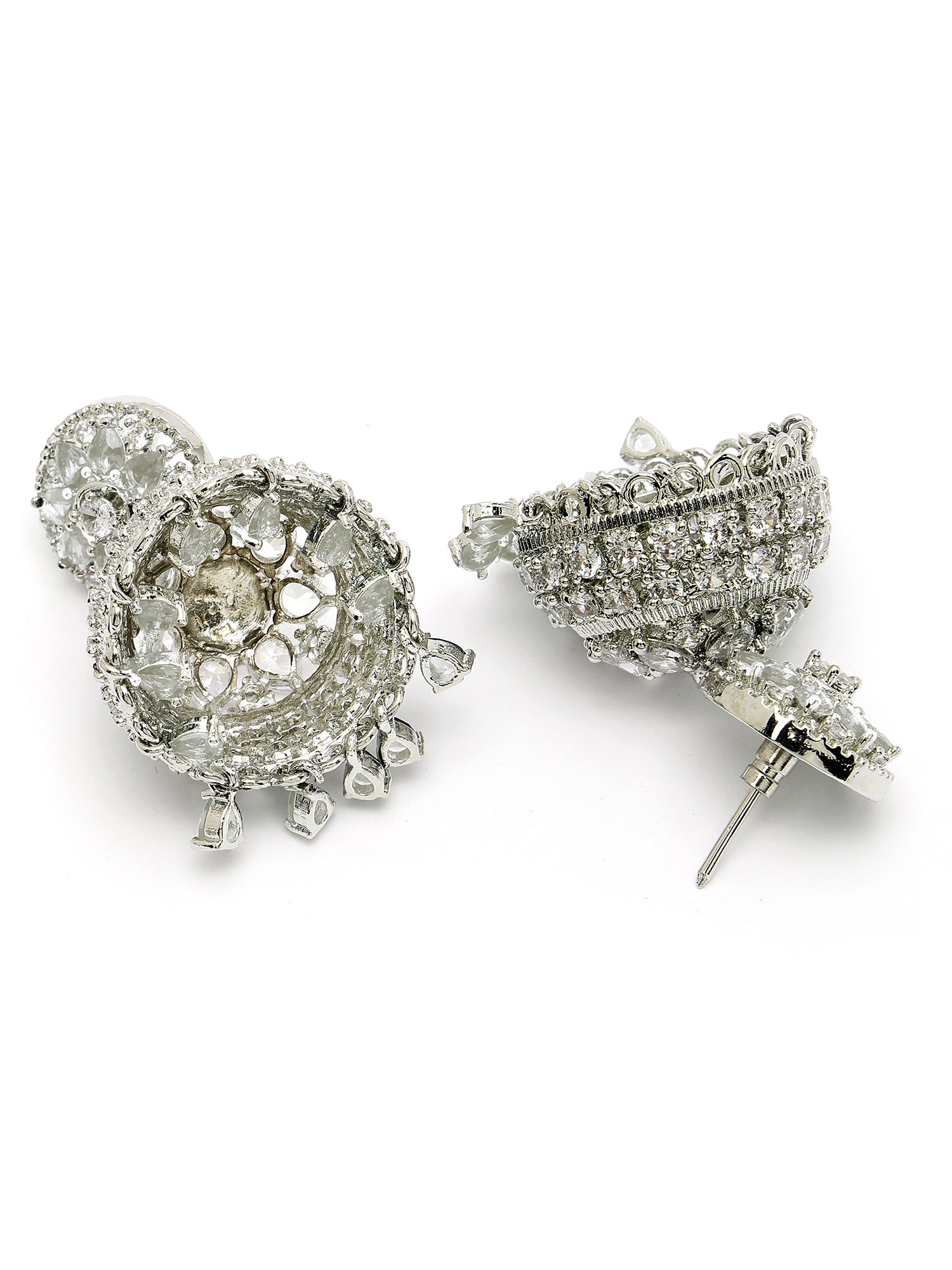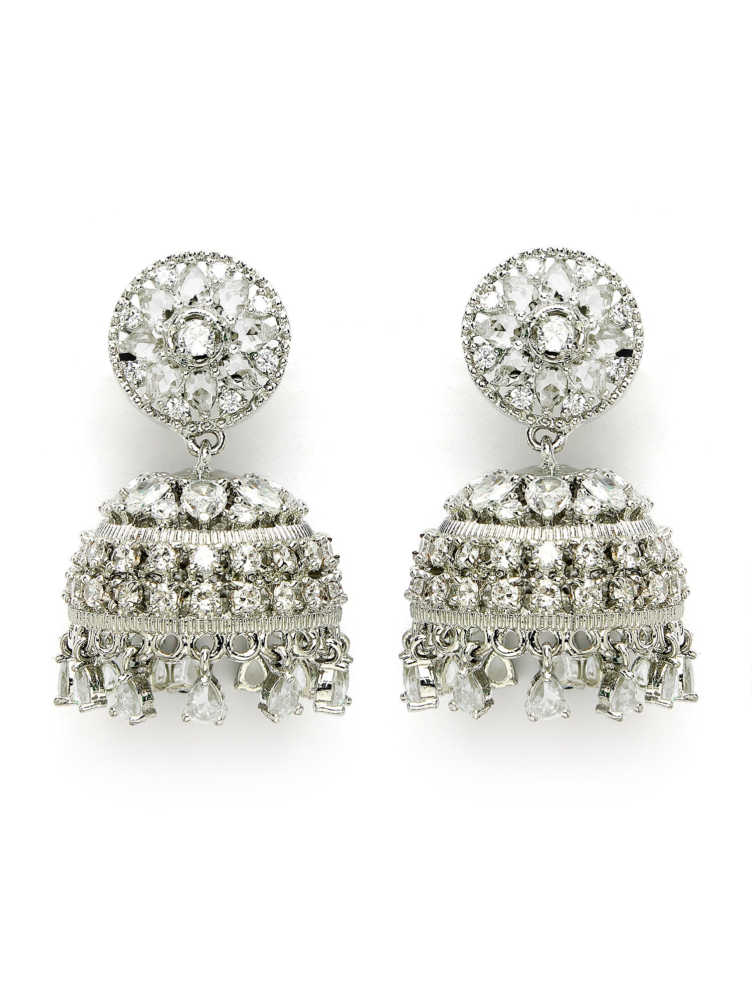 Karatcart Sparkling Silver Plated American Diamond Jhumki Earrings for Women