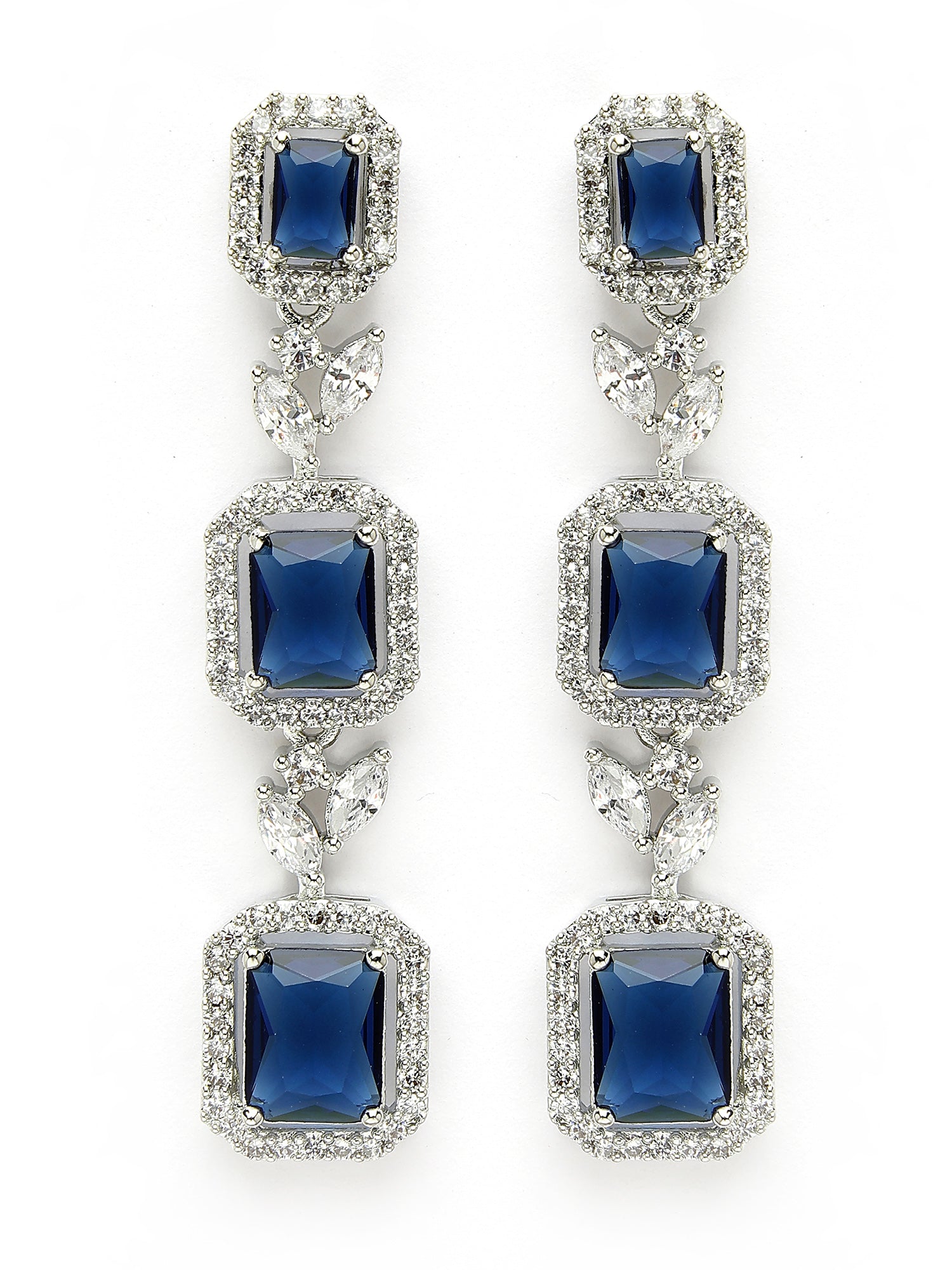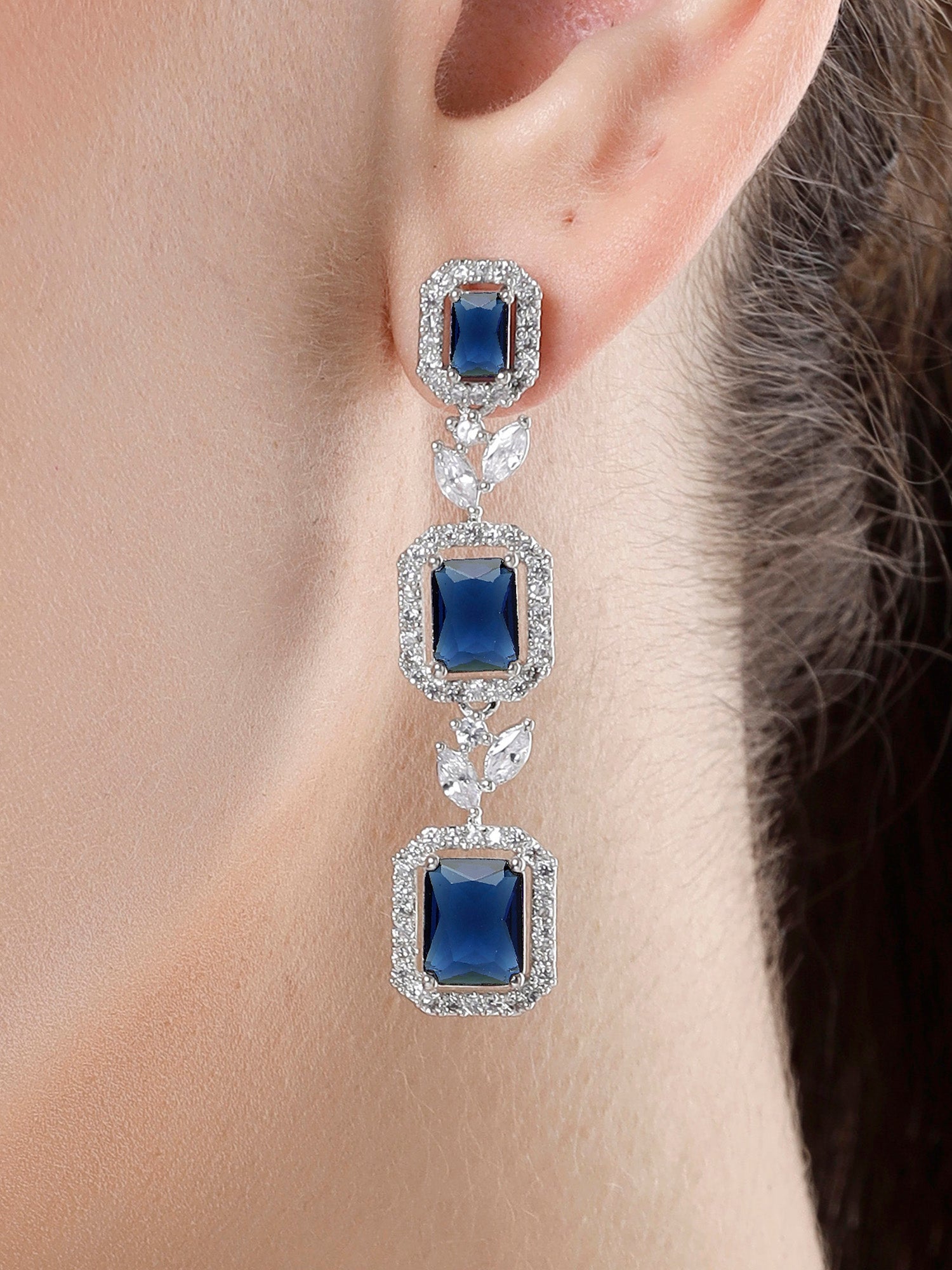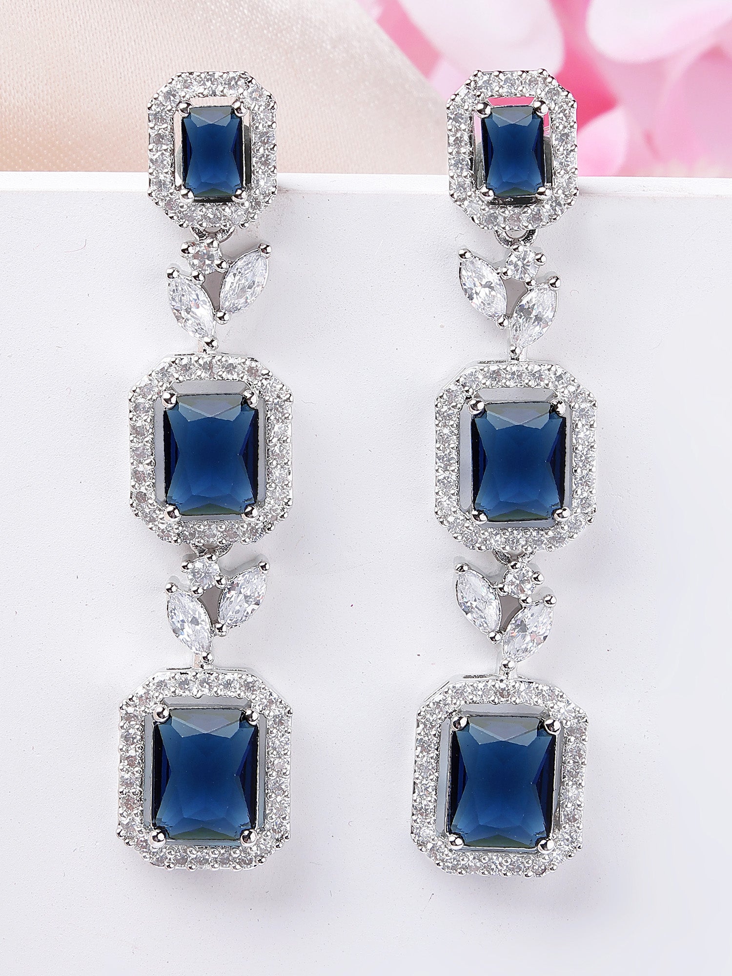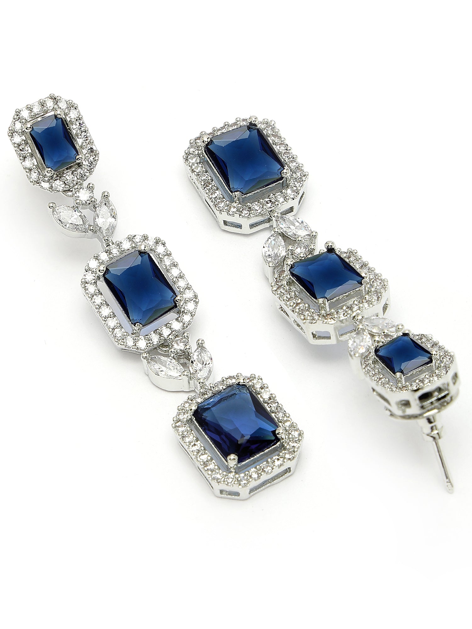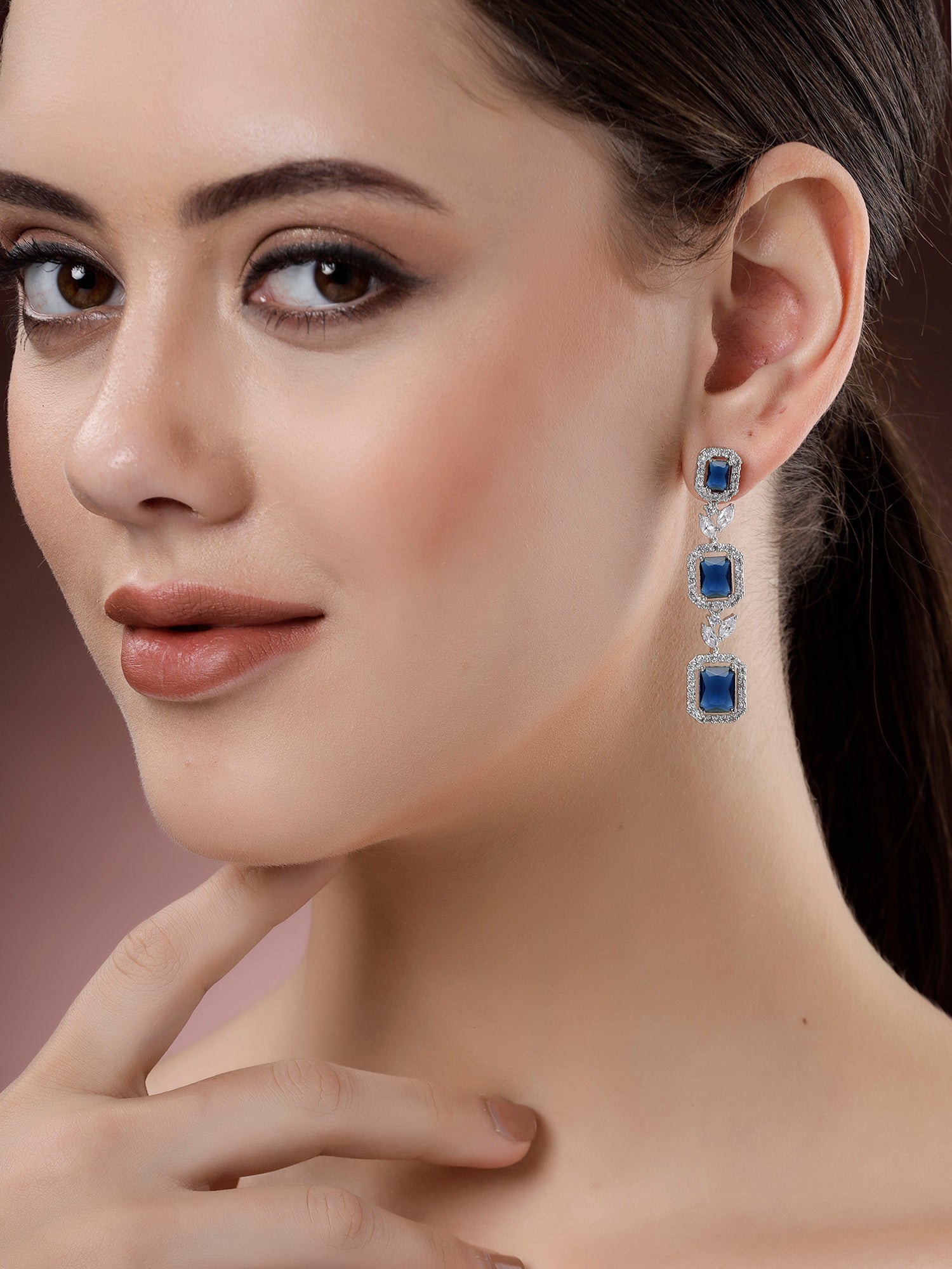 Karatcart Elegant Blue and White American Diamond Drop Earrings