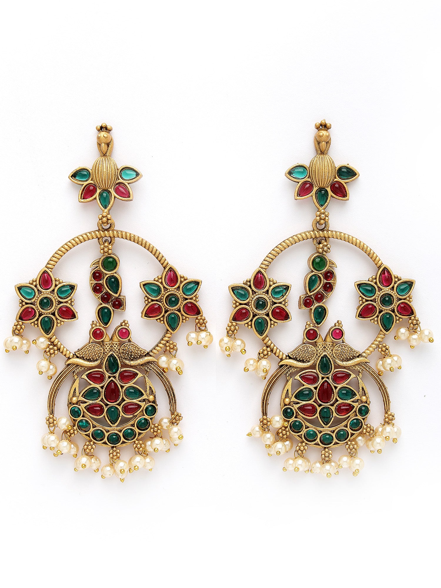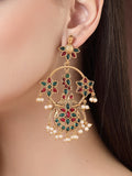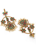 Karatcart Gold Plated Floral Design Red and Green Kundan Dangler Earrings for Women