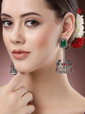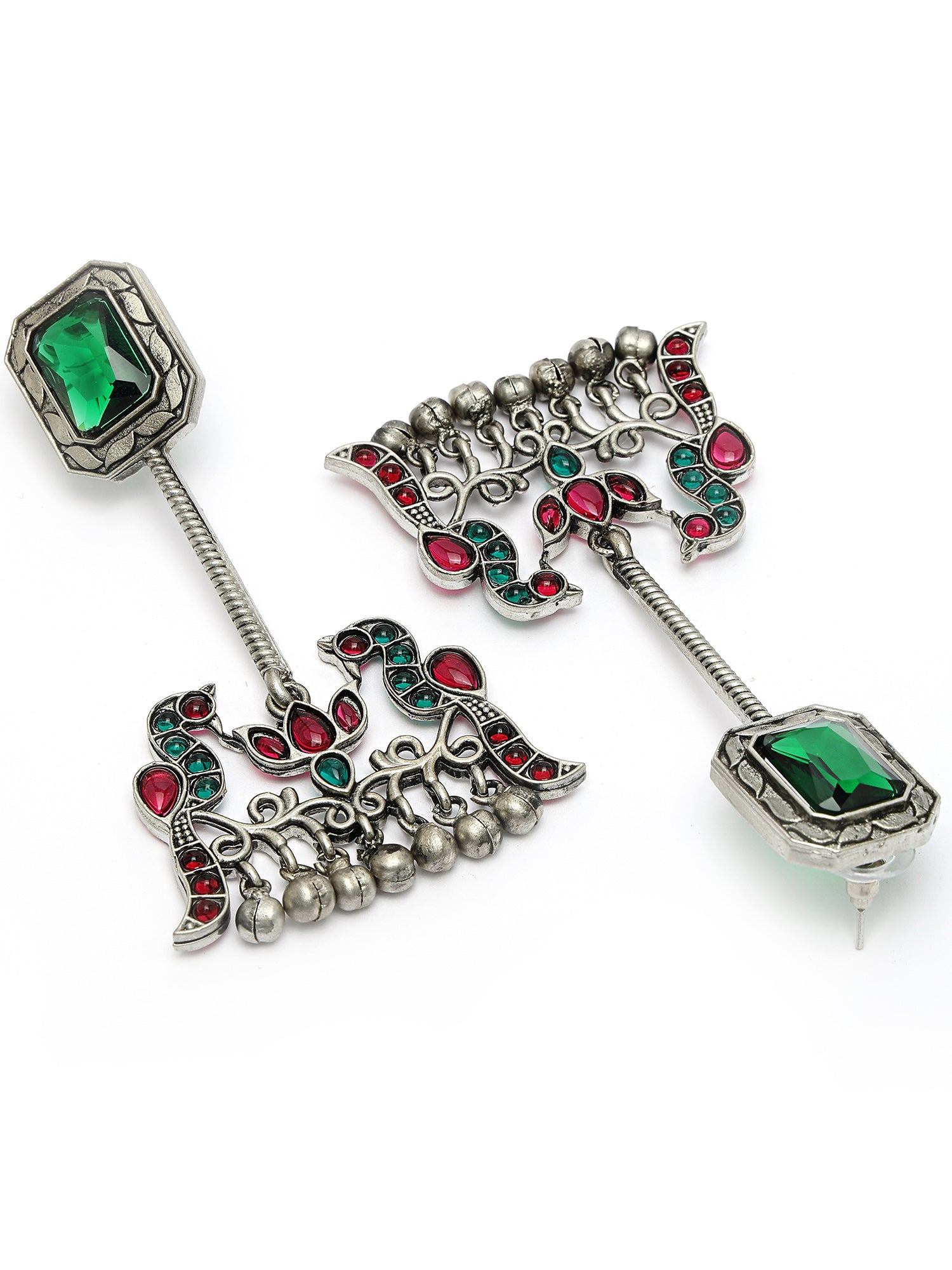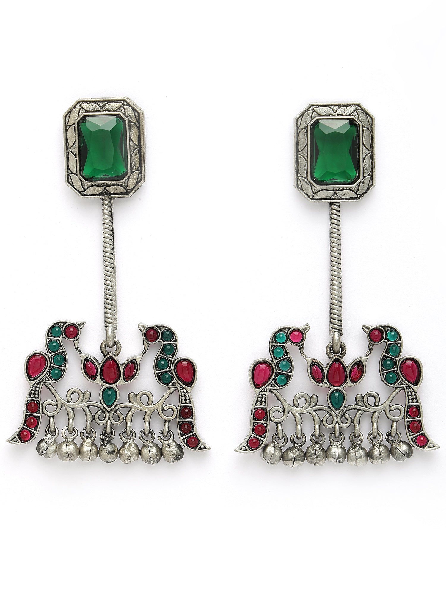 Karatcart Oxidised Silver Green Stone Peacock Design Dangler Earrings for Women