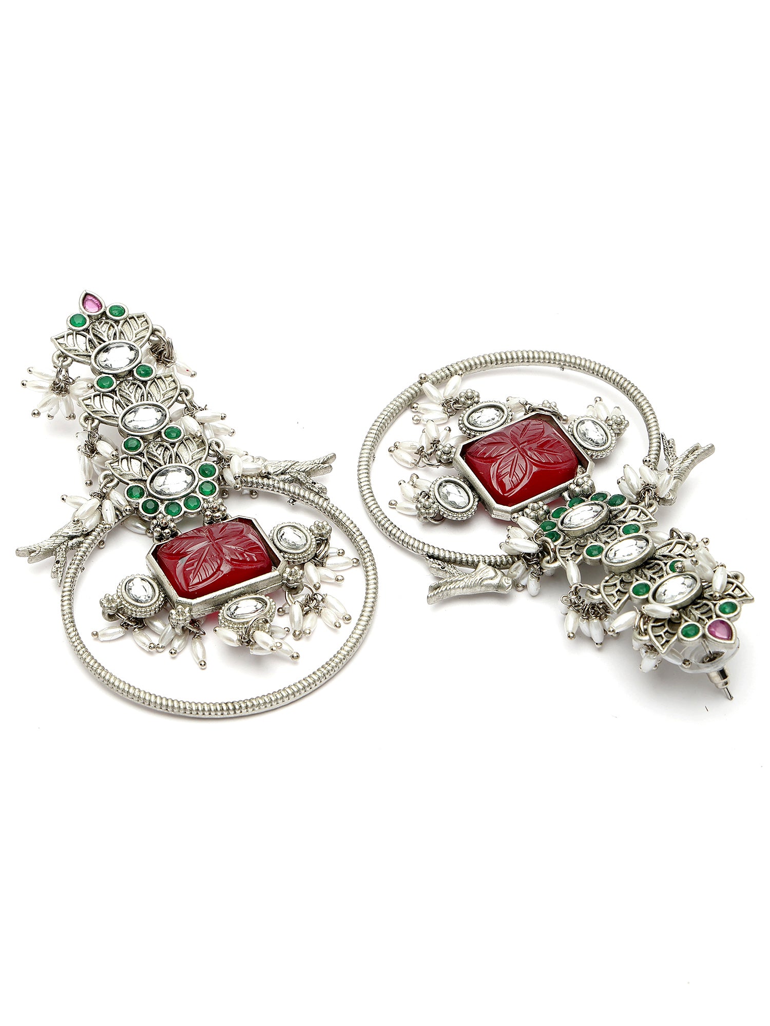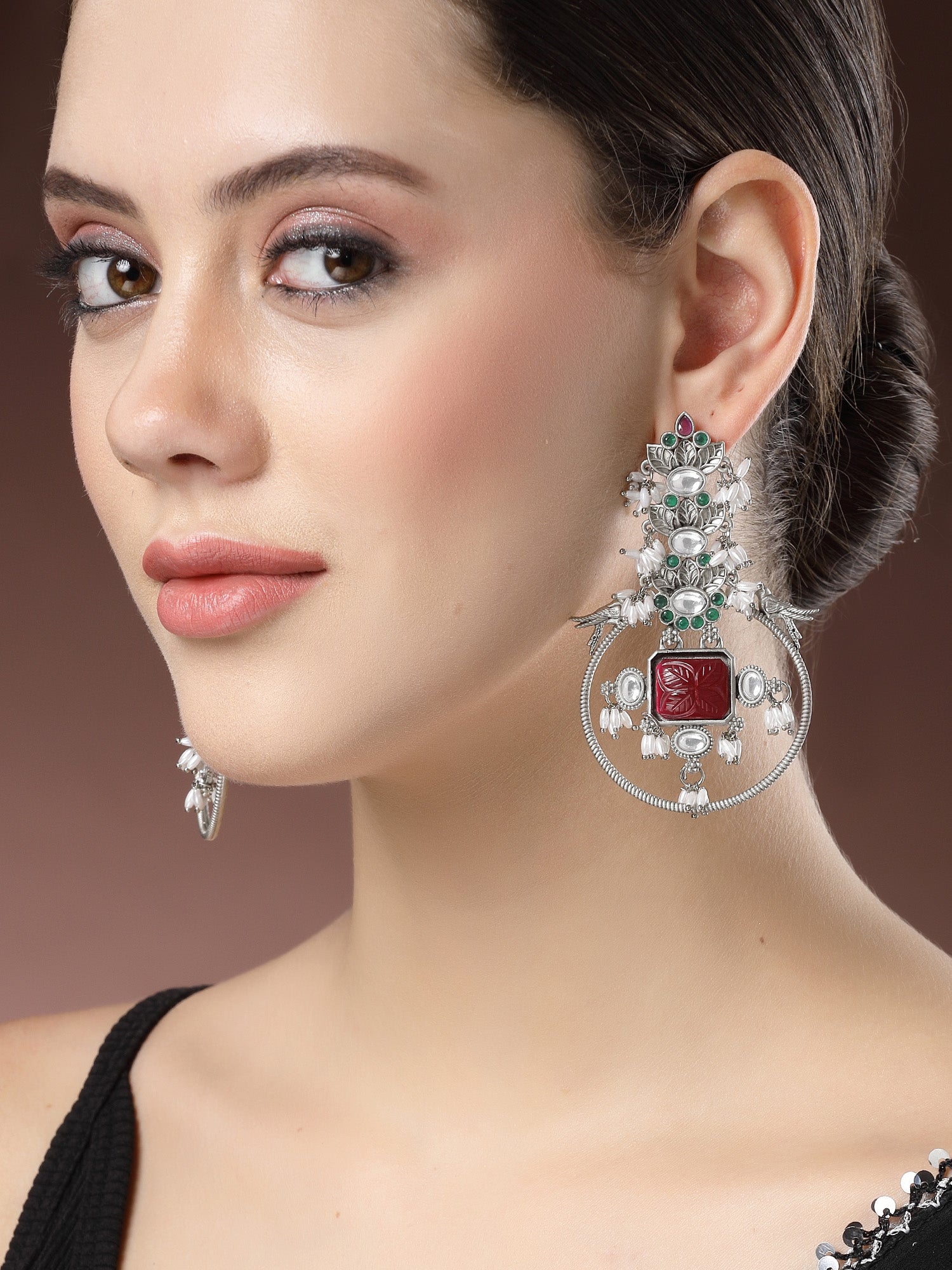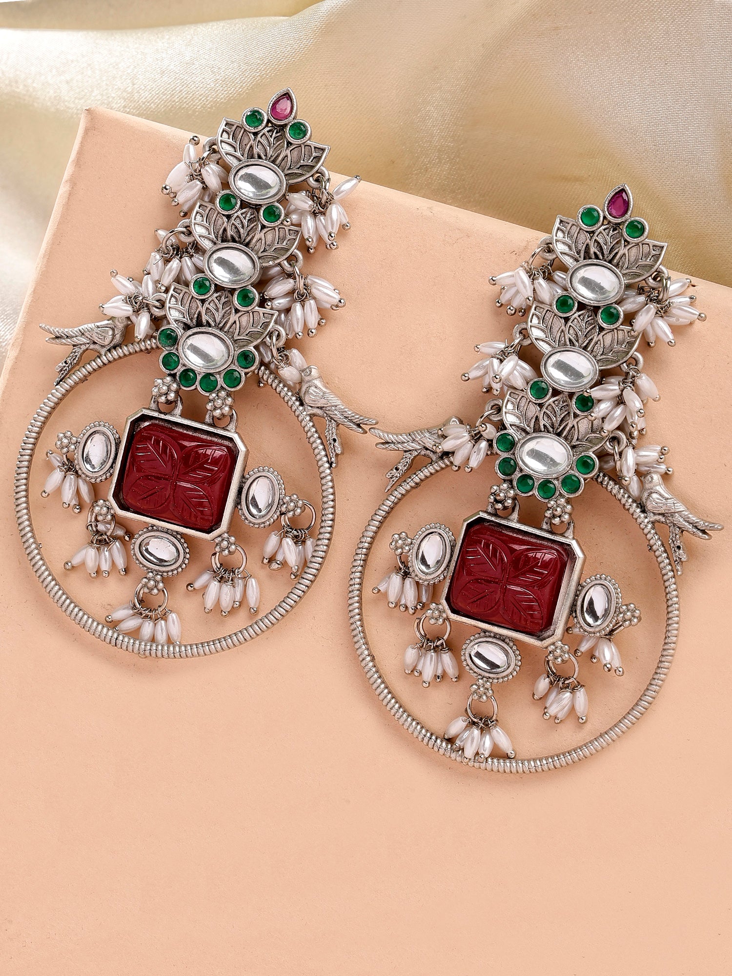 Karatcart Oxidised Silver Red Carved Stone Dangler Earrings for Women