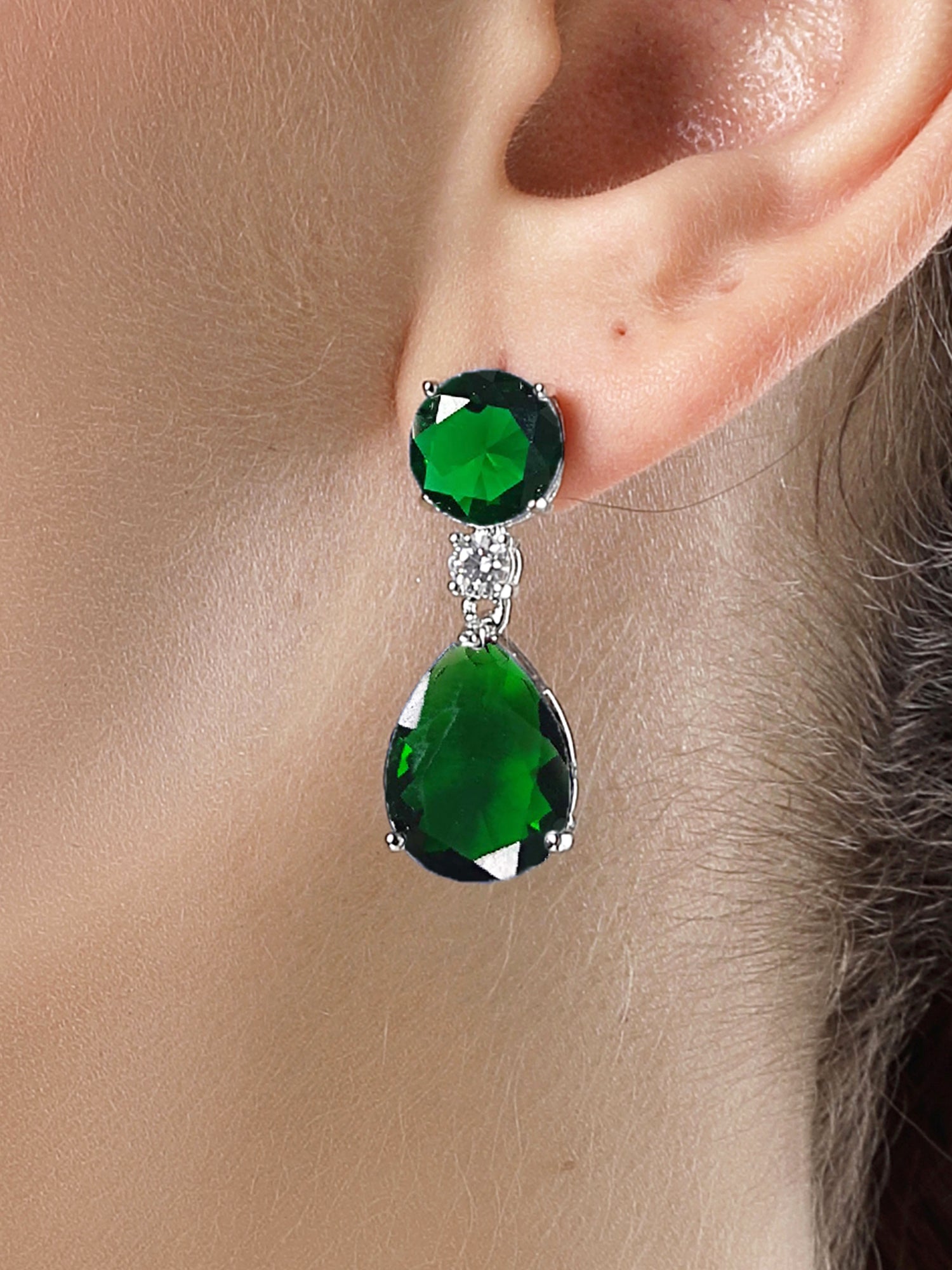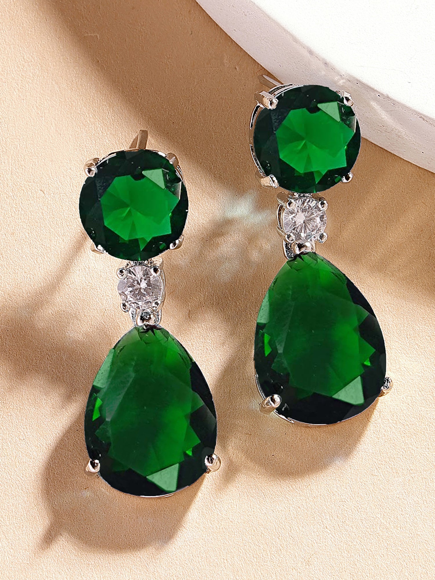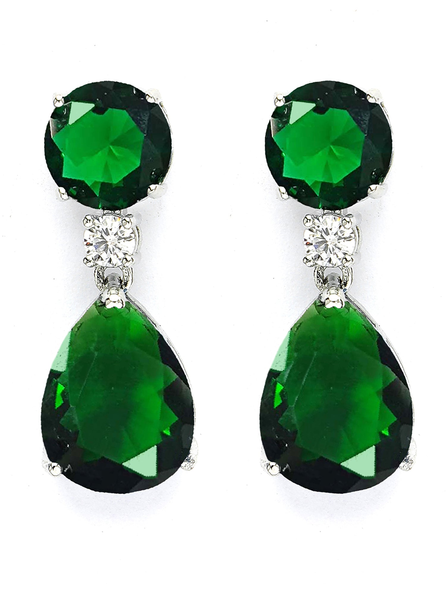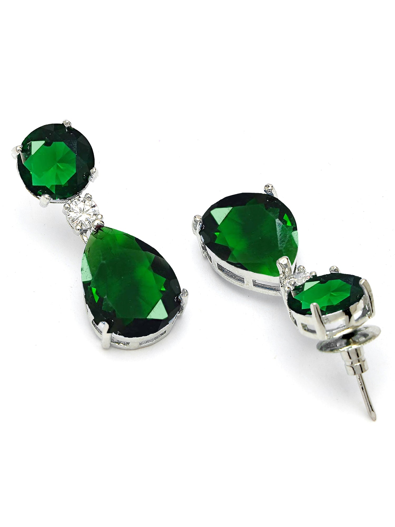 Karatcart Luxurious Green American Diamond Stone Drop Earrings for Women