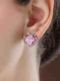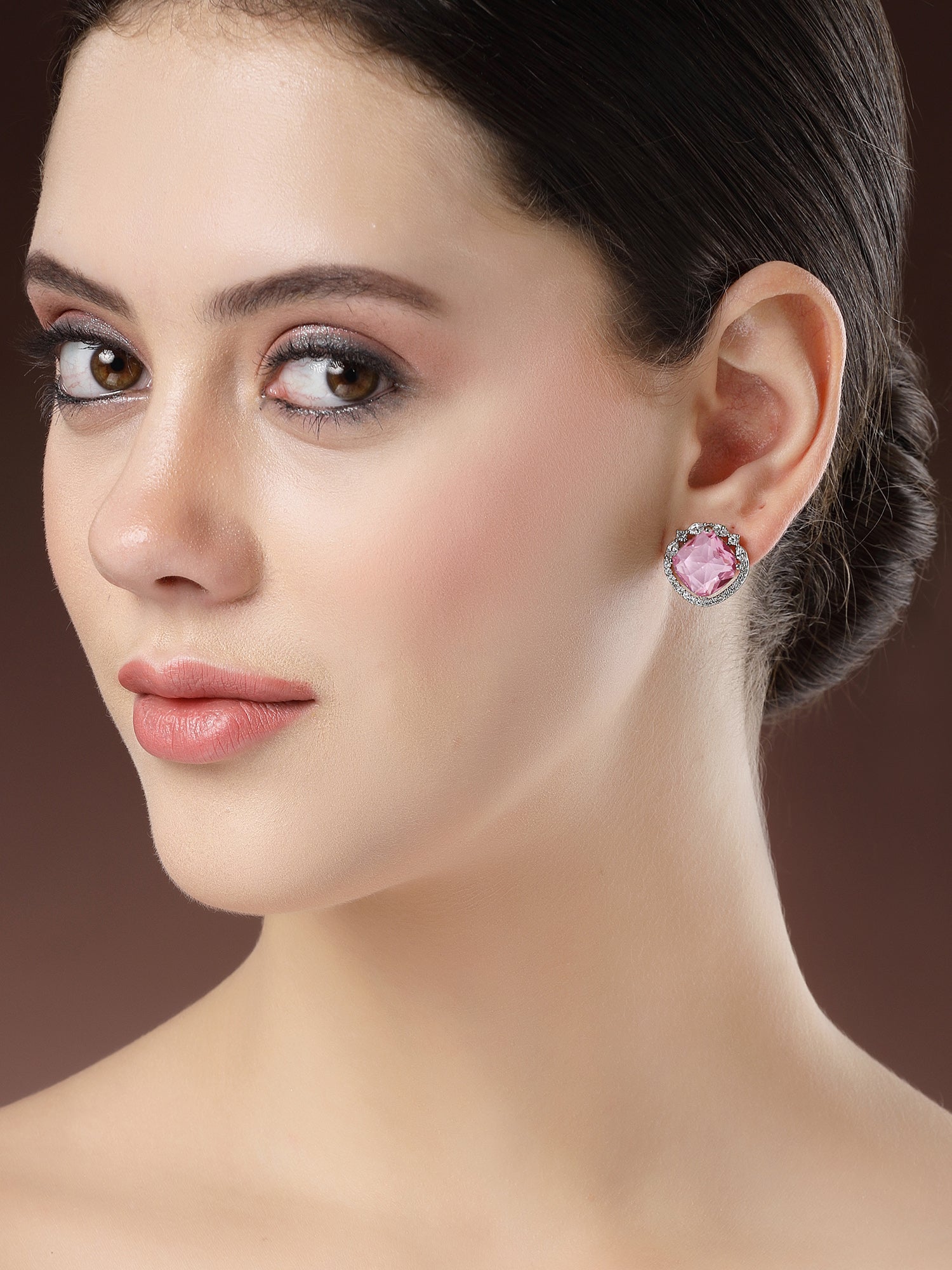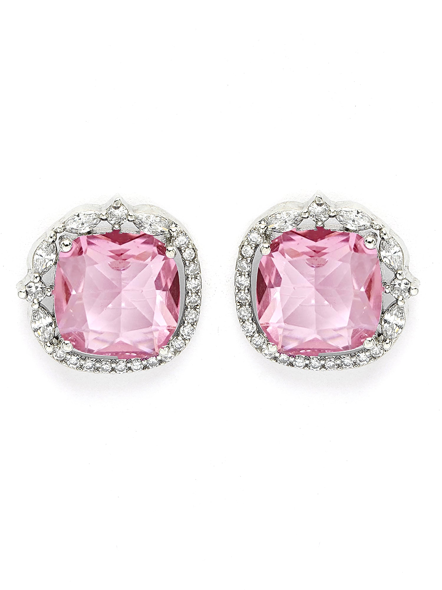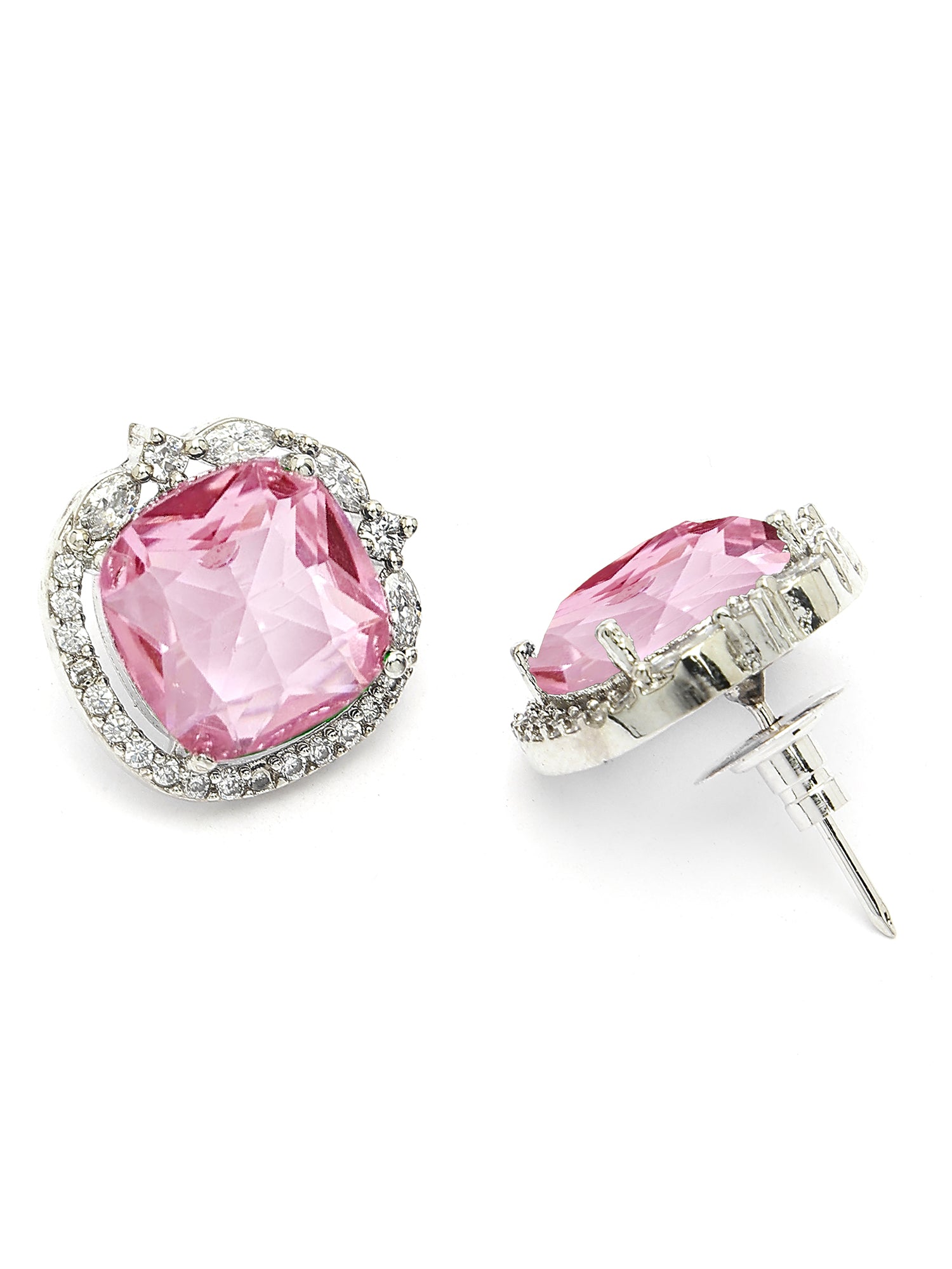 Karatcart Silver Tone Pink American Diamond Stud Earrings for Women