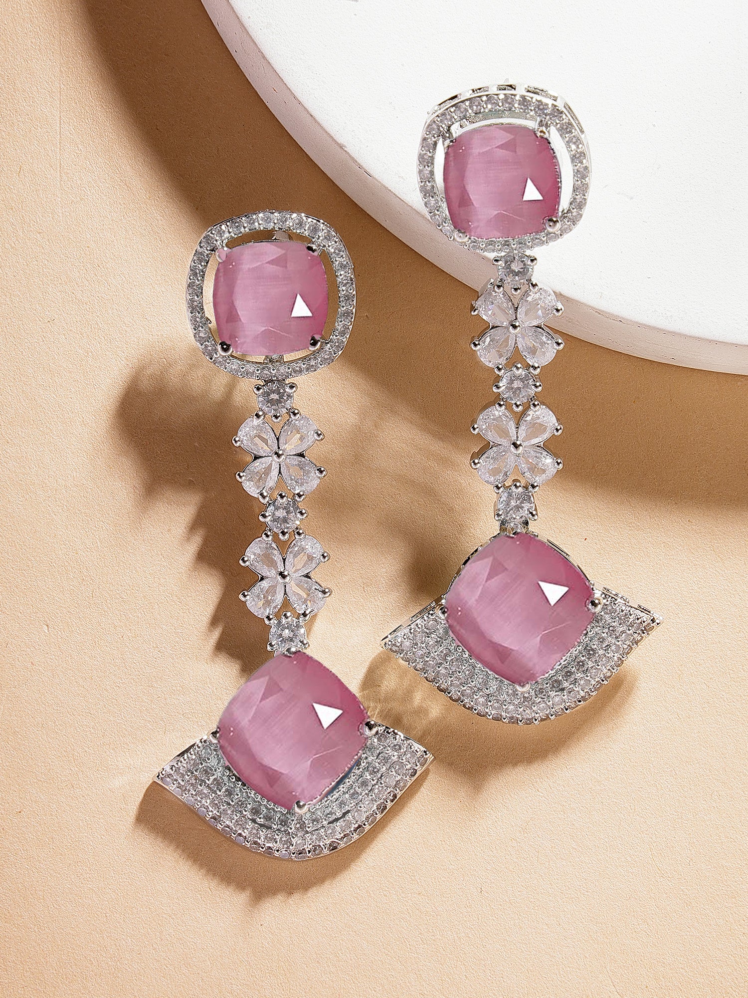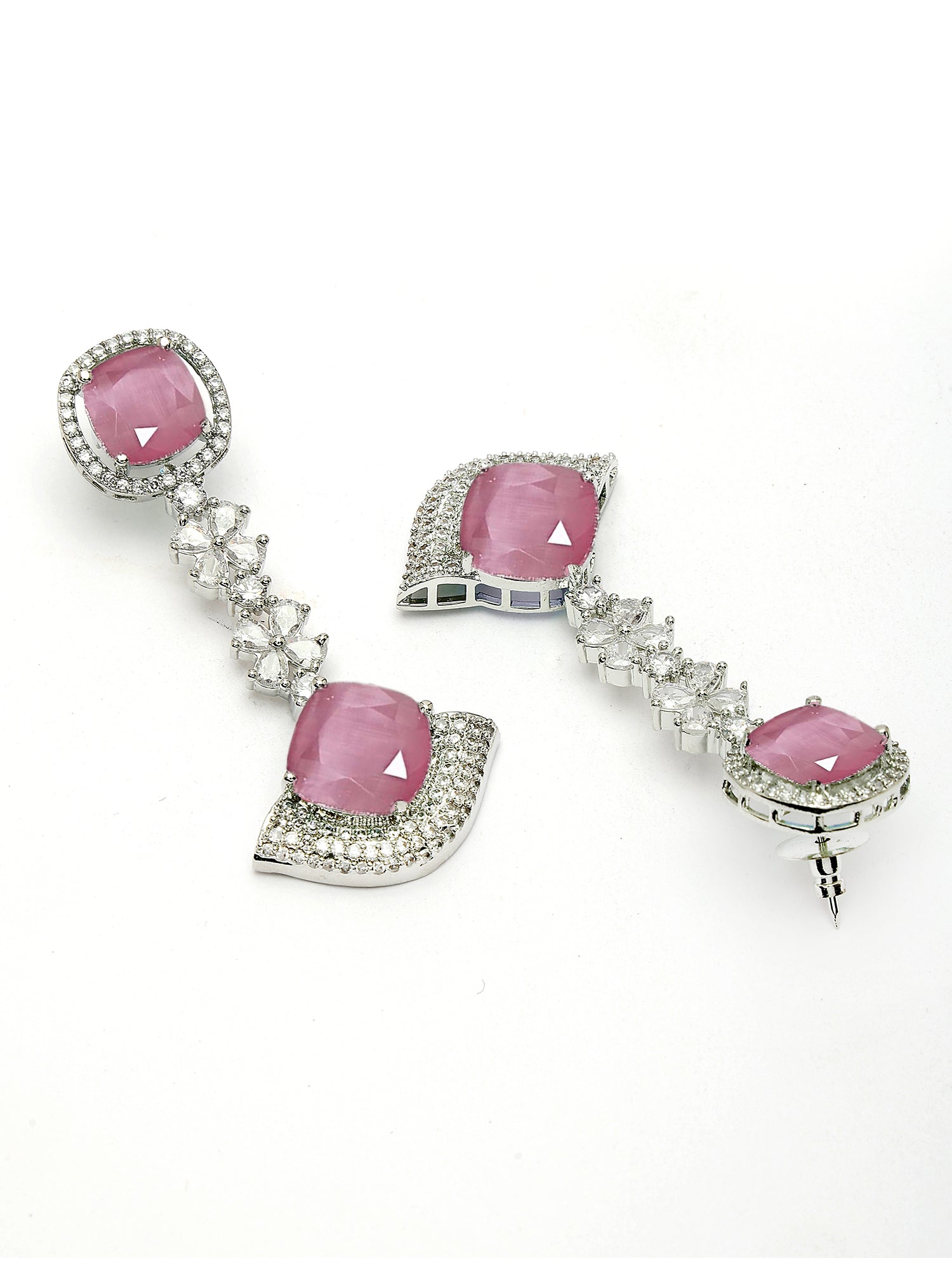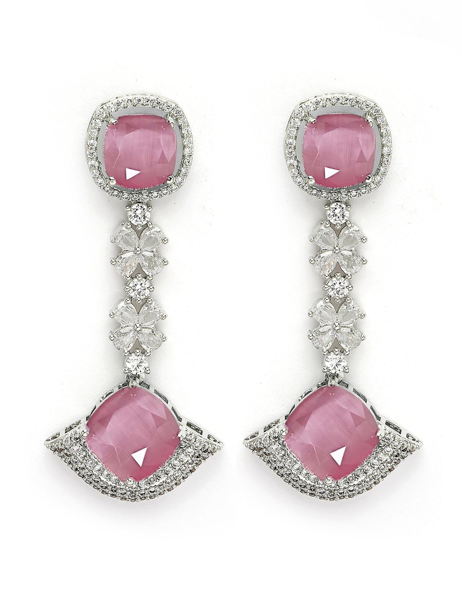 Karatcart Dazzling Pink American Diamond Stone Drop Earrings for Women
