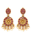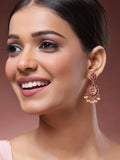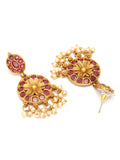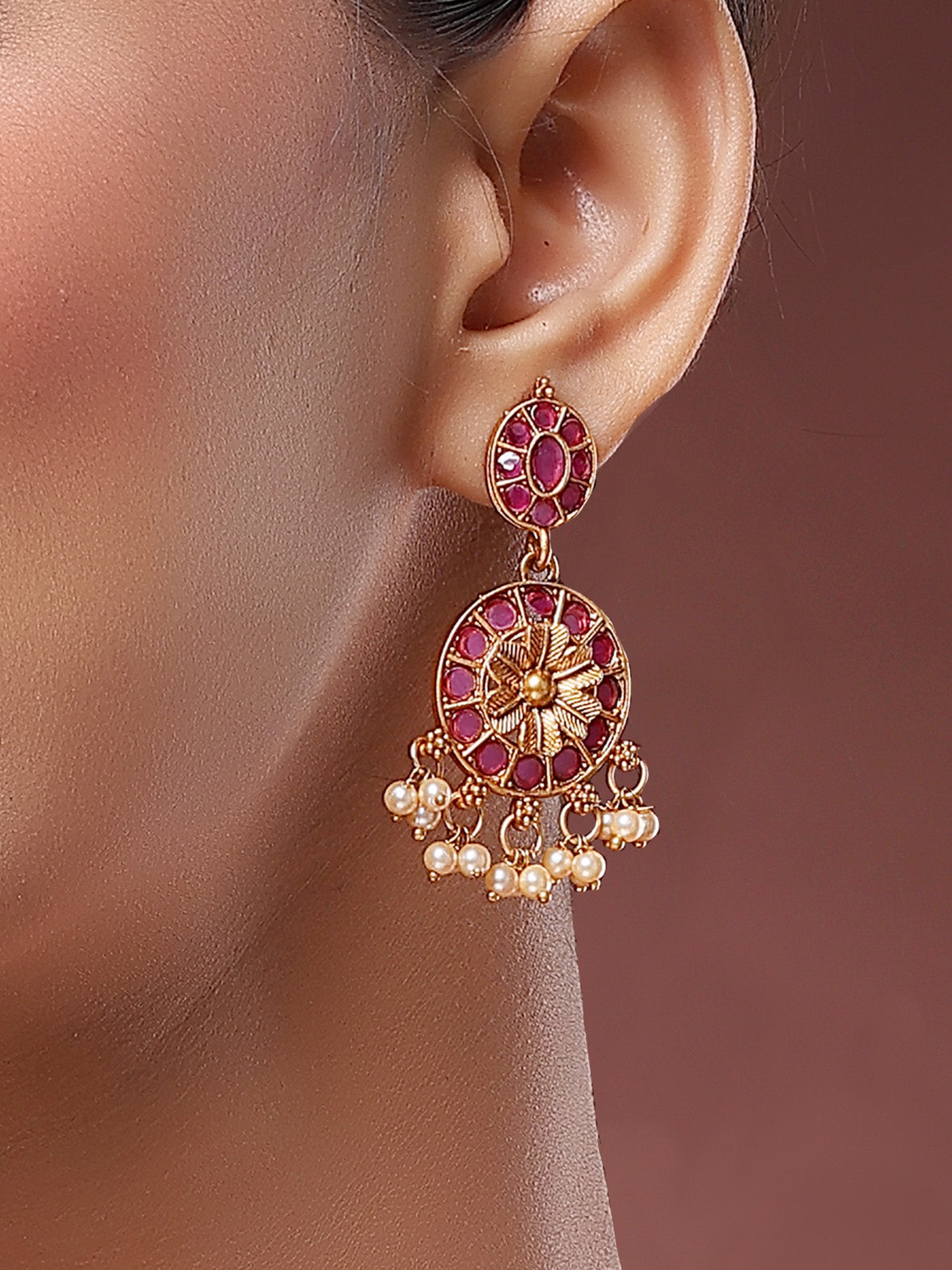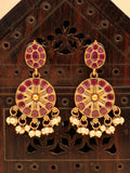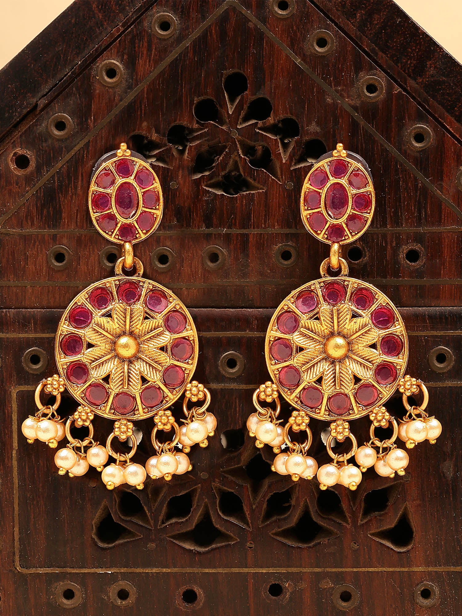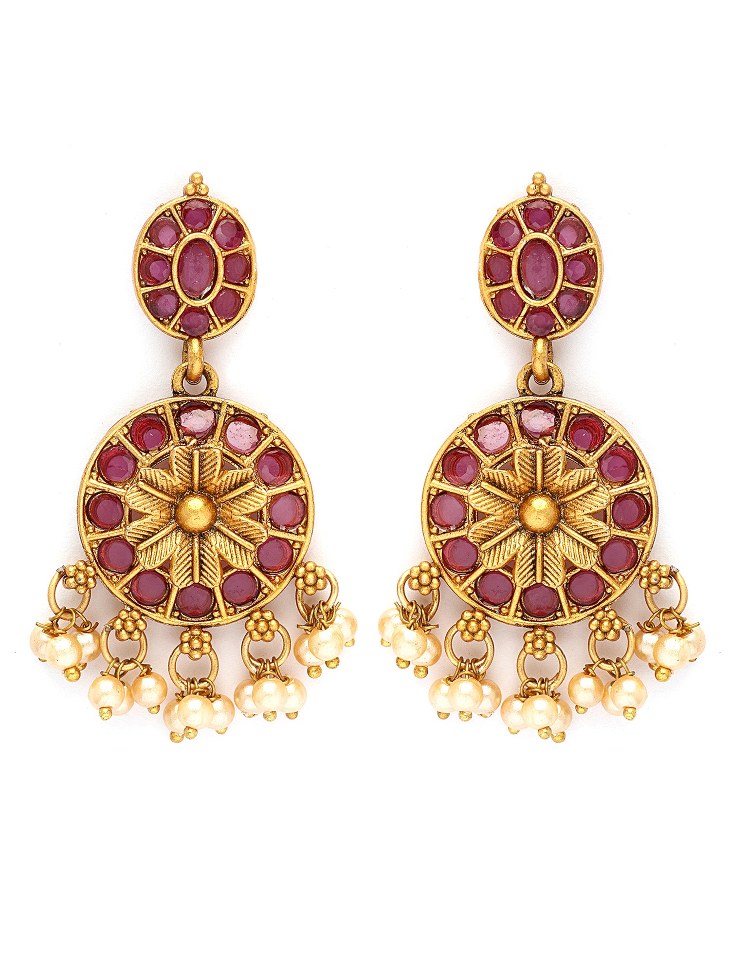 Karatcart Antique Gold Plated Red Tribal Drop Earrings for Women