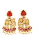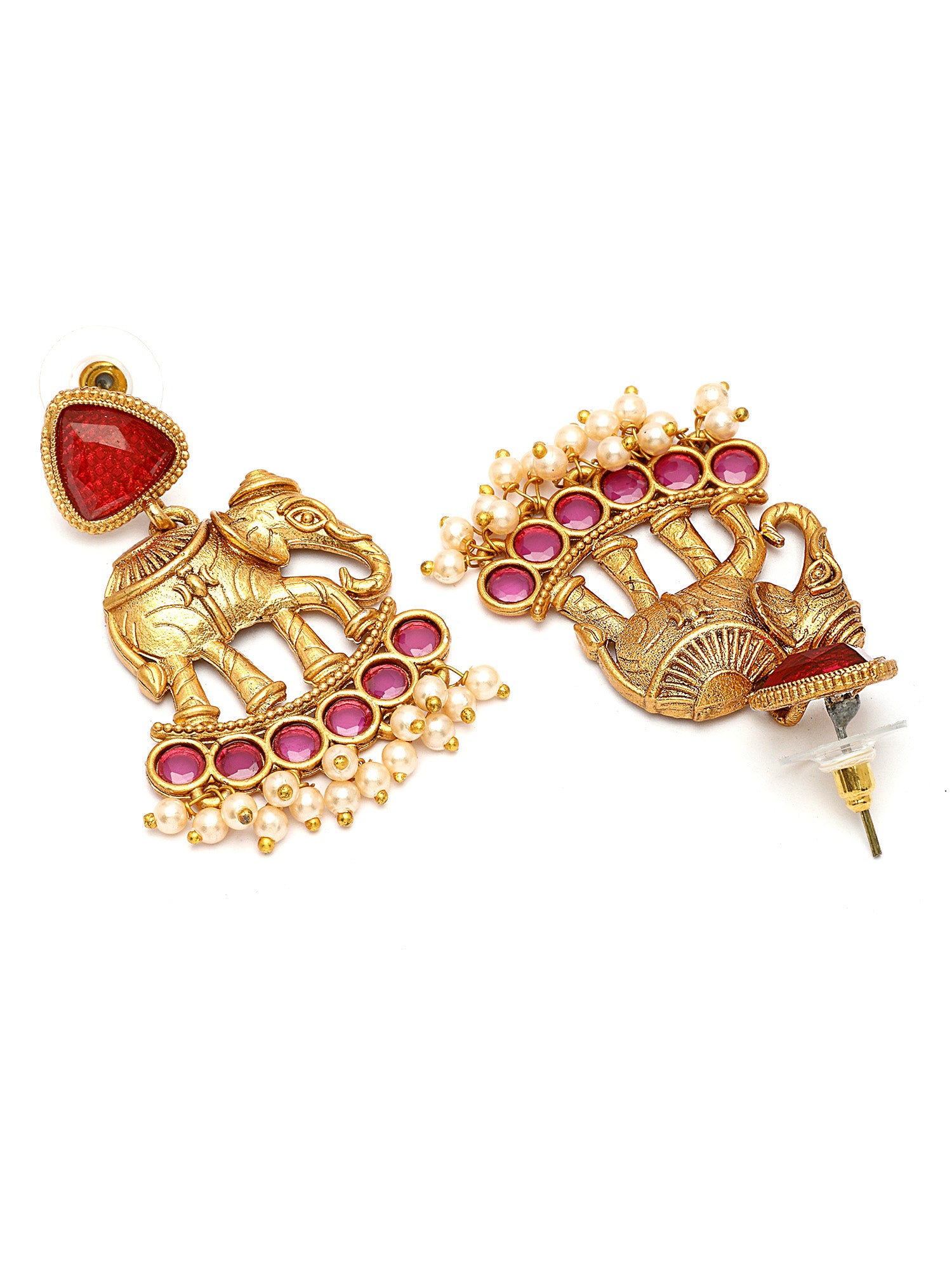 Karatcart Antique Gold Plated Red Elephant Tribal Drop Earrings for Women