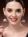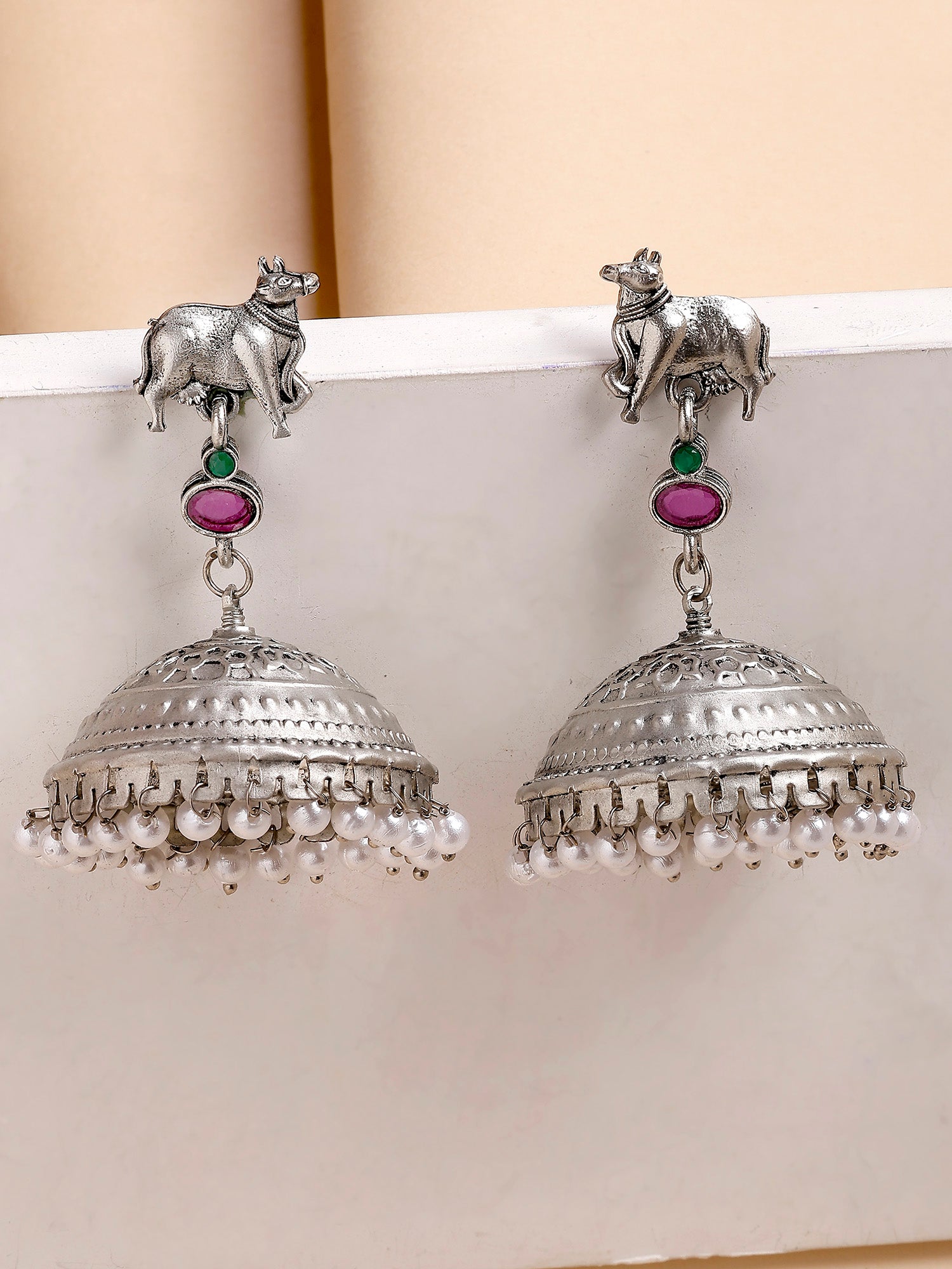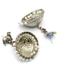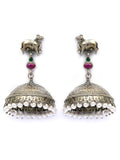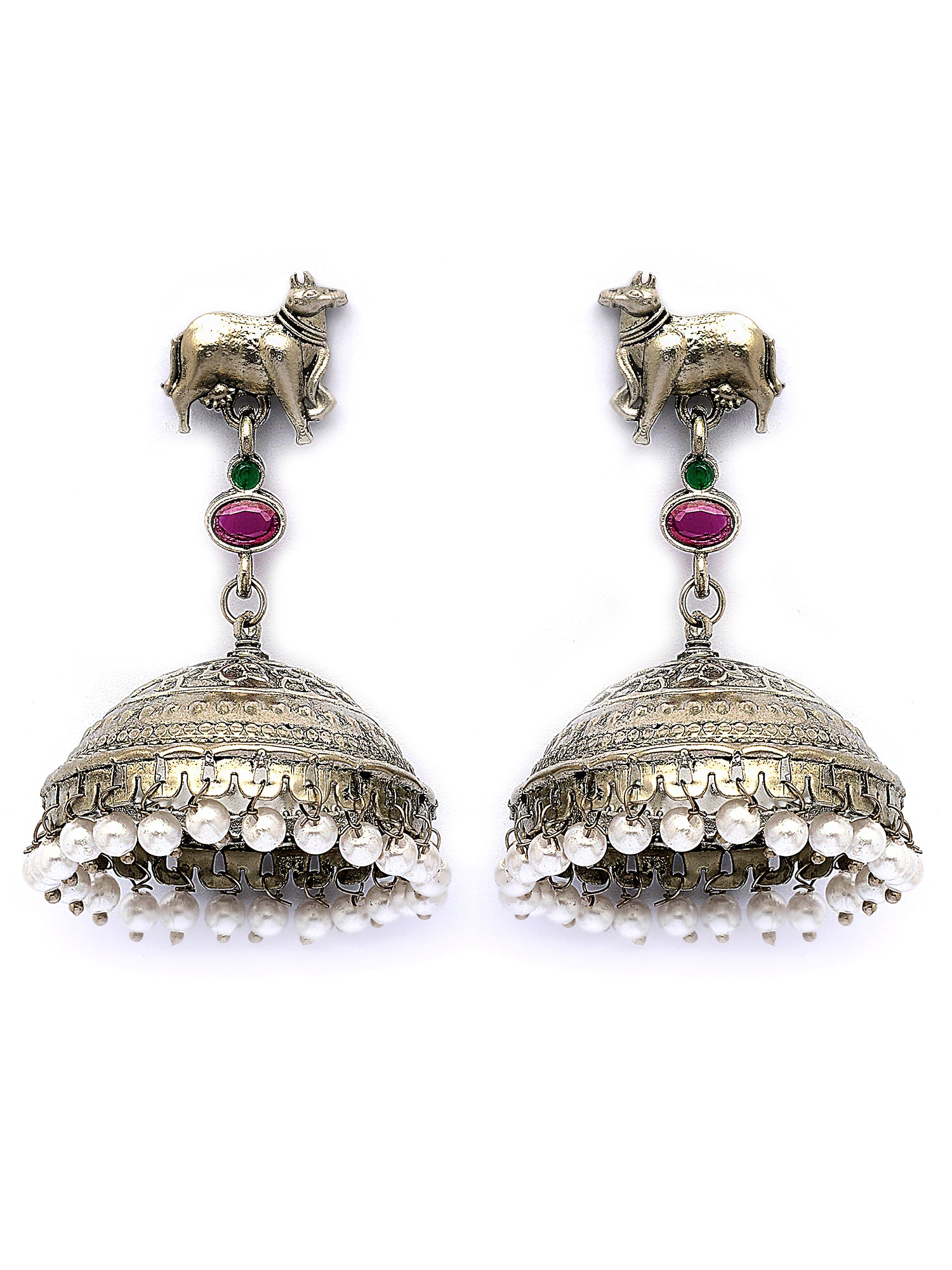 Karatcart Oxidized Silver Jhumka Earrings with Cow Motif & Pearl Drops