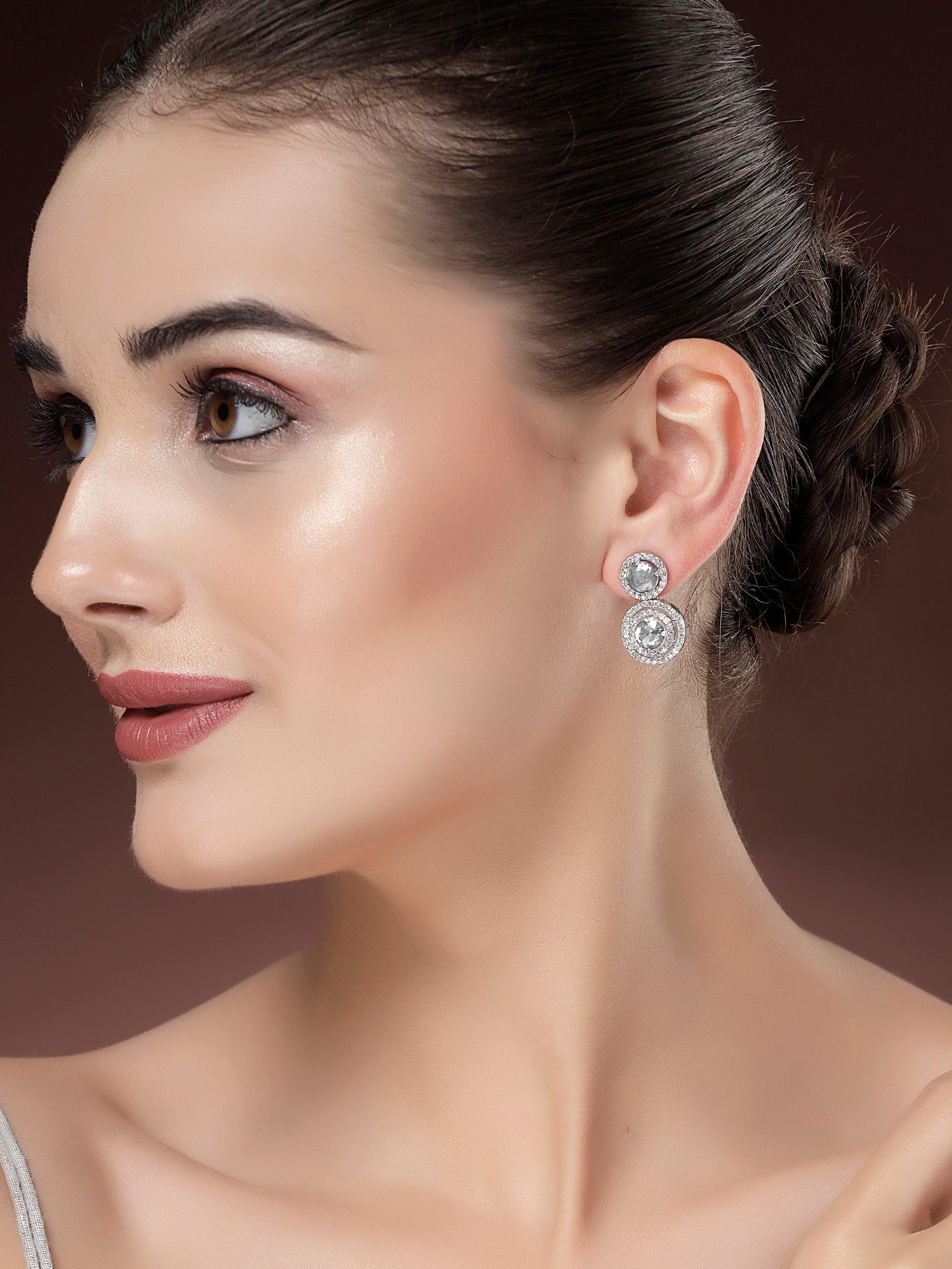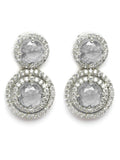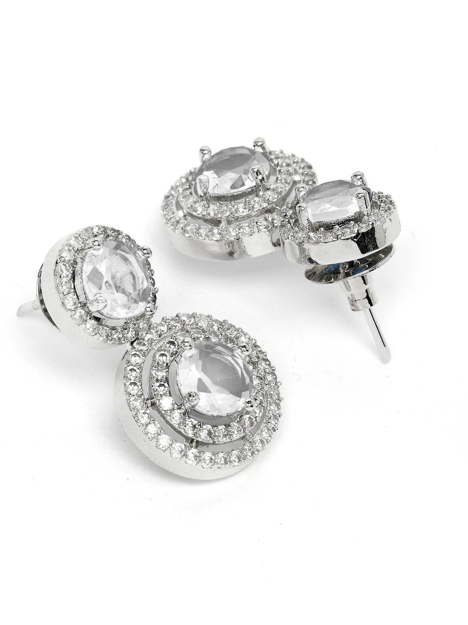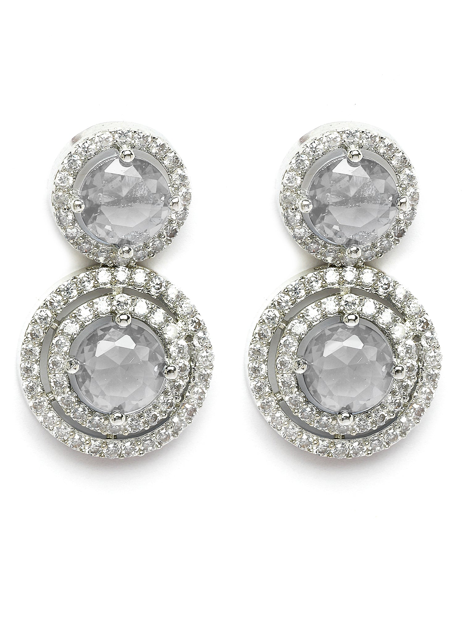Karatcart Elegant Silver-Tone Round American Diamond Drop Earrings for Women