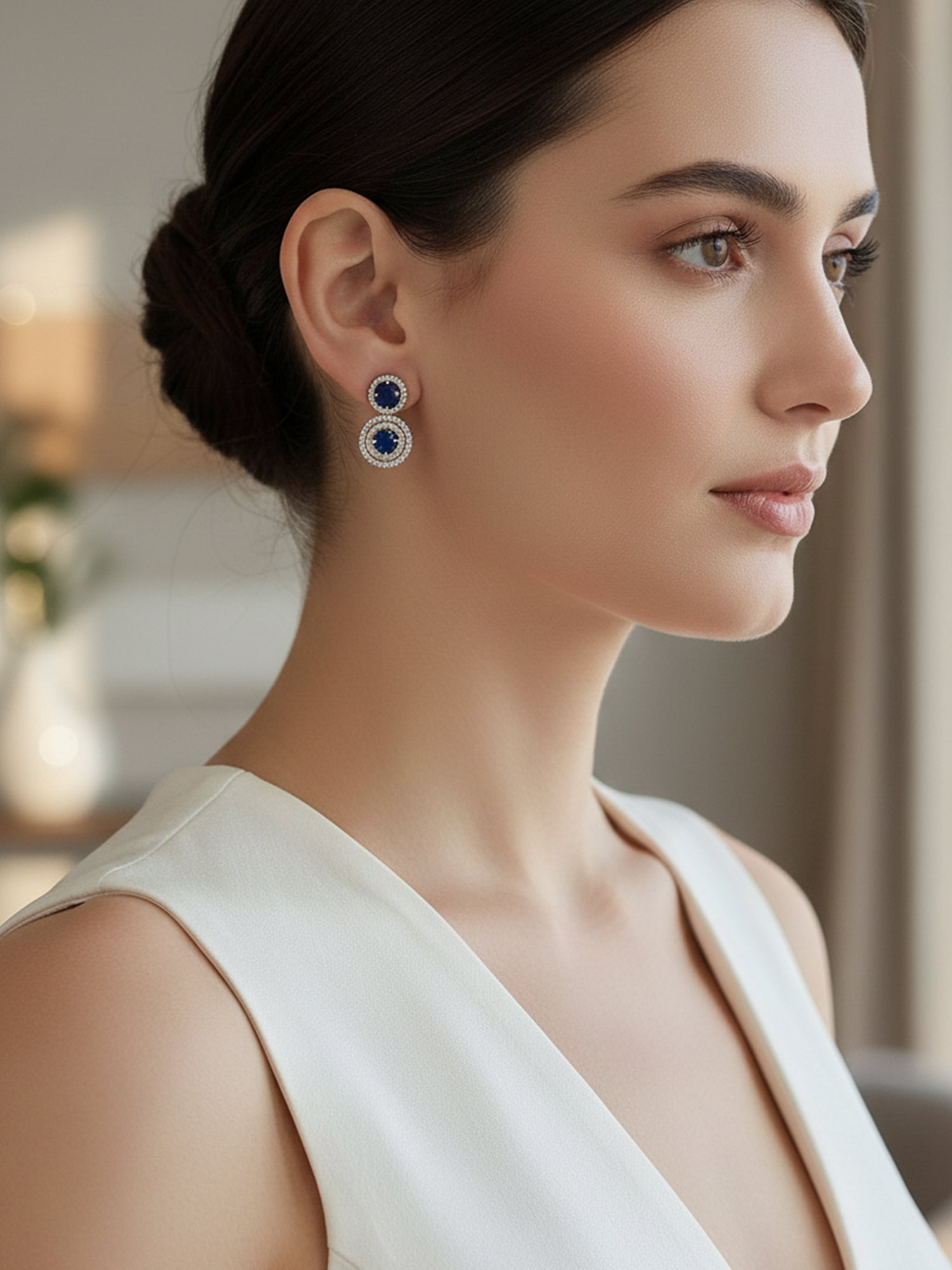 - This is a Blue Earrings by Brand Karatcart which has American Diamond stones. This is Silver Plated. We at KARATCART understand your desire to look the best on any day & we thrive in making any day an occasion. Every individual at Karatcart carries a passion for jewellery and it reflects in our beautiful designs as well as in our breathtaking craftsmanship. We create unique jewellery so you can make heads turn.