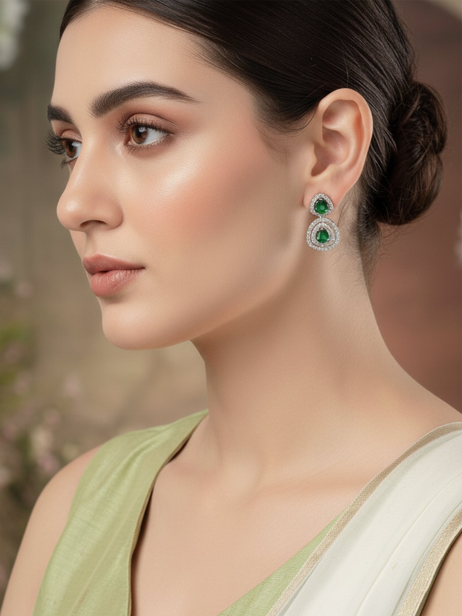 - This is a Green Earrings by Brand Karatcart which has American Diamond stones. This is Silver Plated. We at KARATCART understand your desire to look the best on any day & we thrive in making any day an occasion. Every individual at Karatcart carries a passion for jewellery and it reflects in our beautiful designs as well as in our breathtaking craftsmanship. We create unique jewellery so you can make heads turn.