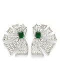 Karatcart Designer Green American Diamond Floral Stud Earrings for Women